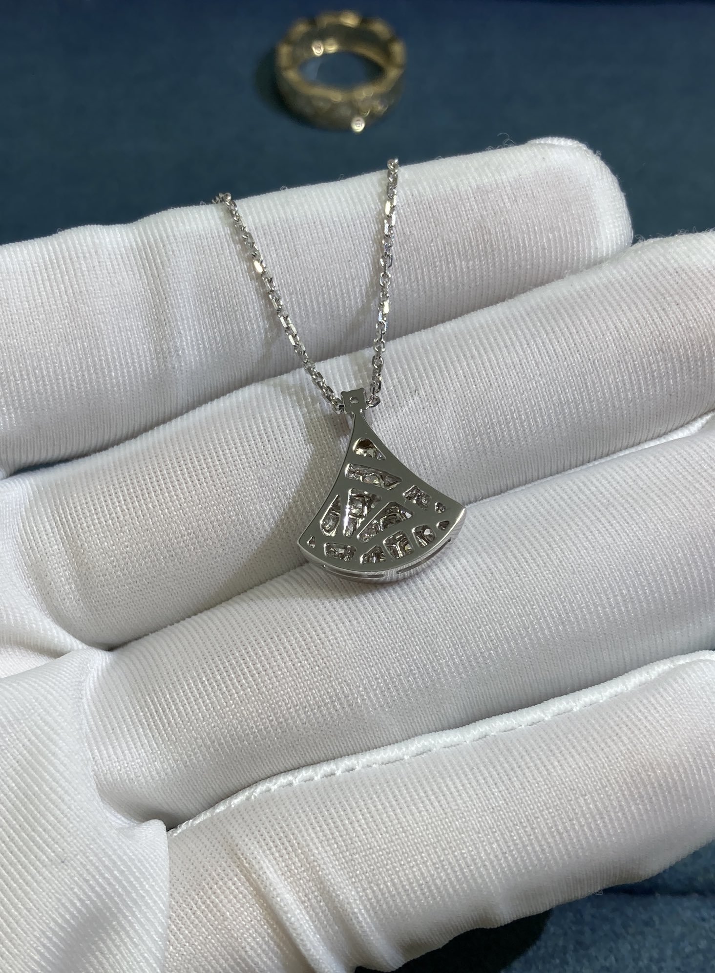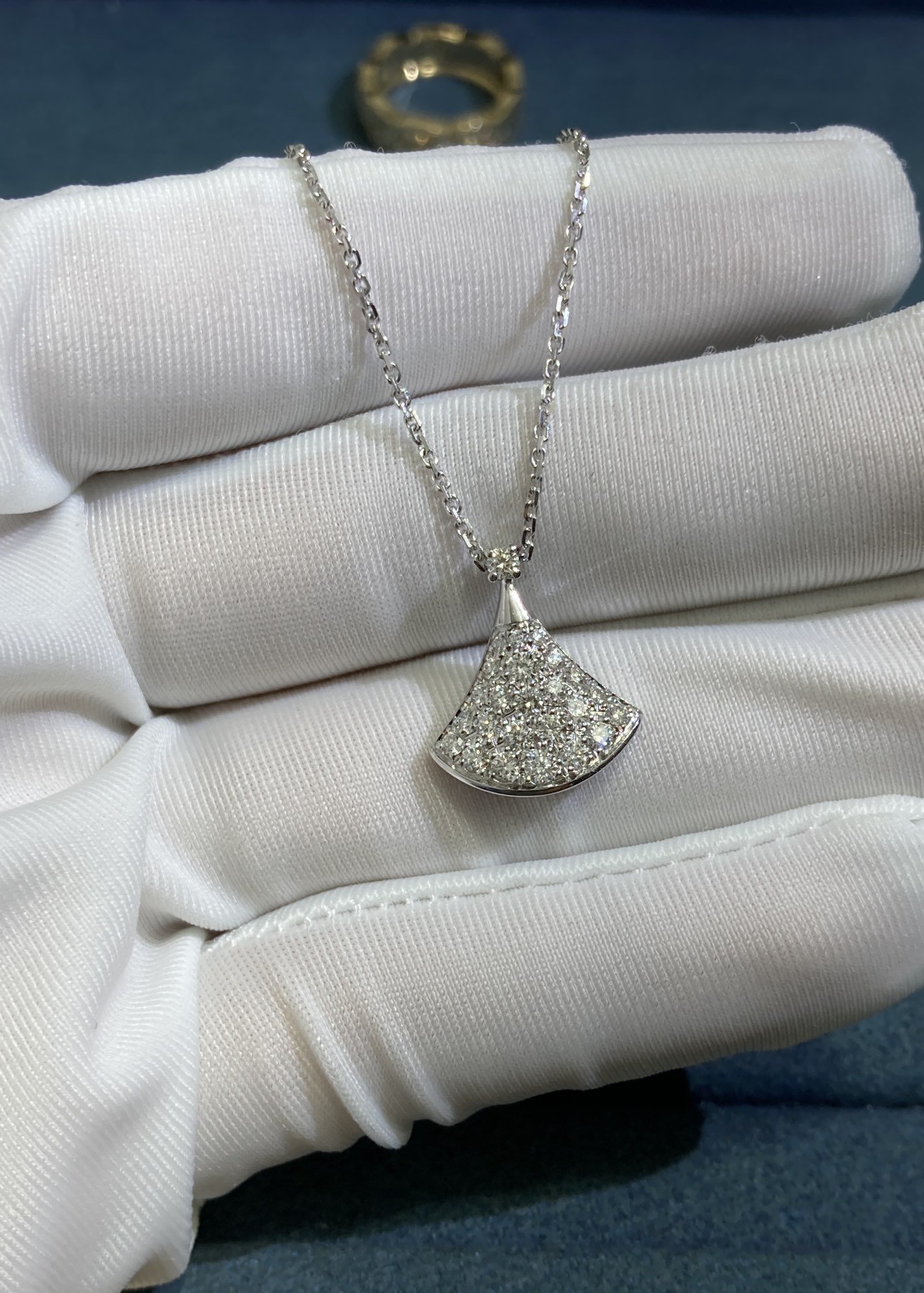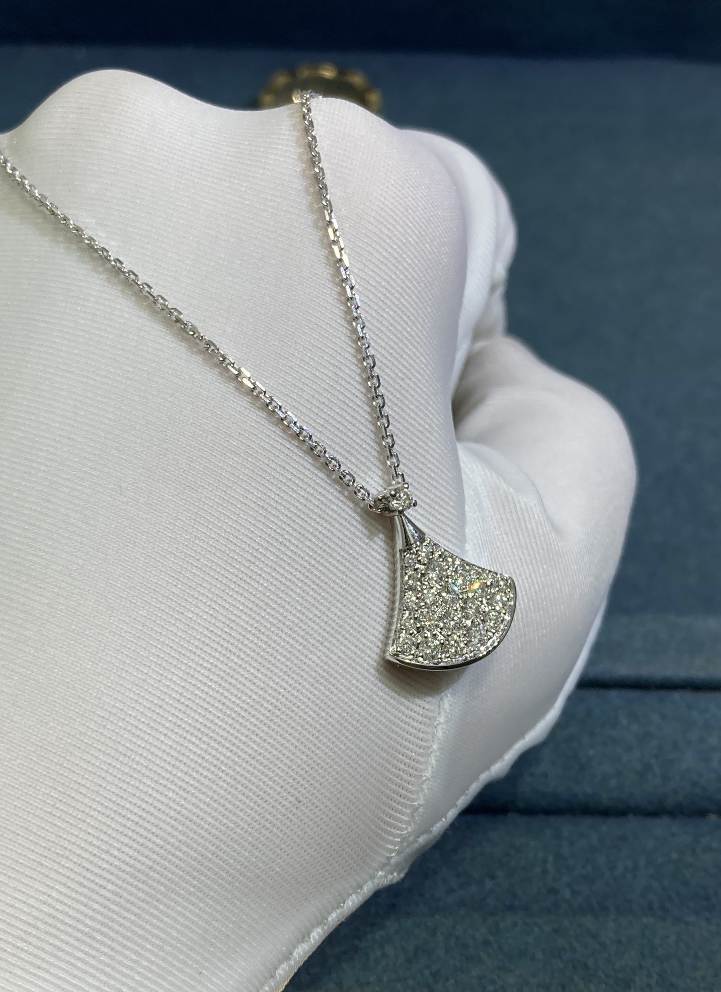 Petite Dress Necklace with Diamonds, White Gold