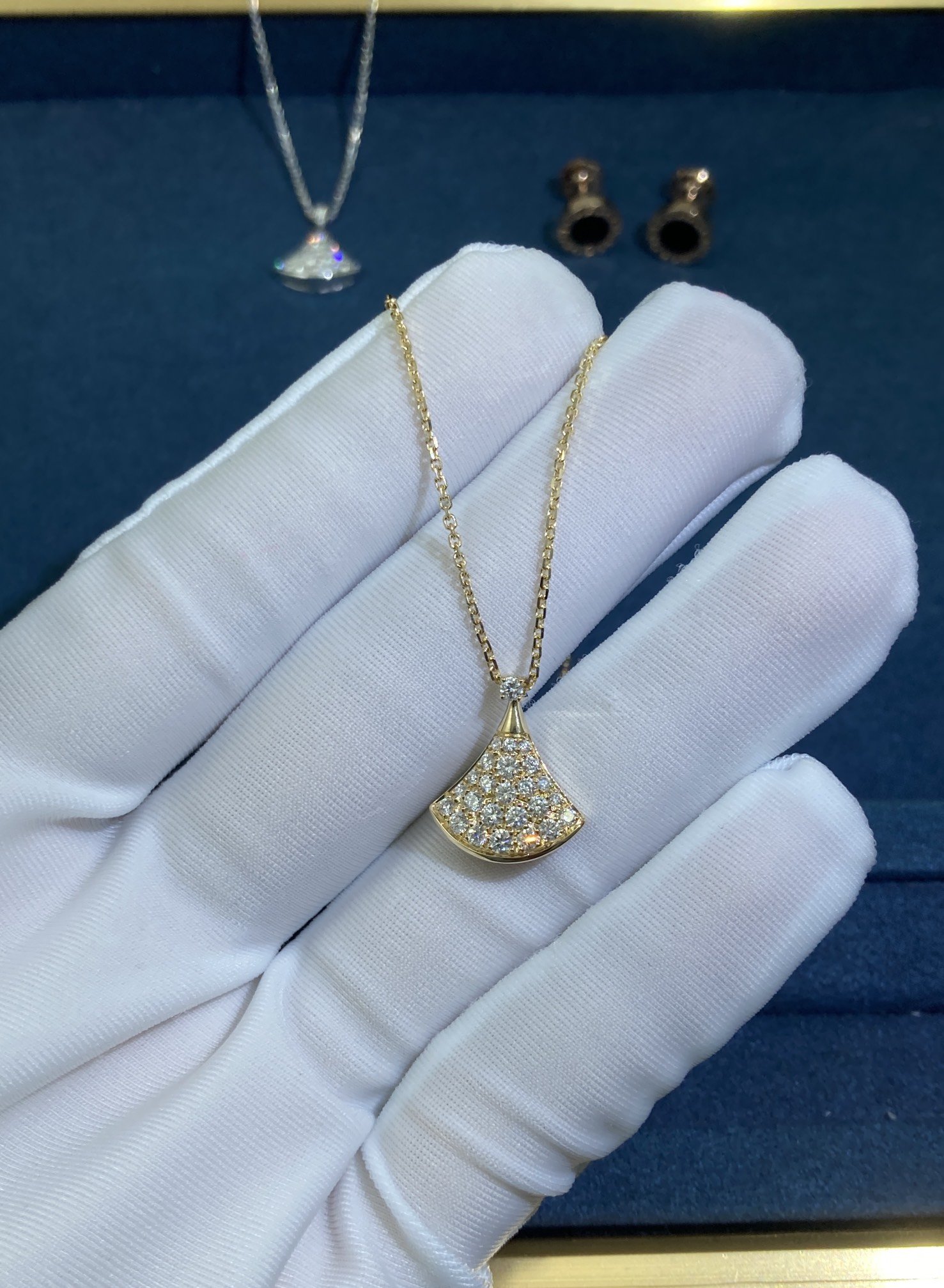 Petite Dress Necklace with Diamonds, Yellow Gold