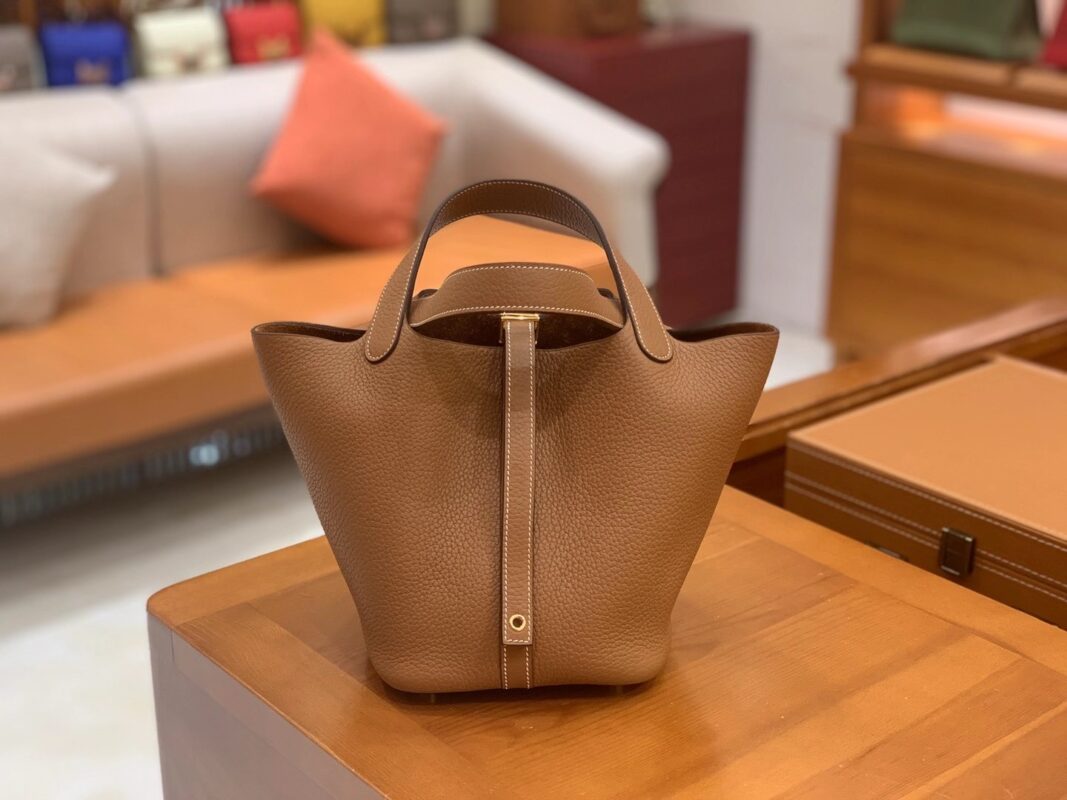 Picotin 18cm Golden Brown Imported TC cowhide. Fully hand-sewn