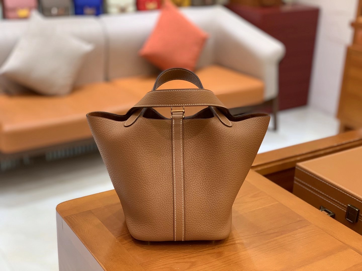 Picotin 18cm Golden Brown Imported TC cowhide. Fully hand-sewn