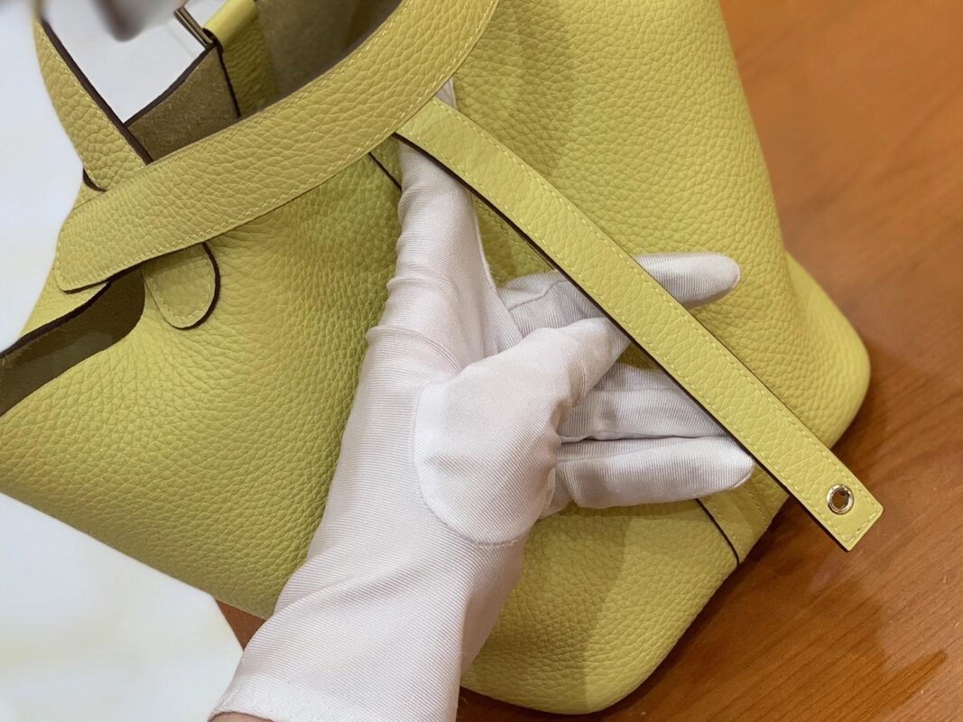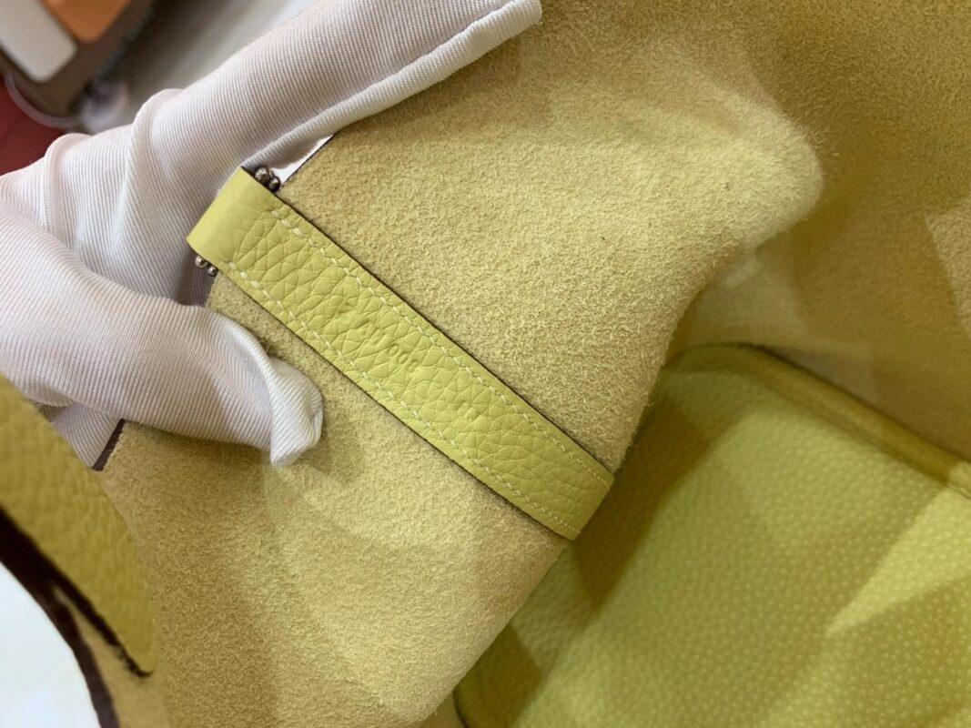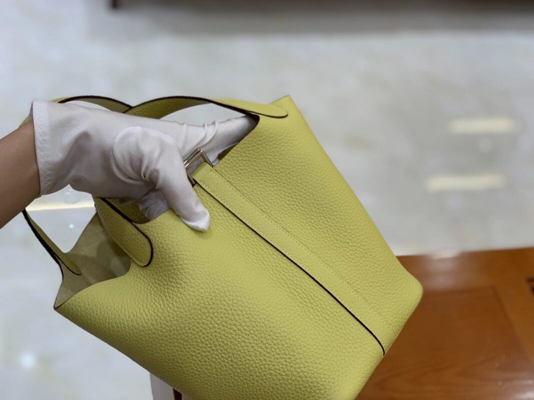 Picotin 18cm Jaune Poussin Imported TC cowhide. Fully hand-sewn
