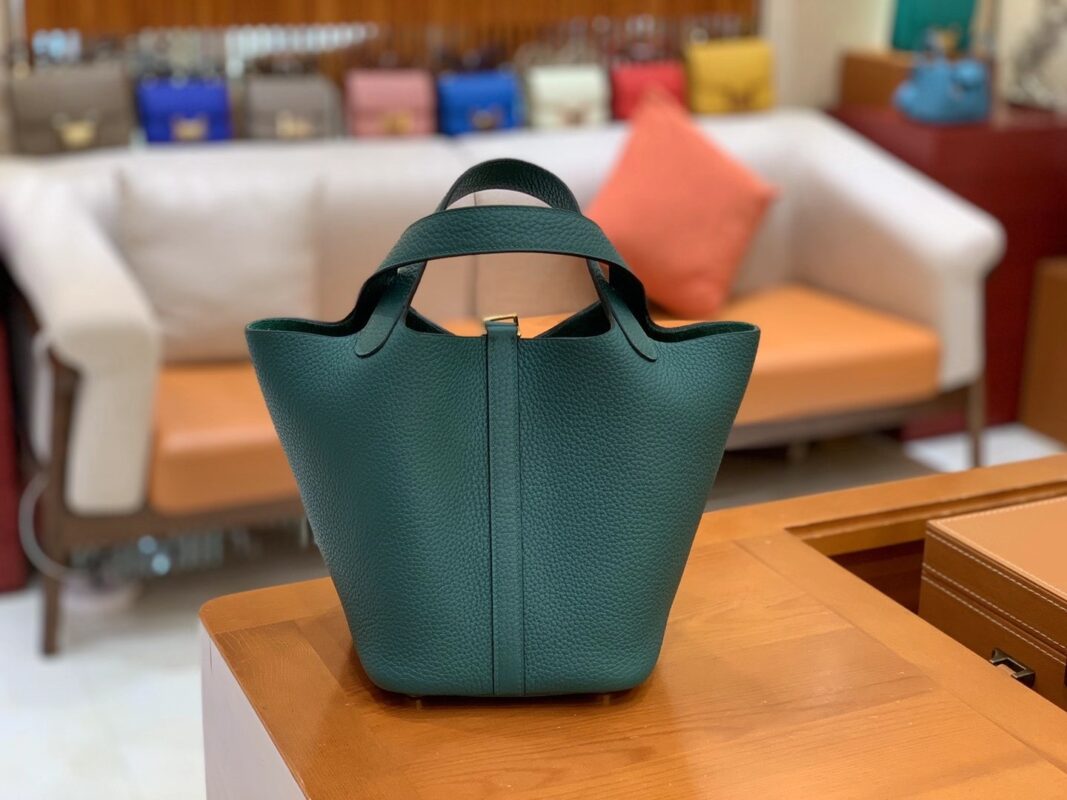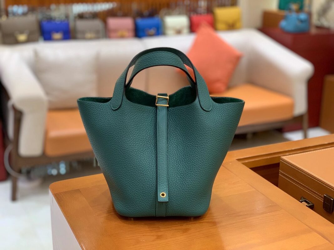 Picotin 18cm Malachite Green Imported TC cowhide. Fully hand-sewn