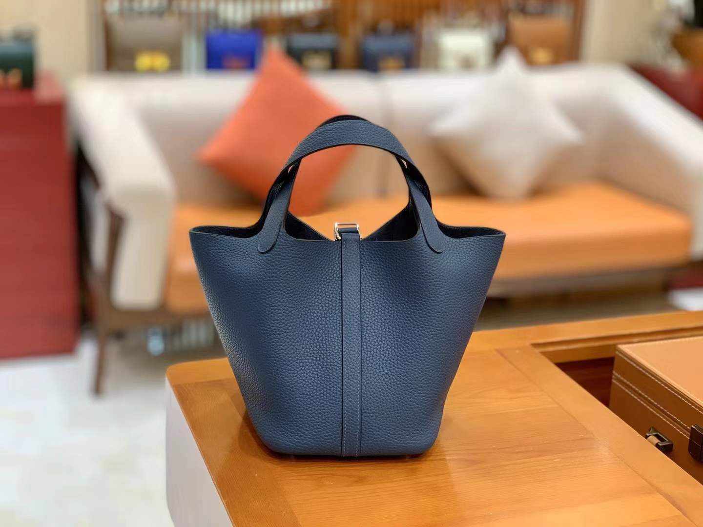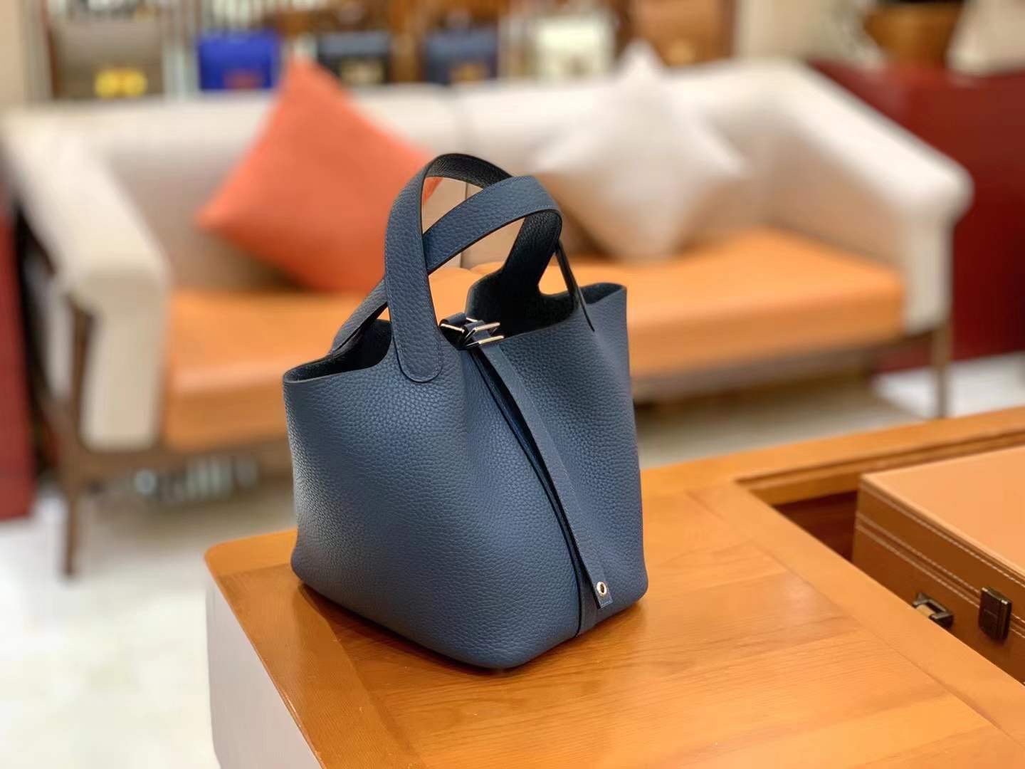 Picotin 18cm Peacock Blue Imported TC cowhide. Fully hand-sewn