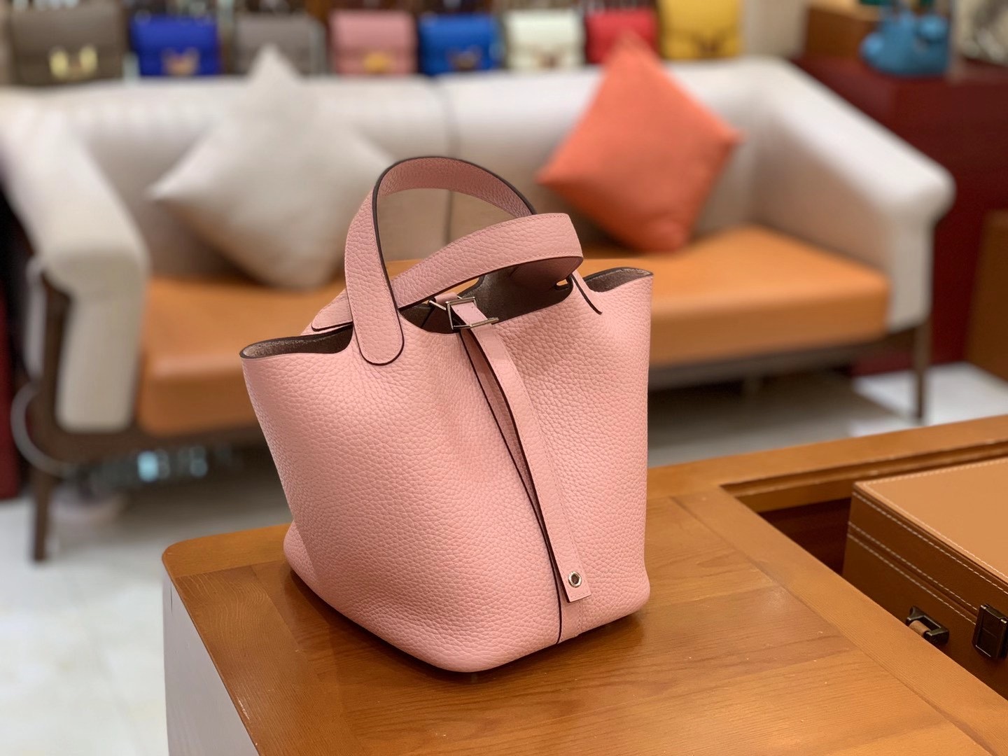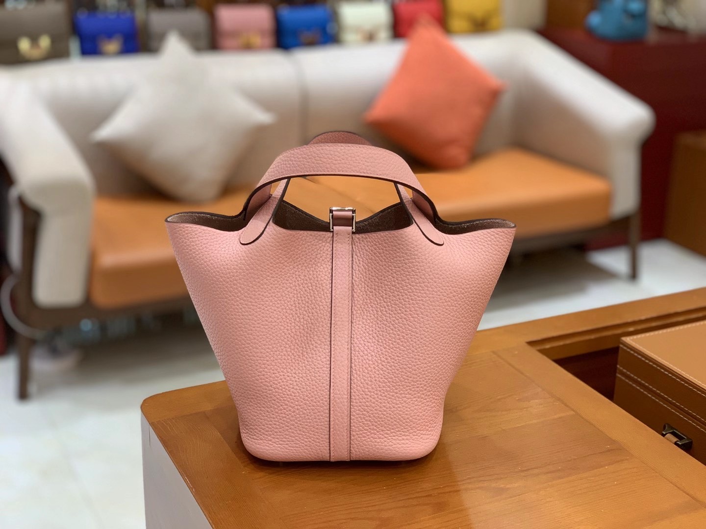 Picotin 18cm Q Pink Imported TC cowhide. Fully hand-sewn