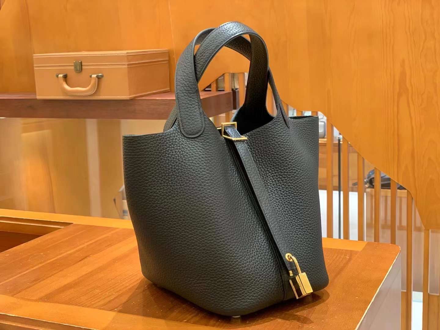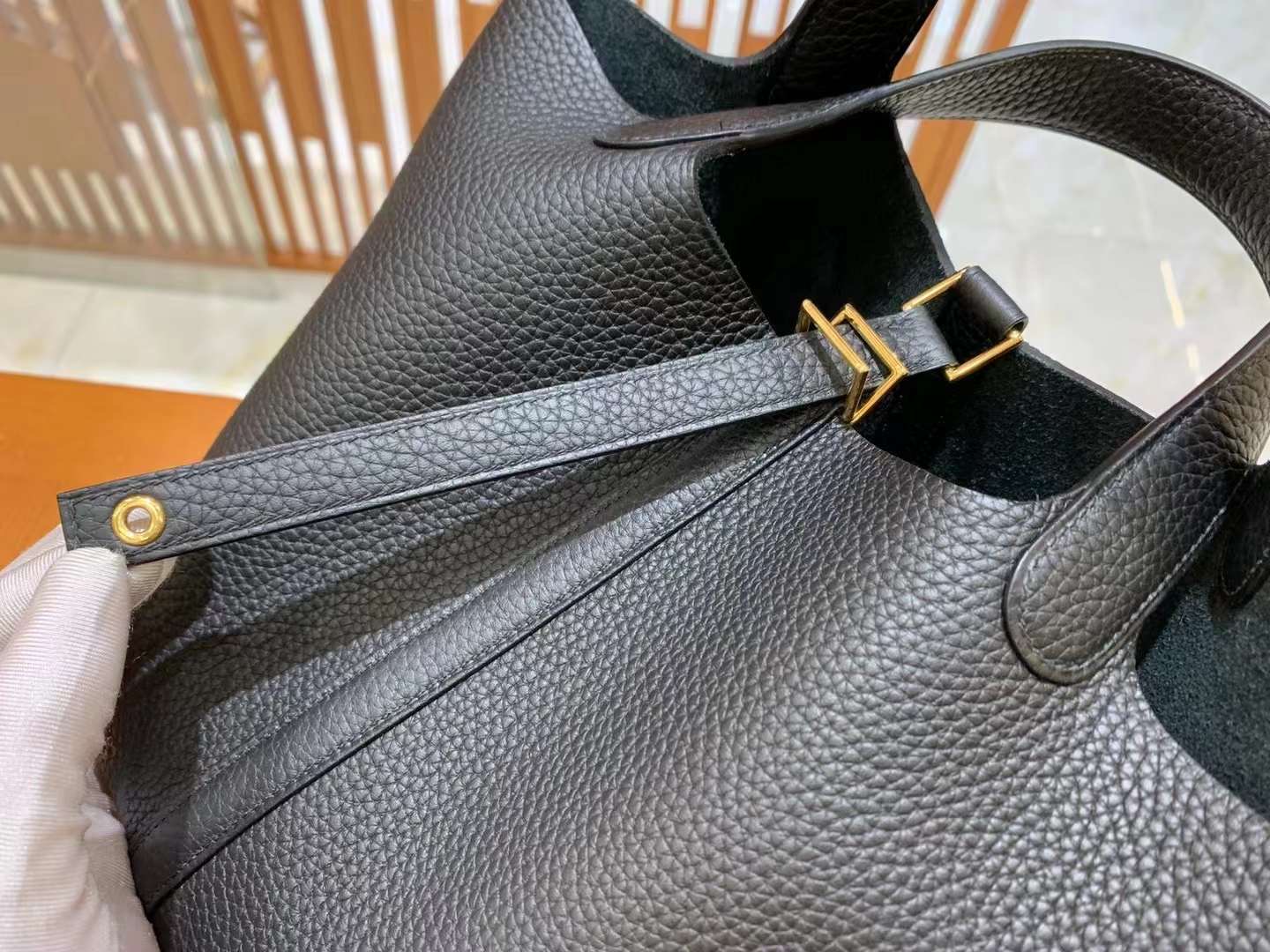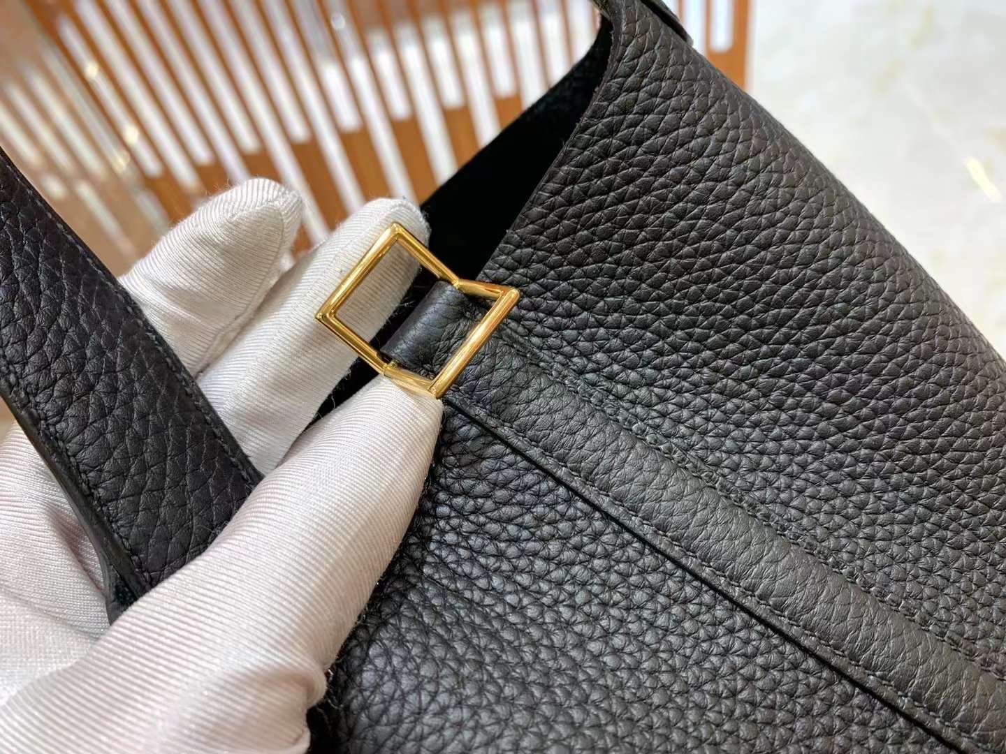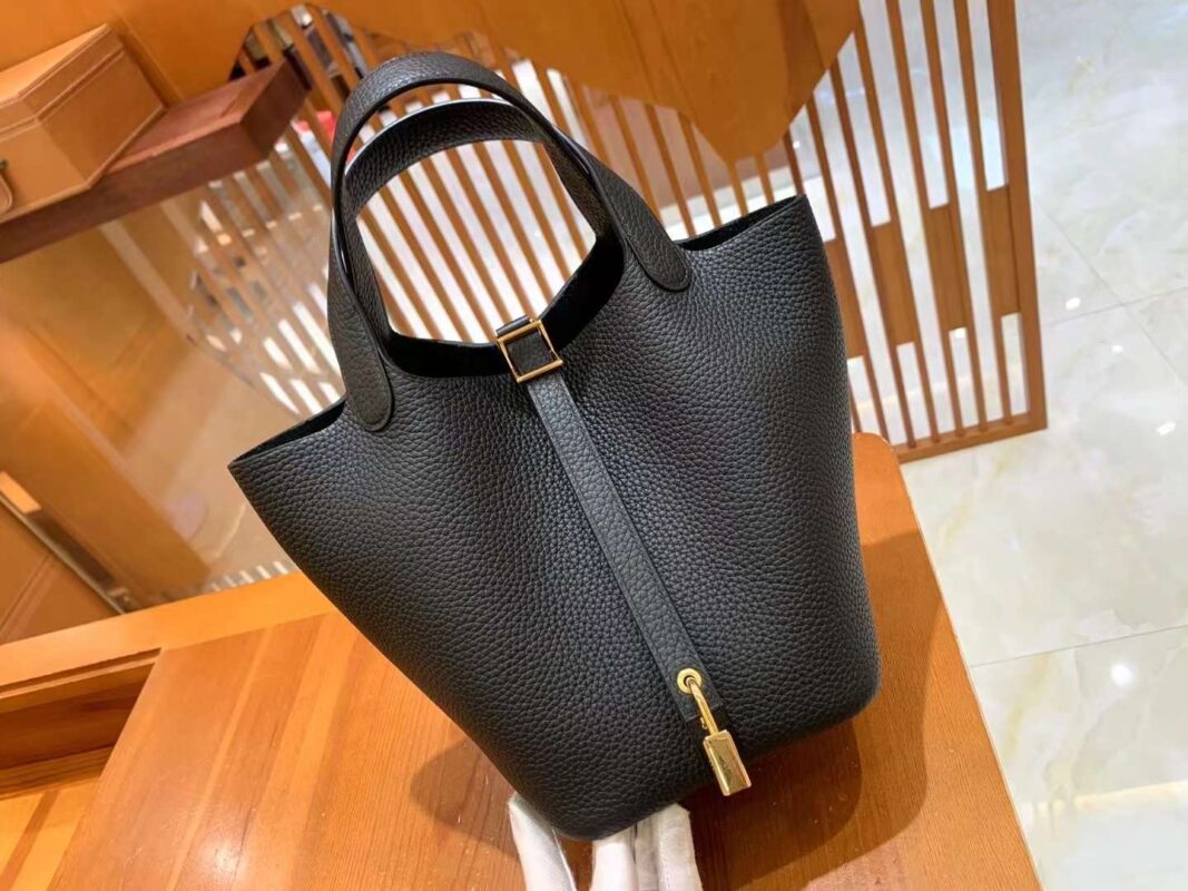 Picotin 18cm Black Gold Imported TC cowhide. French beeswax thread. 100% hand-sewn.