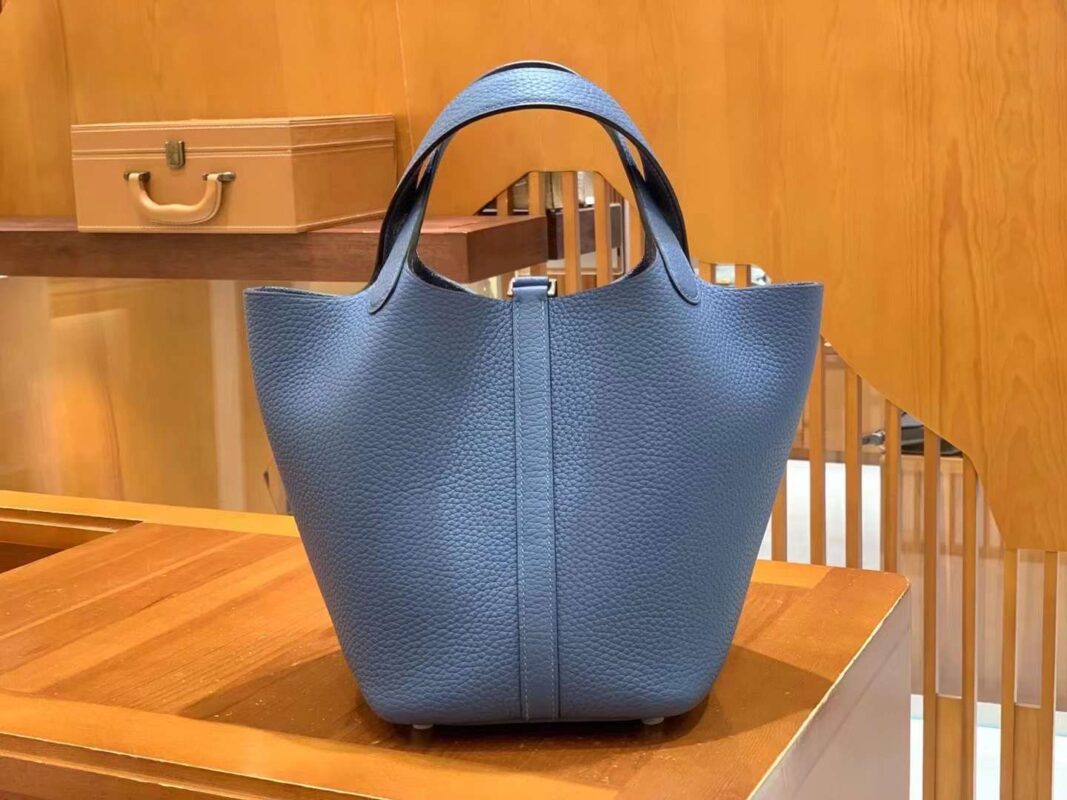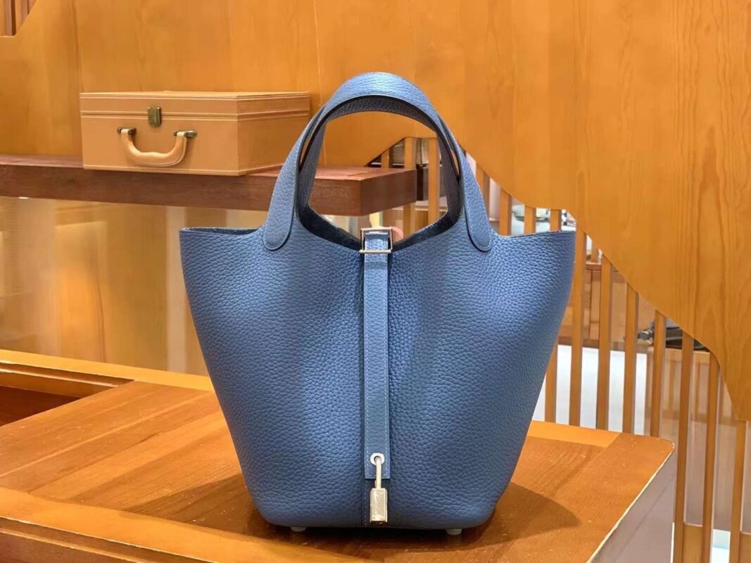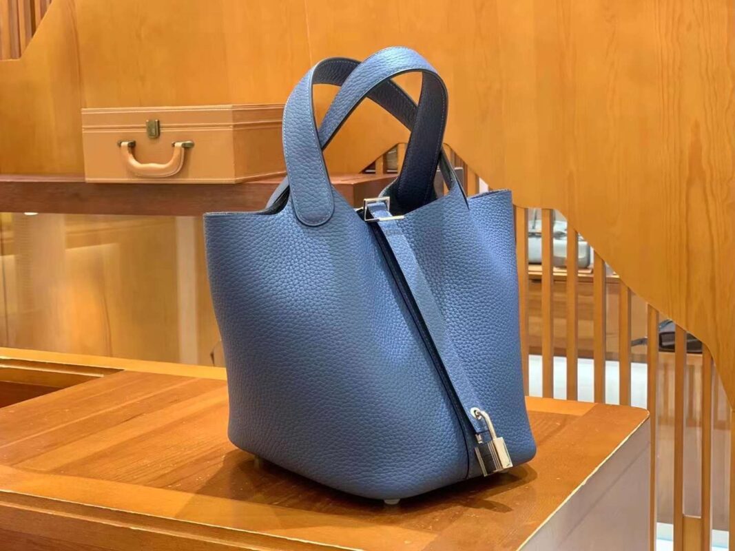 Picotin 18cm Agate Blue Imported TC cowhide. French beeswax thread. 100% hand-sewn.