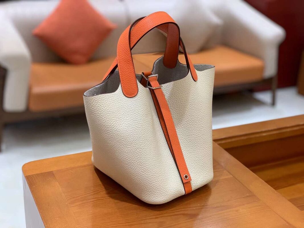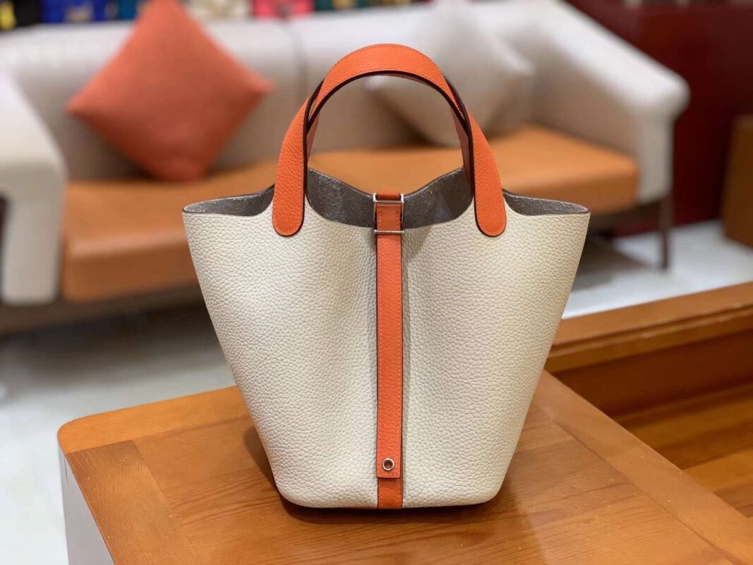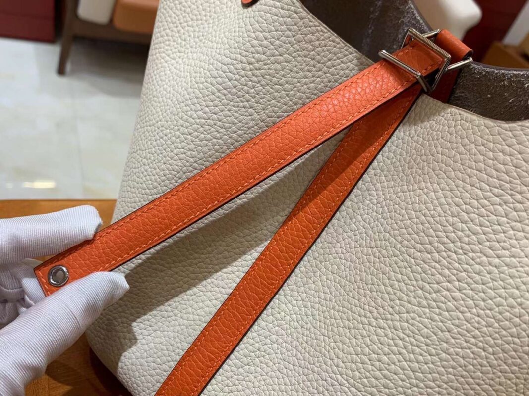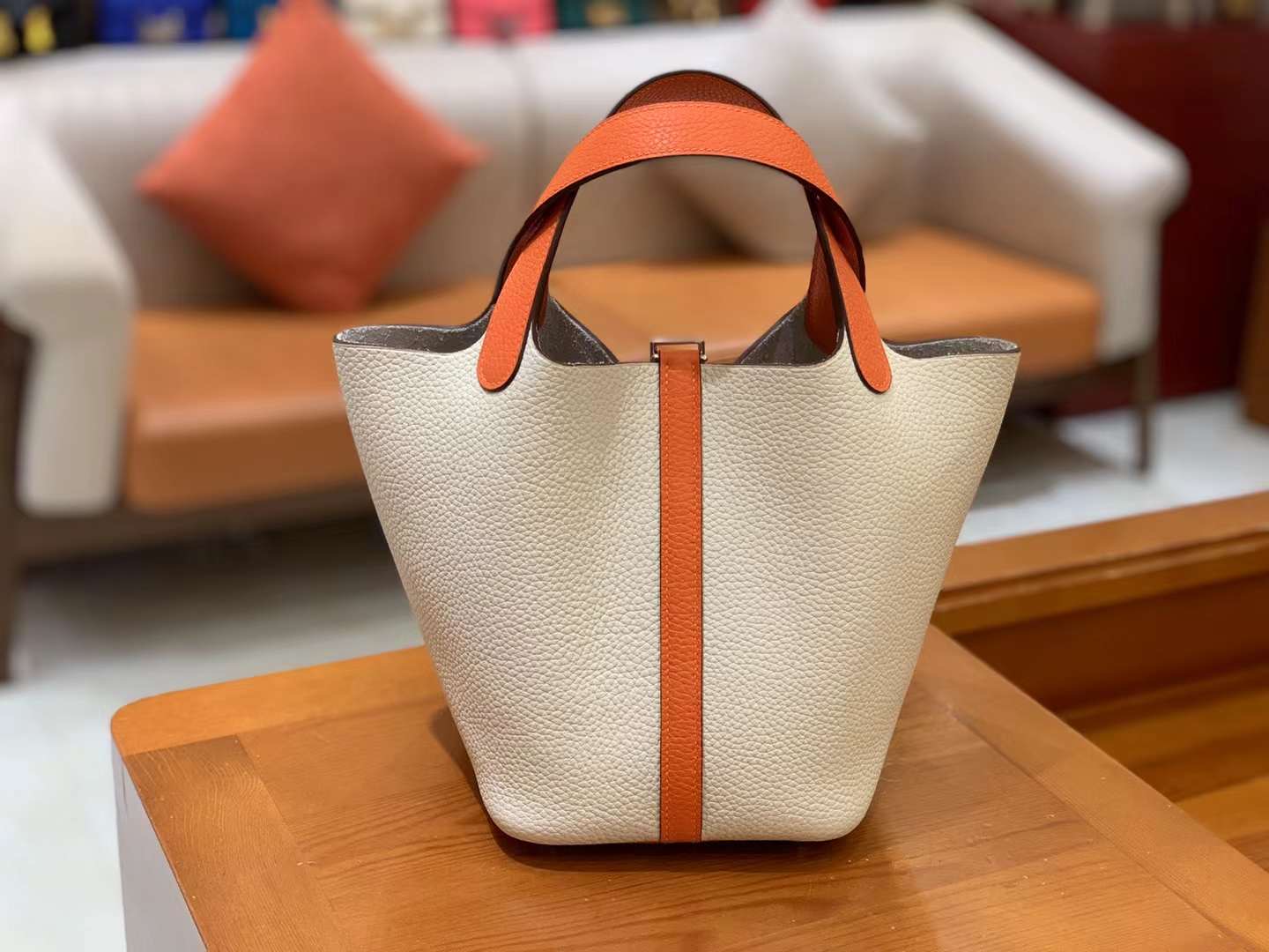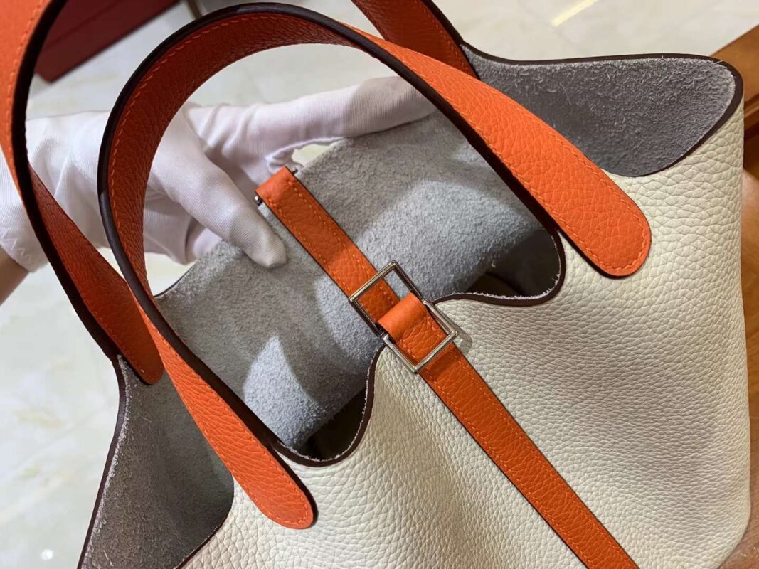 Picotin 18cm Orange Craie Imported TC cowhide. French beeswax thread. 100% hand-sewn.