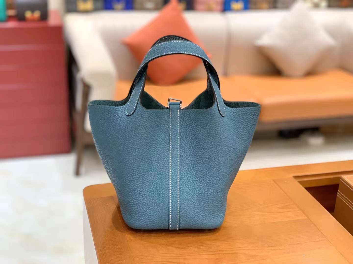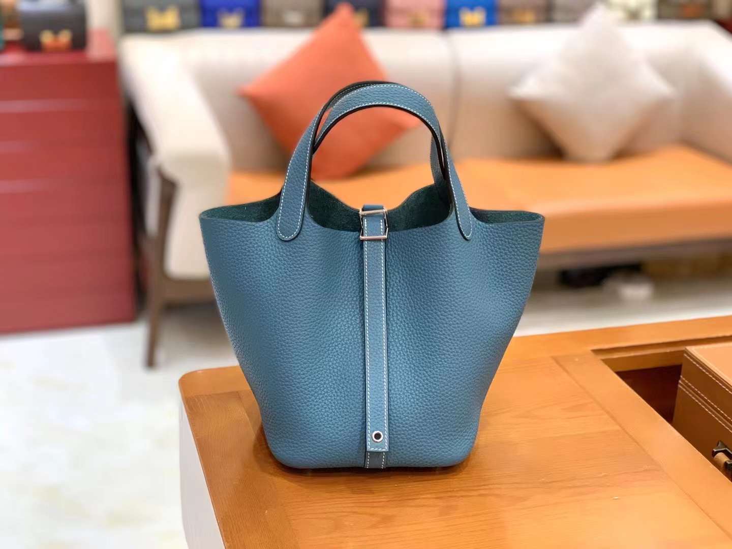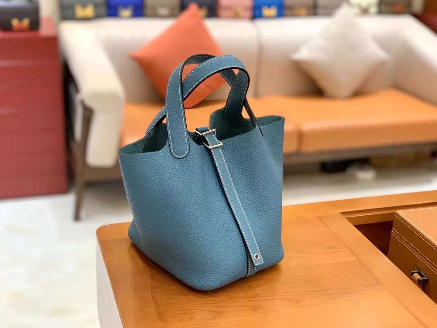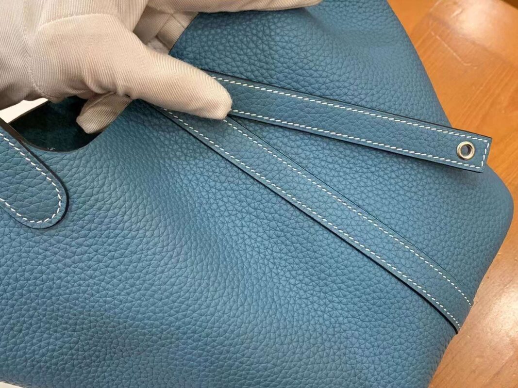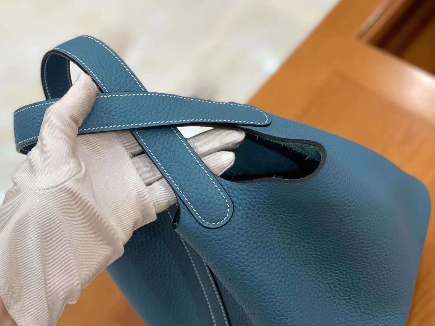 Picotin 18cm Denim Blue Imported TC cowhide. French beeswax thread. 100% hand-sewn.