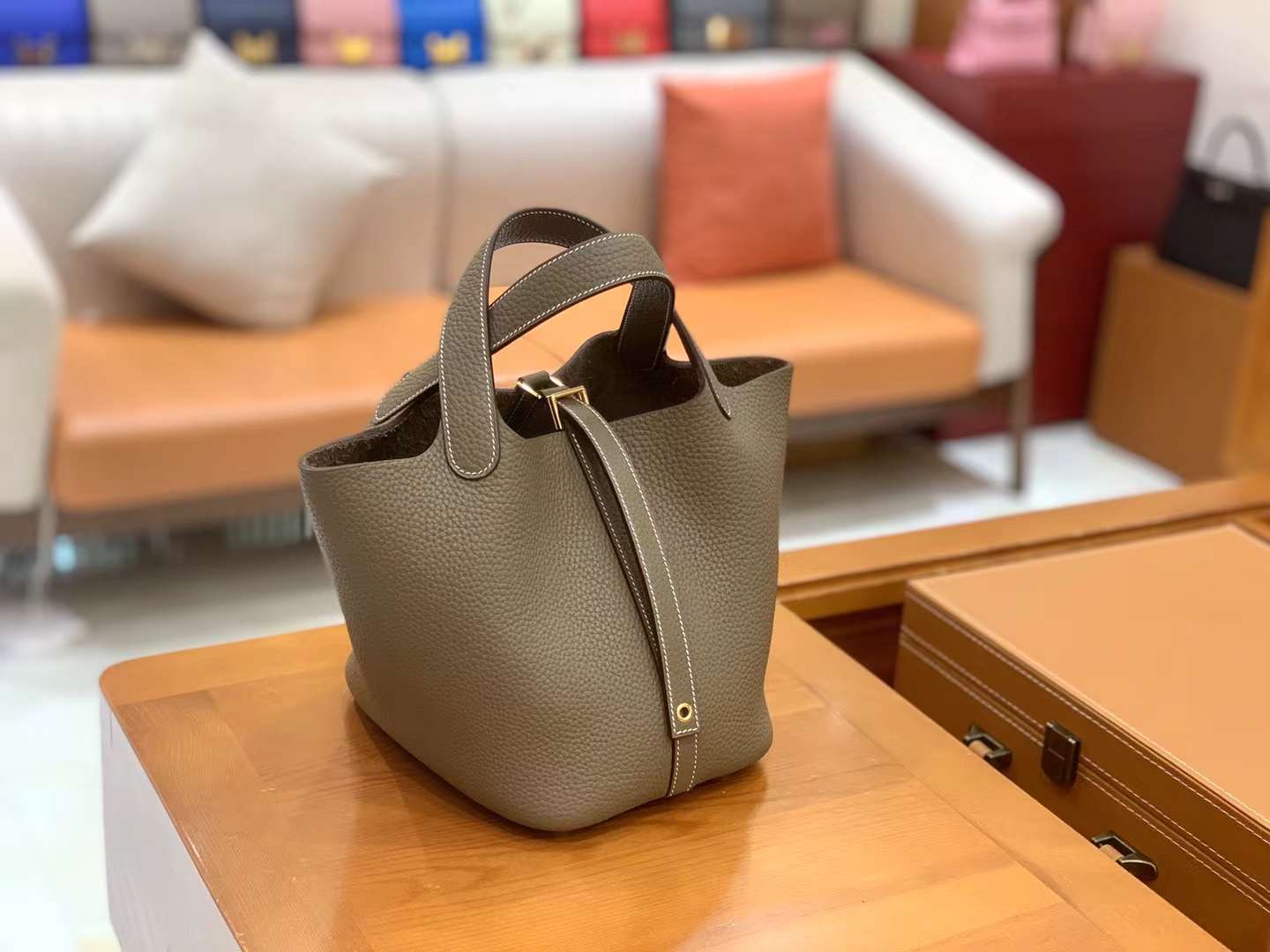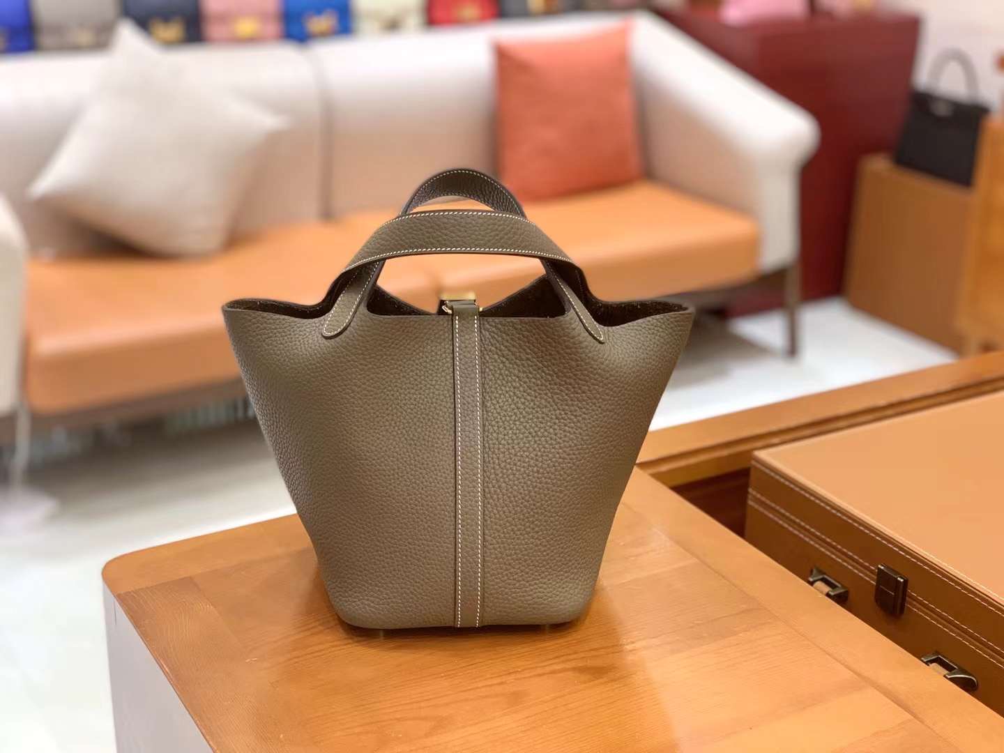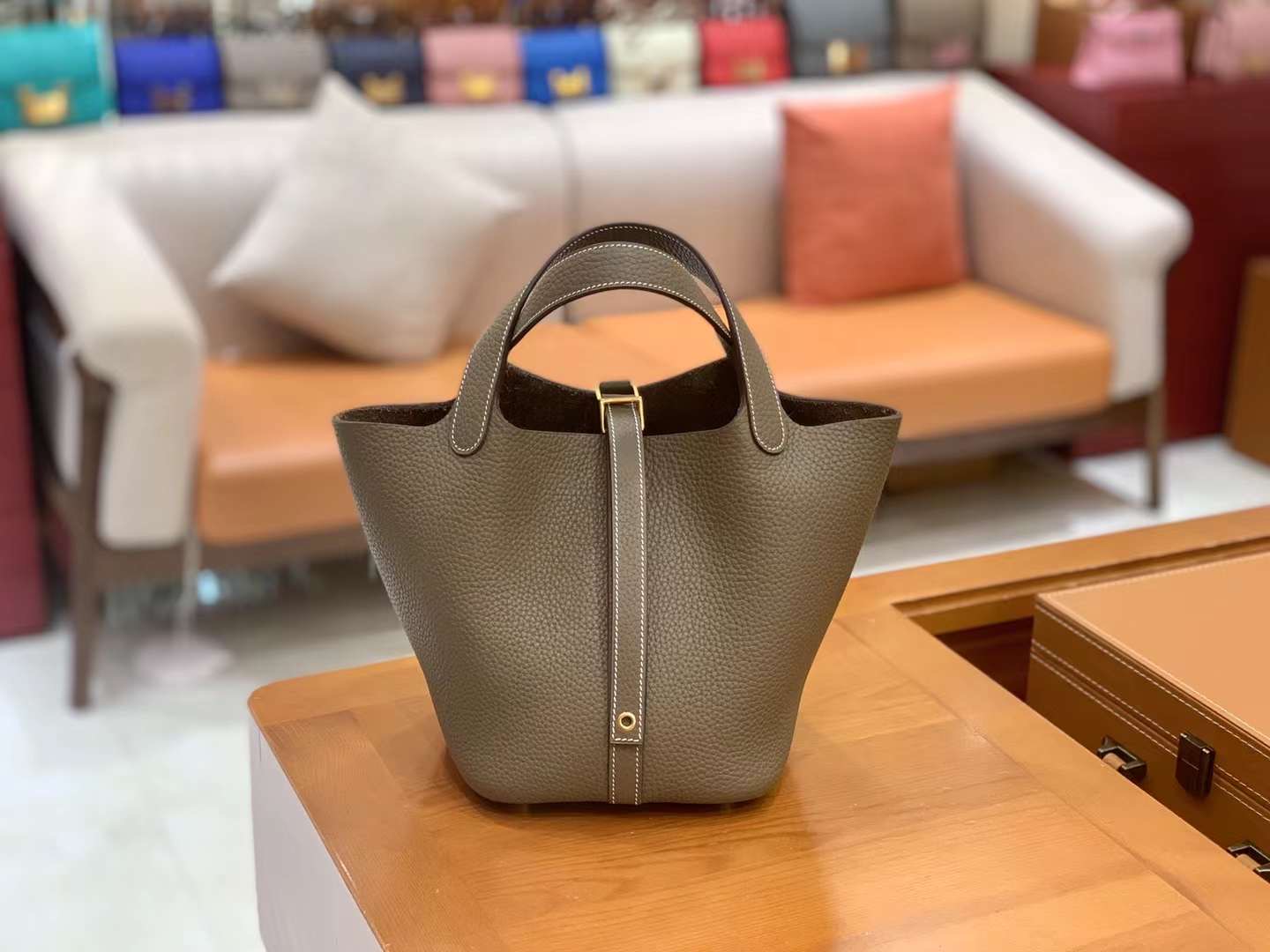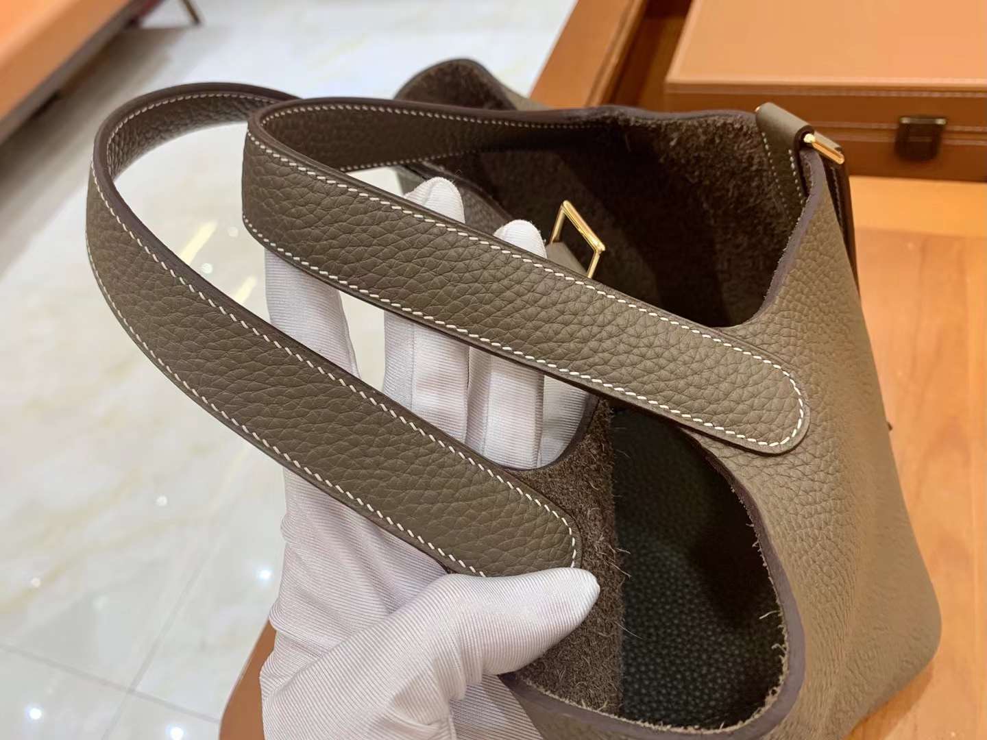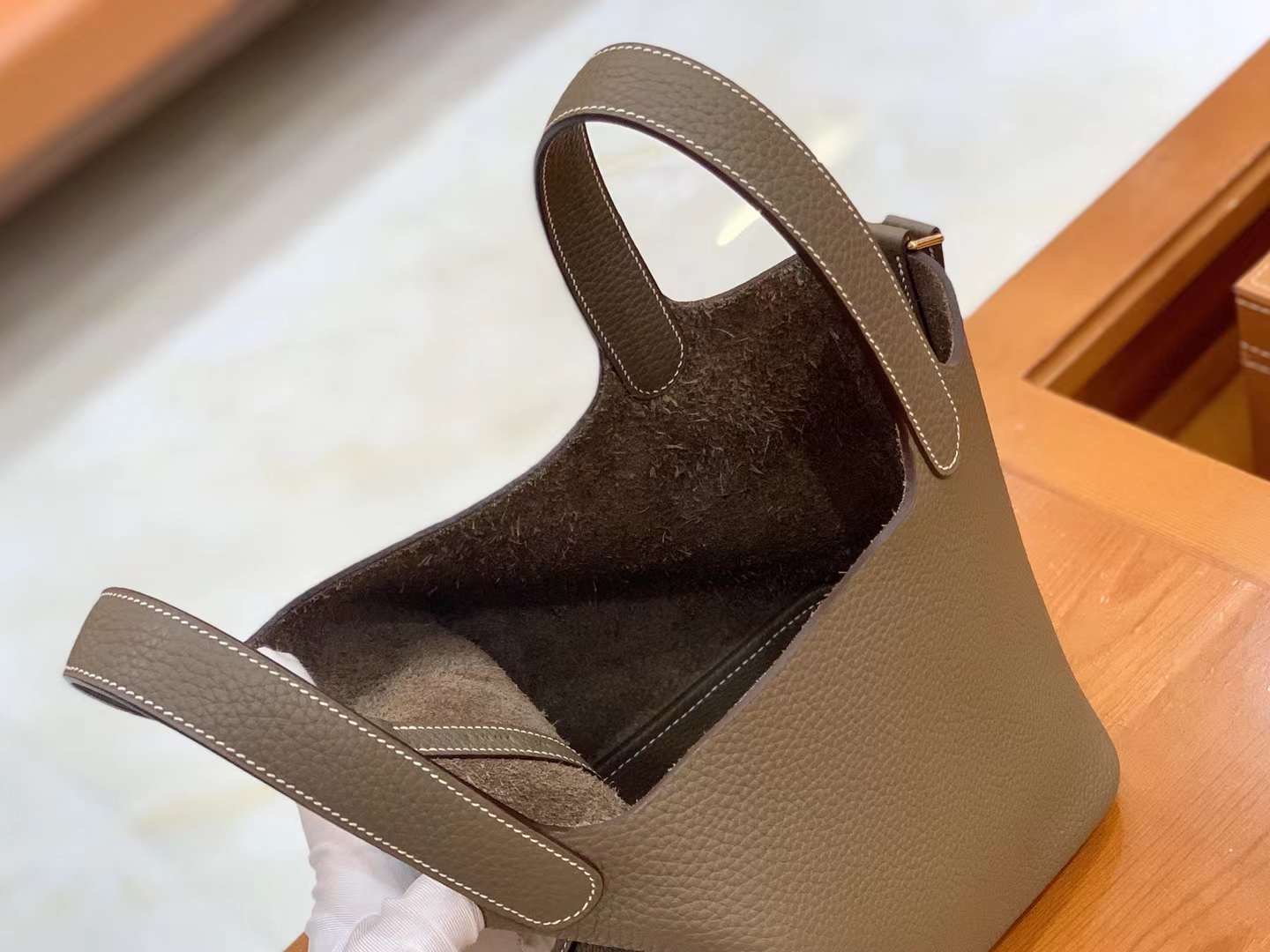 Picotin 18cm Elephant Gray (Etoupe) Imported TC cowhide. French beeswax thread. 100% hand-sewn.