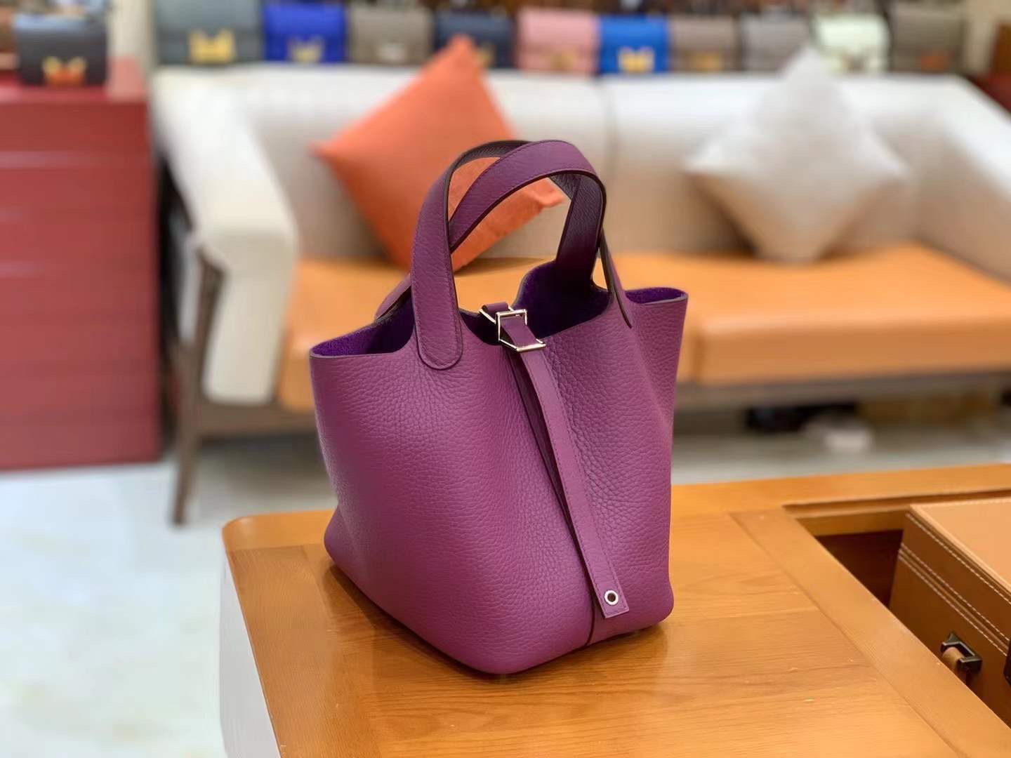 Picotin 18cm Anemone Purple Imported TC cowhide. Fully hand-sewn