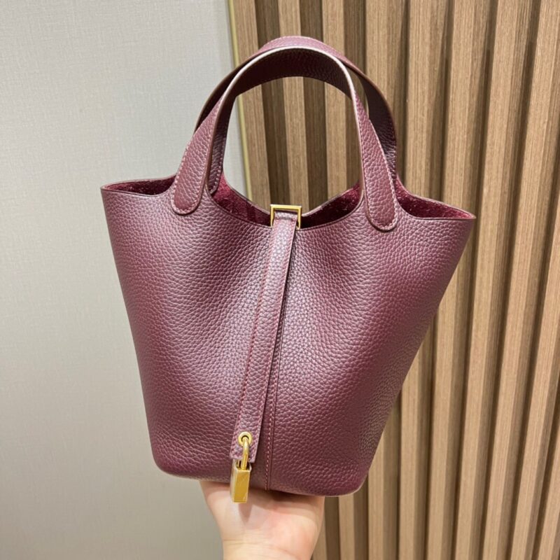 Picotin Lock Vegetable Basket Clemence Leather 0G Saddle Red Rouge Sellier