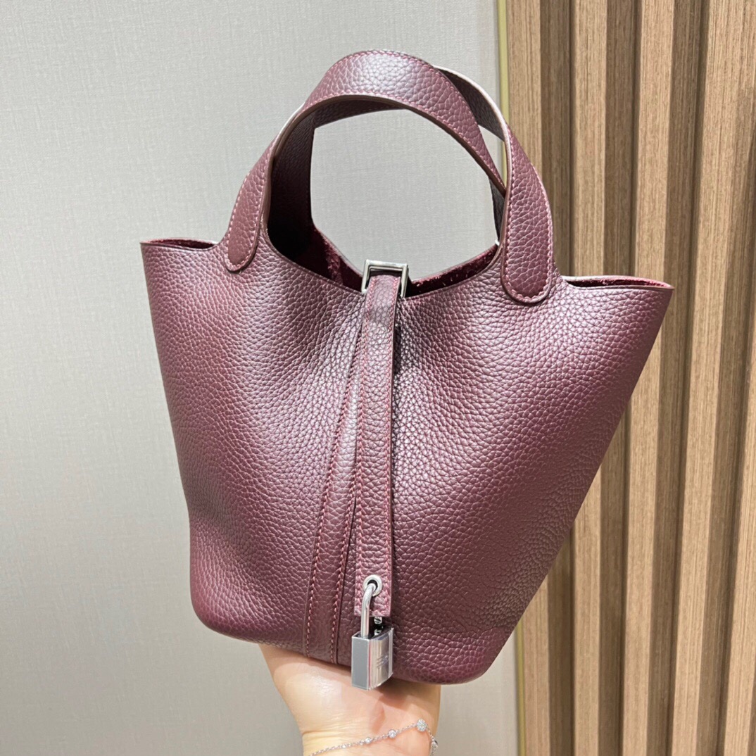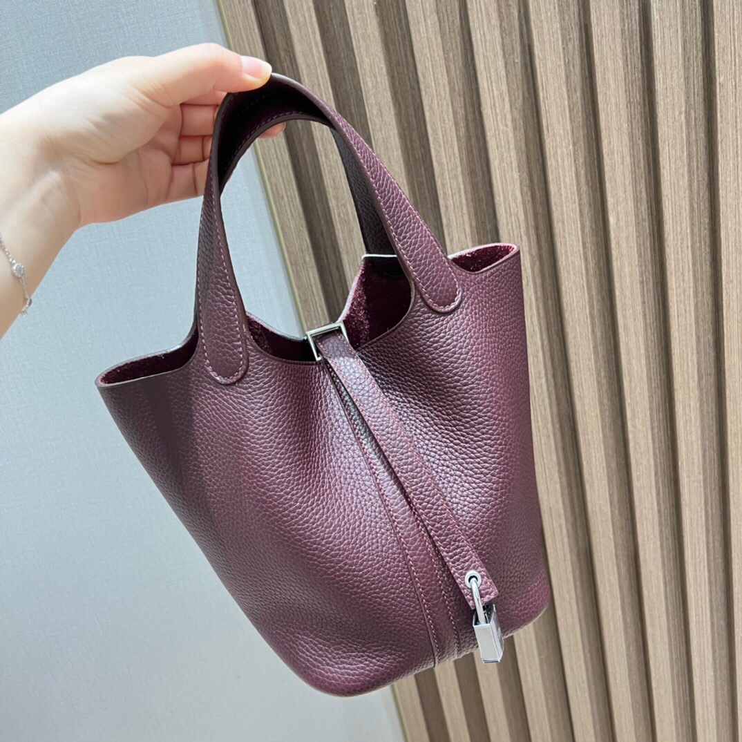 Picotin Lock Vegetable Basket Clemence Leather 0G Saddle Red Rouge Sellier
