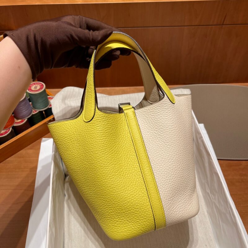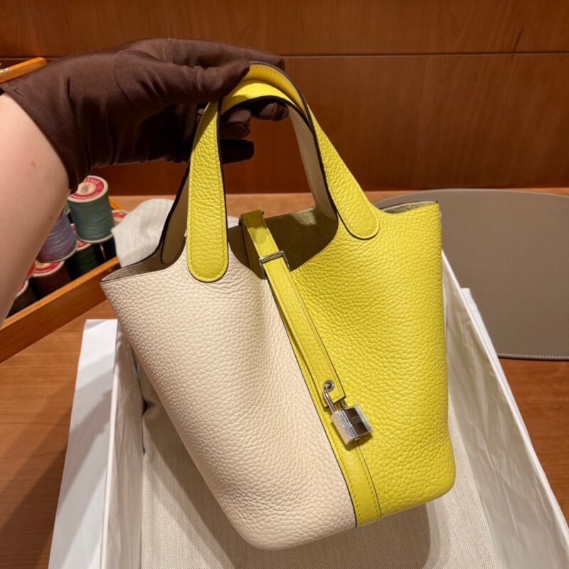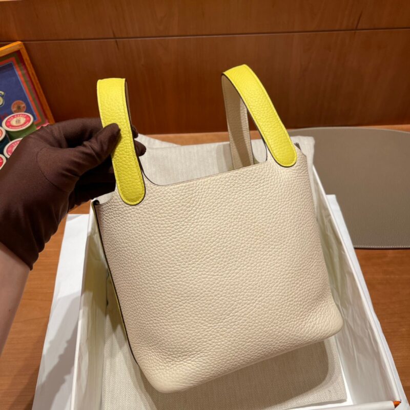 Picotin Lock 18cm Vegetable Basket Clemence (tc Leather) Versatile Basic Model i2 Cream White/9r Lemon Yellow