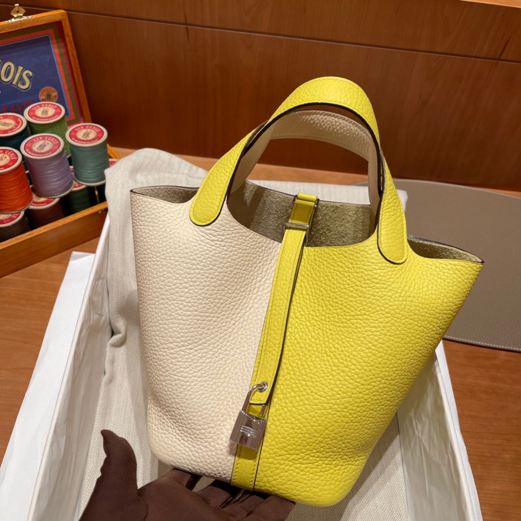 Picotin Lock 18cm Vegetable Basket Clemence (tc Leather) Versatile Basic Model i2 Cream White/9r Lemon Yellow