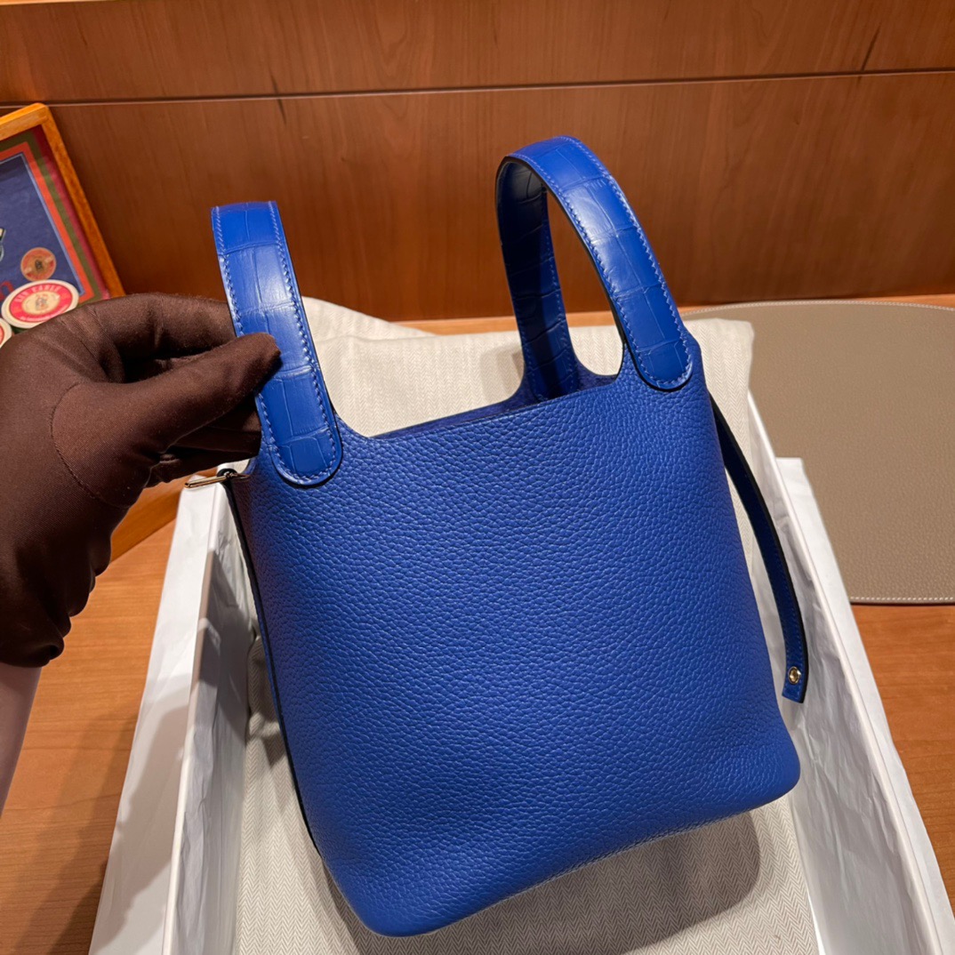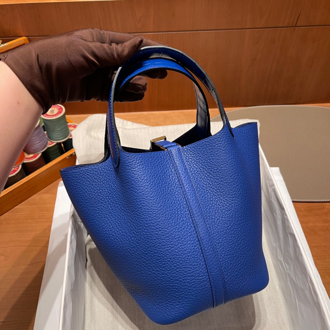 Picotin touch 18cm. Clemence/crocodile handle 7T Blue Electric.