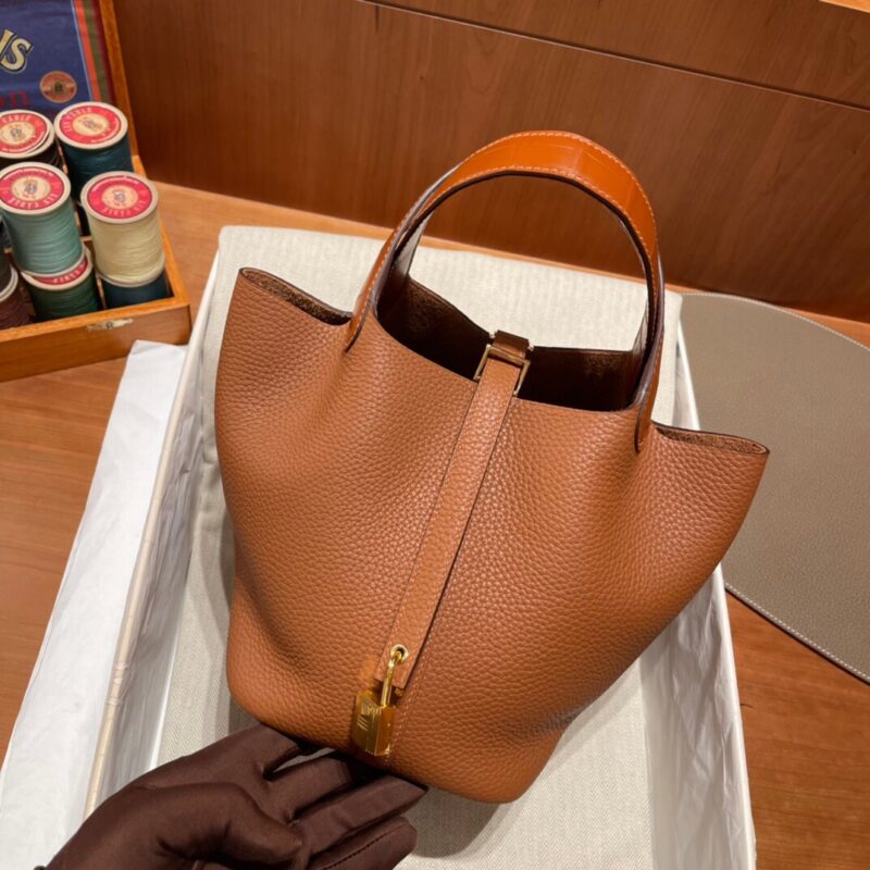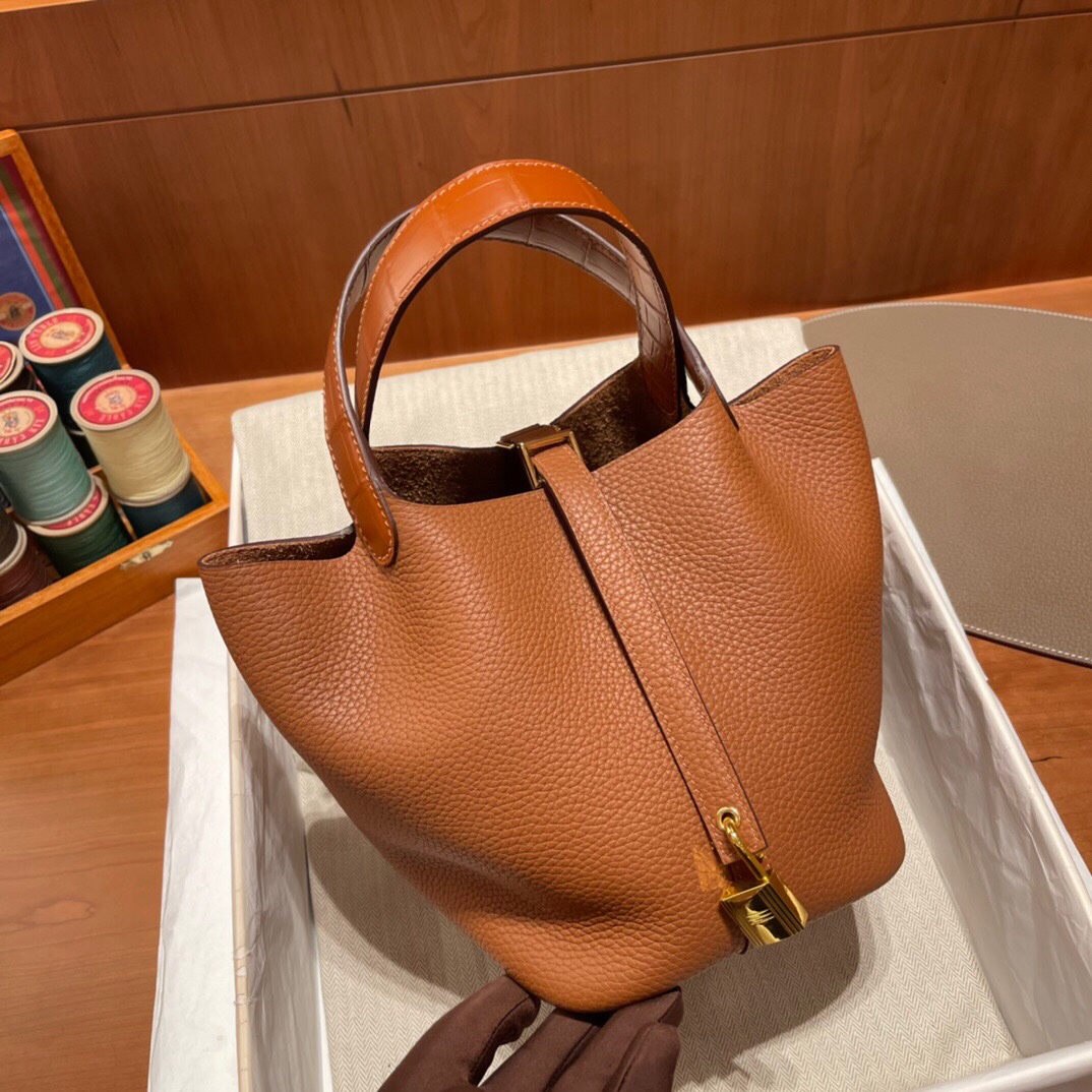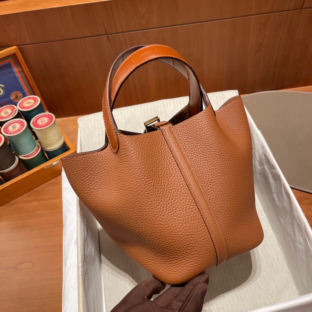 Picotin Lock Touch Vegetable Basket Clemence/Alligator American Matte Carved Cube ️ 37 Golden Brown Gold Ready to send