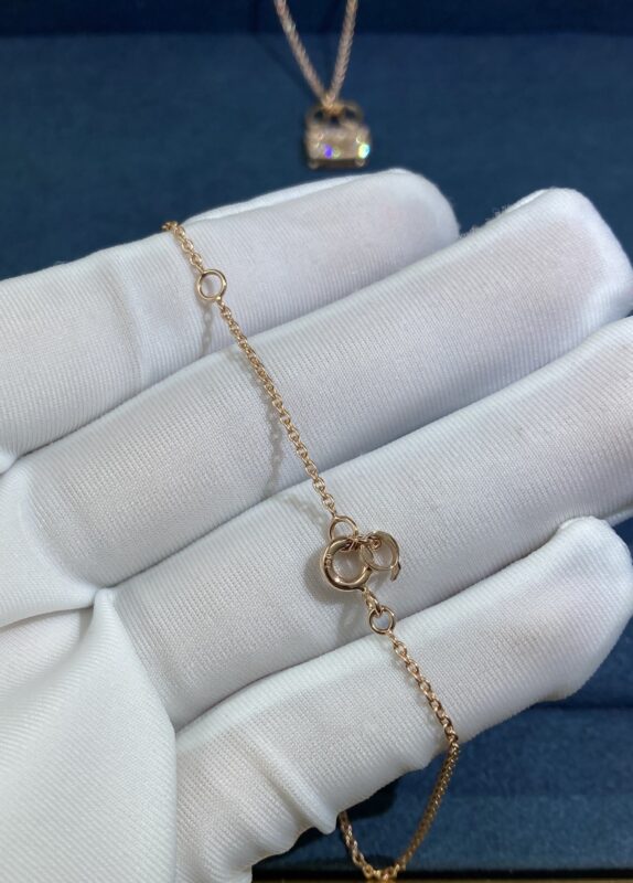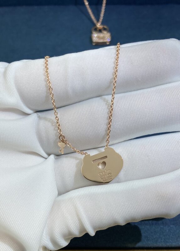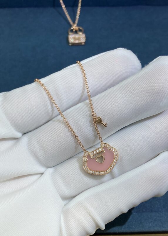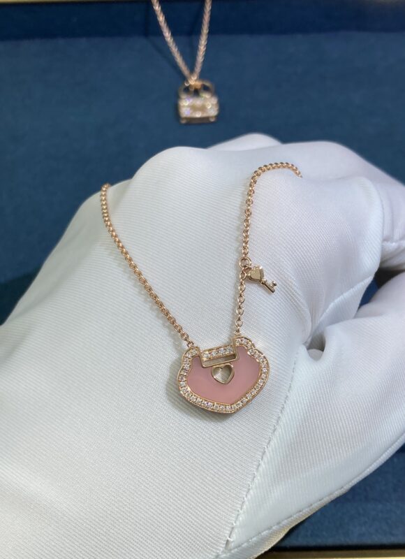Pink Opal Safety Lock Necklace, Rose Gold