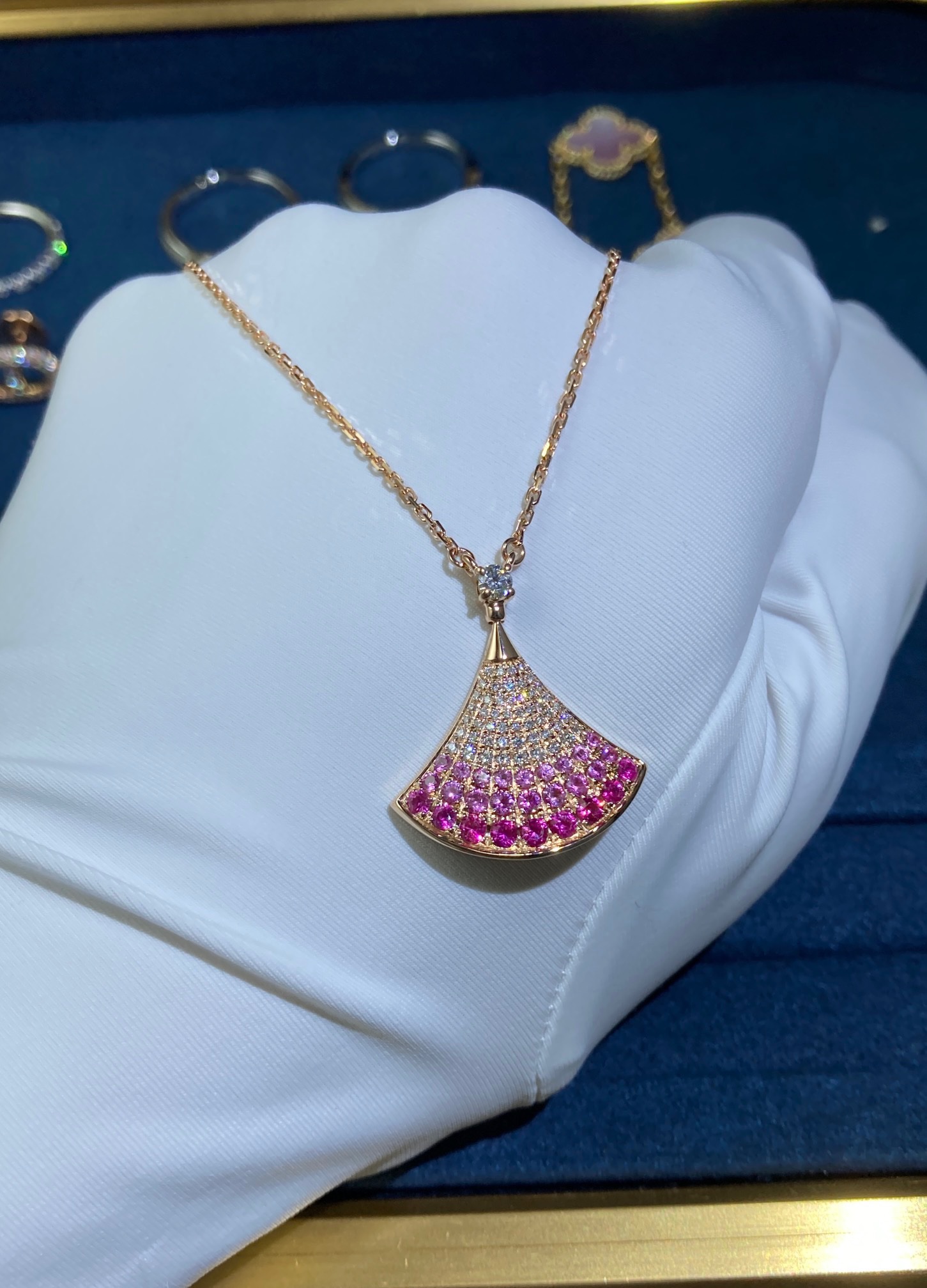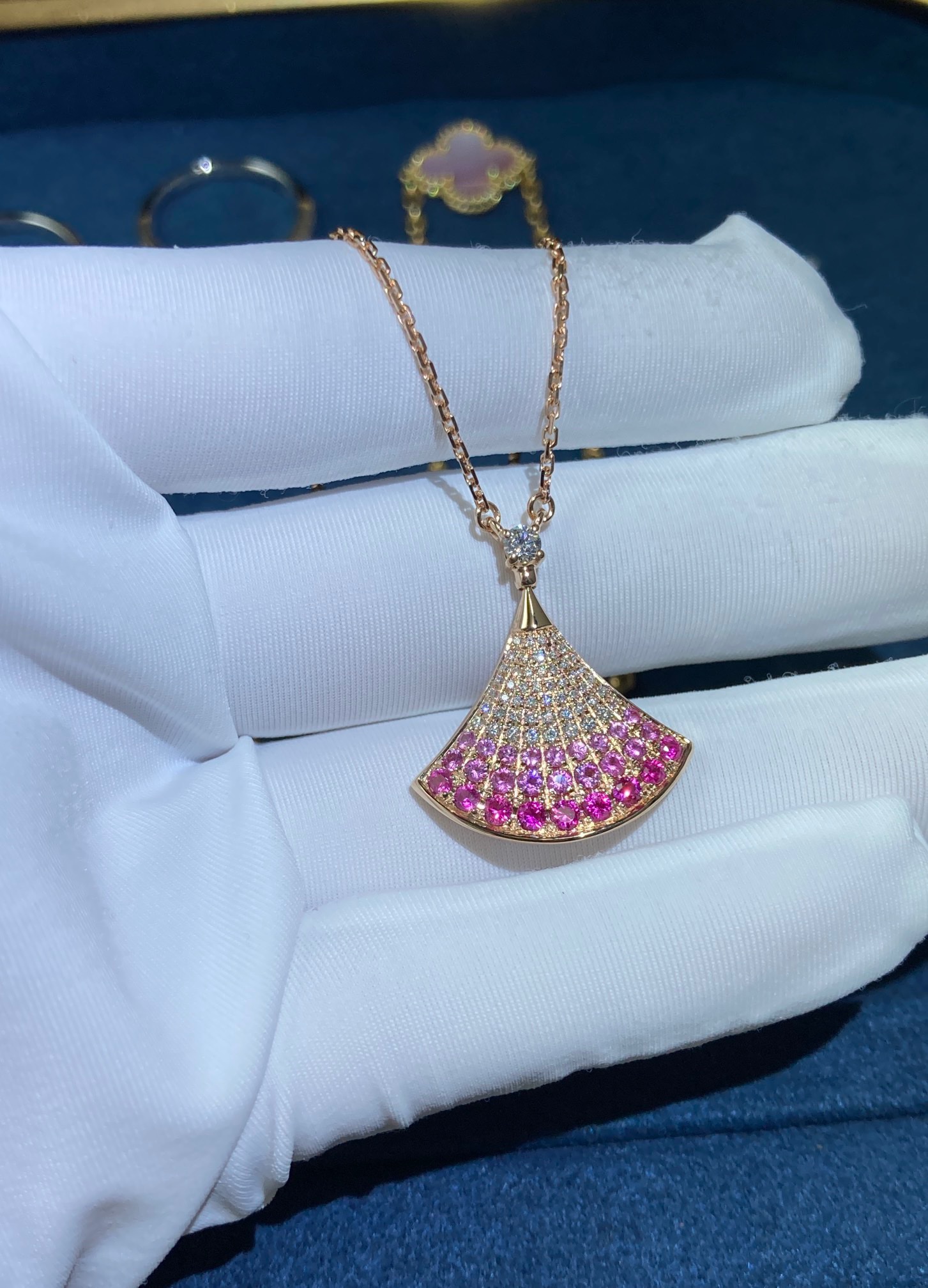 Pink Sapphire + Natural Diamond Skirt Necklace, Rose Gold