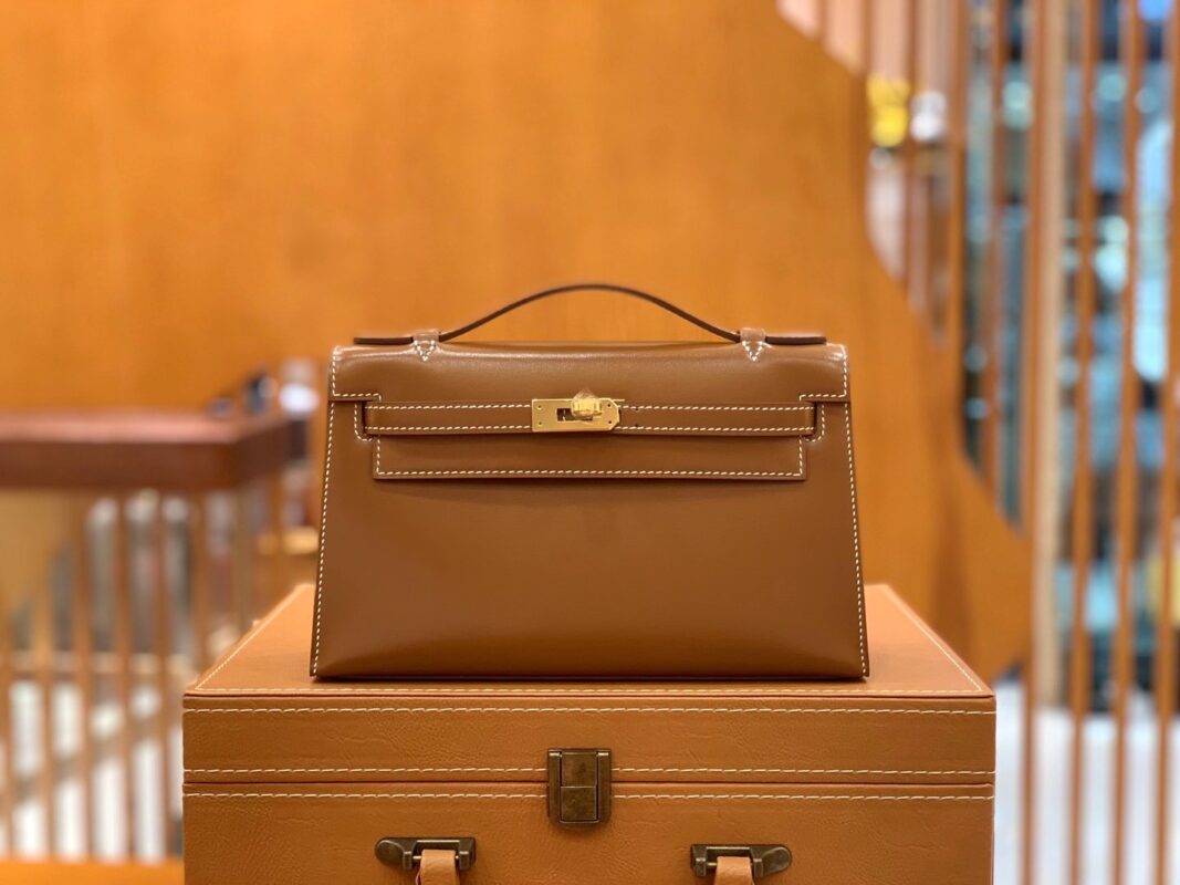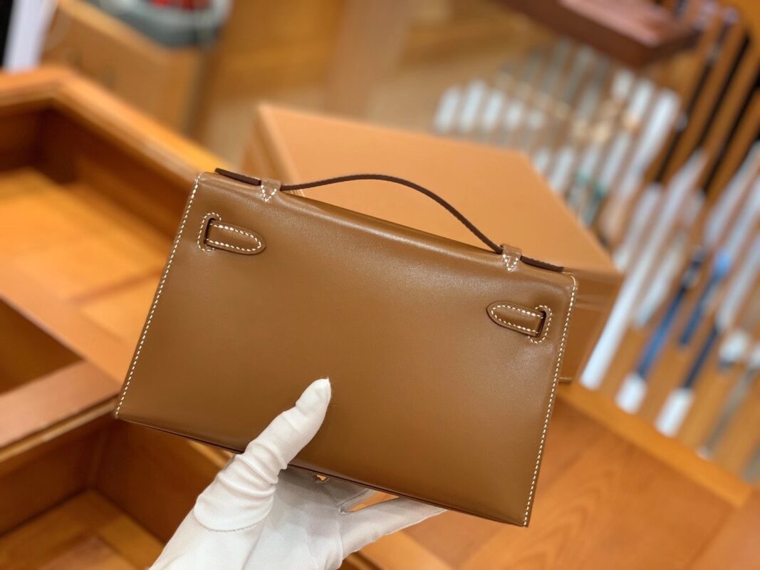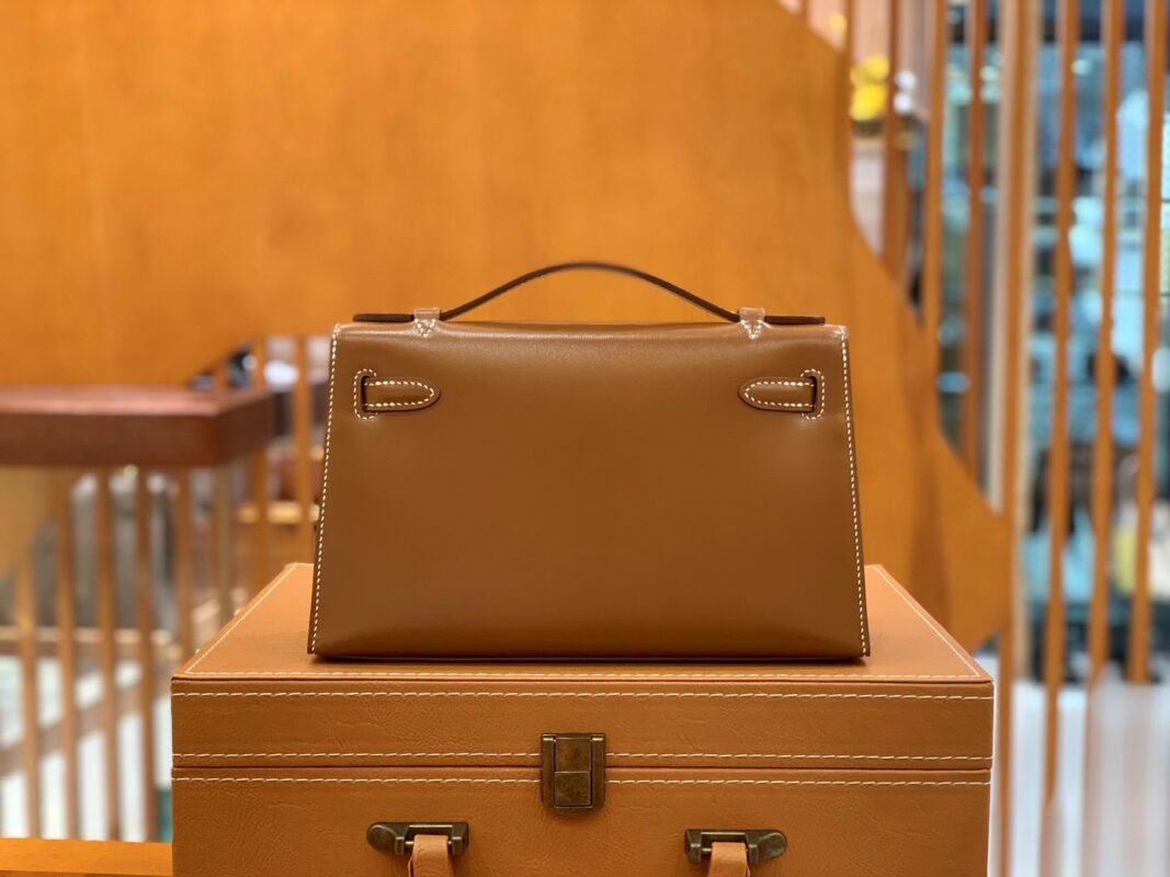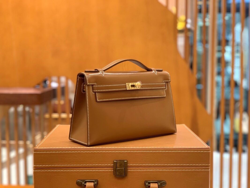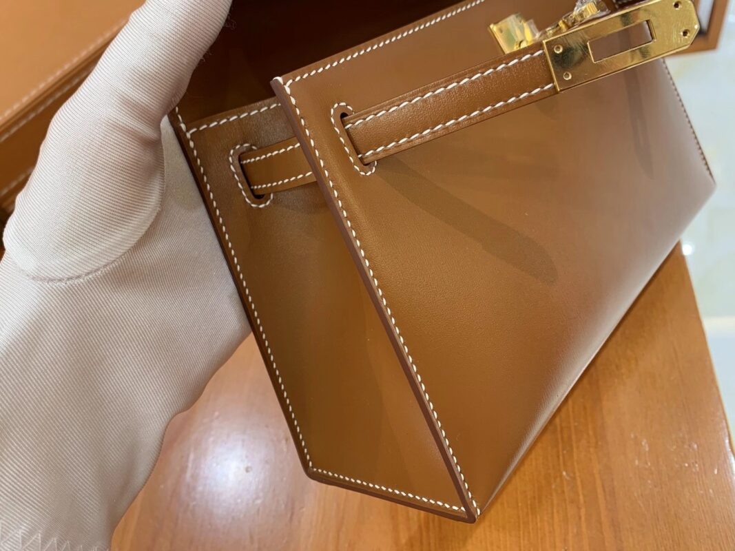 Mini Kelly Generation 22cm Golden Brown Imported BOX cowhide French beeswax thread 100% hand-sewn