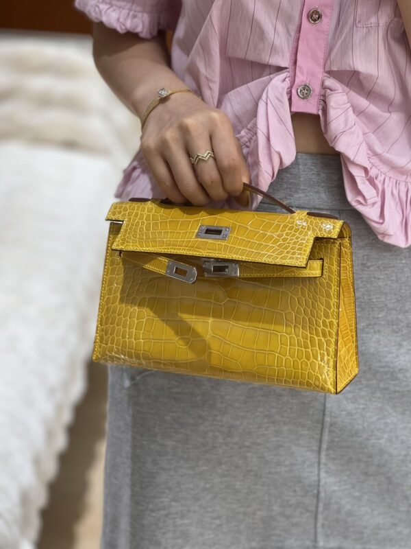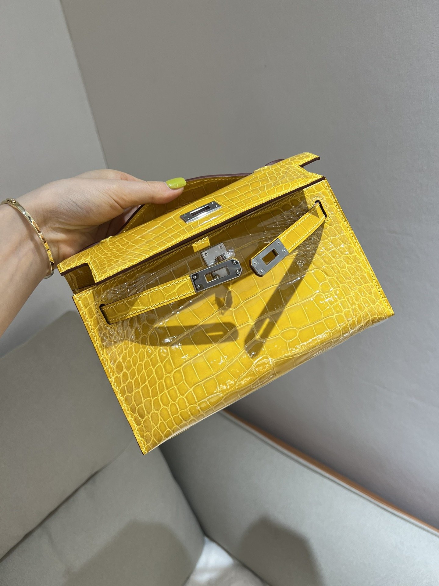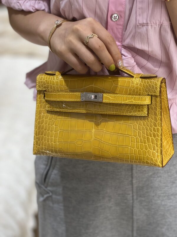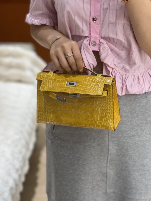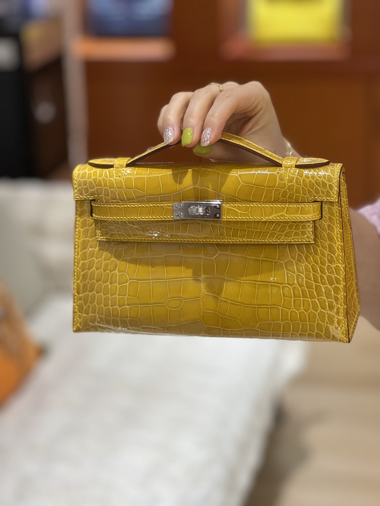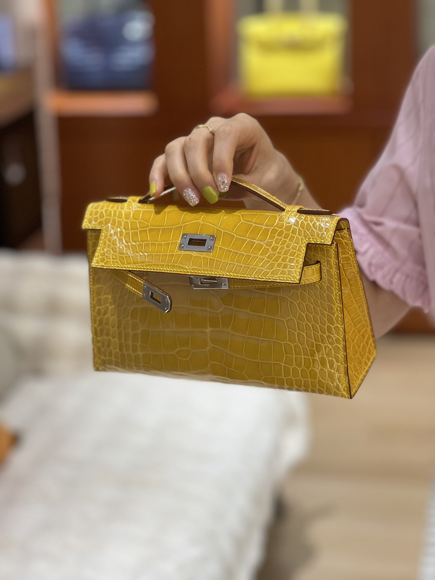 Kelly Pochette in Jaune Ambre Shiny Crocodile