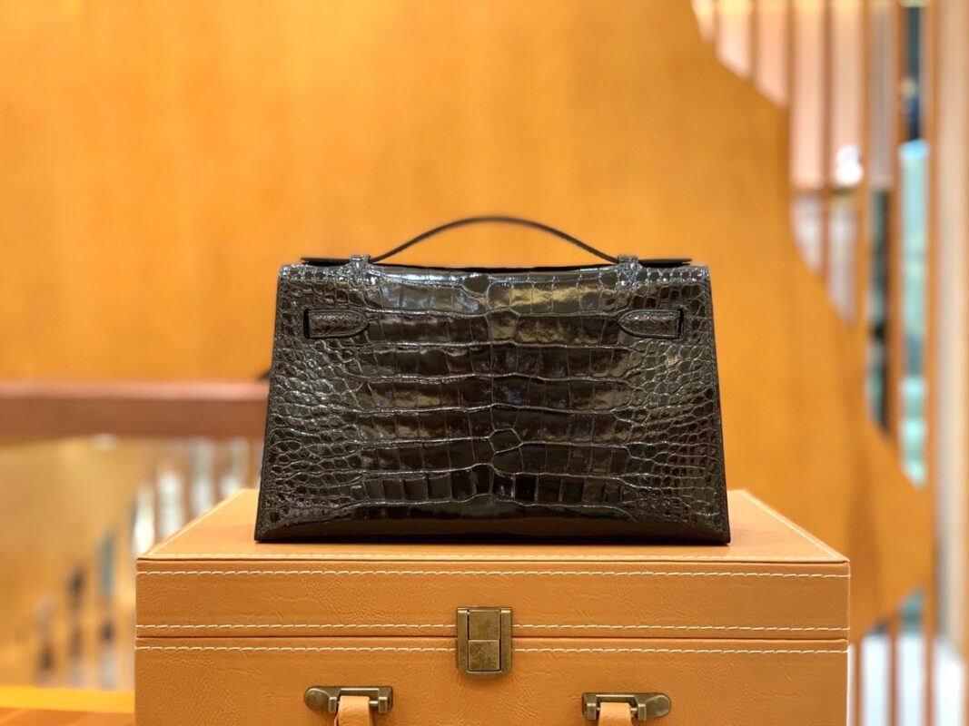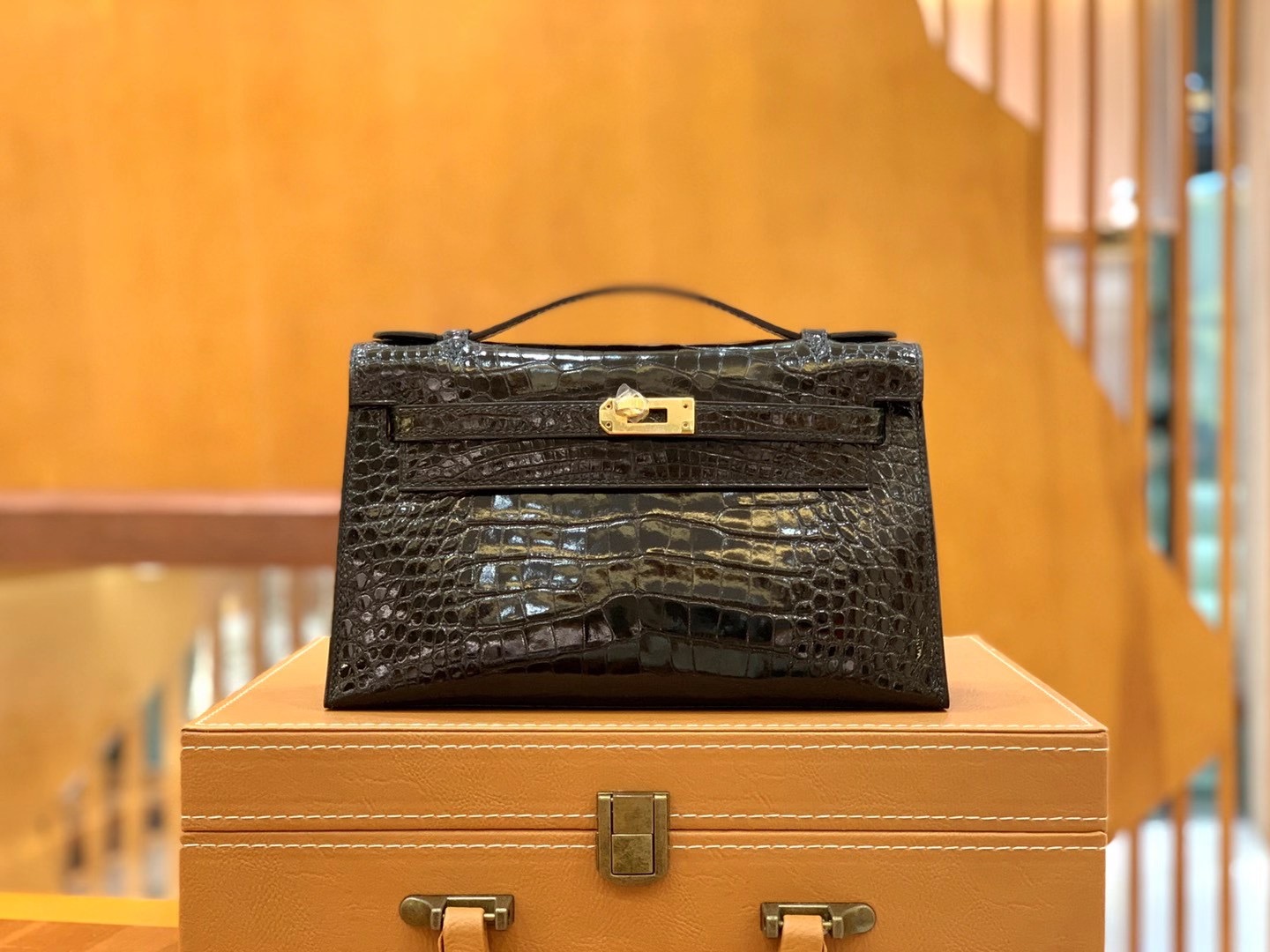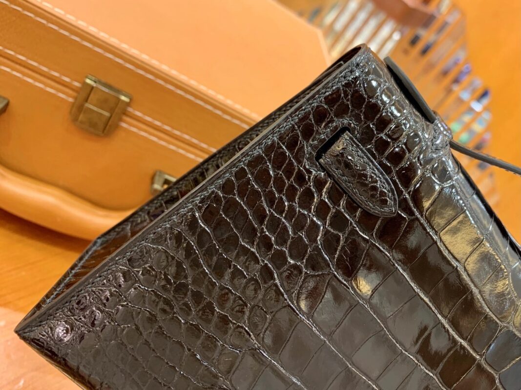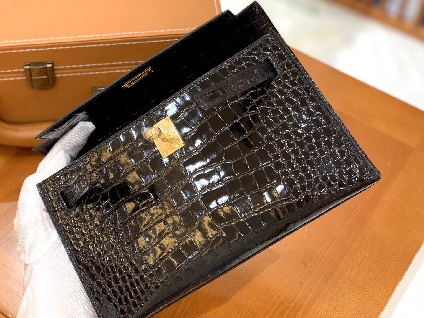 Kelly Pochette Generation 22cm Black Gold Imported first-class American crocodile. Fully hand-sewn