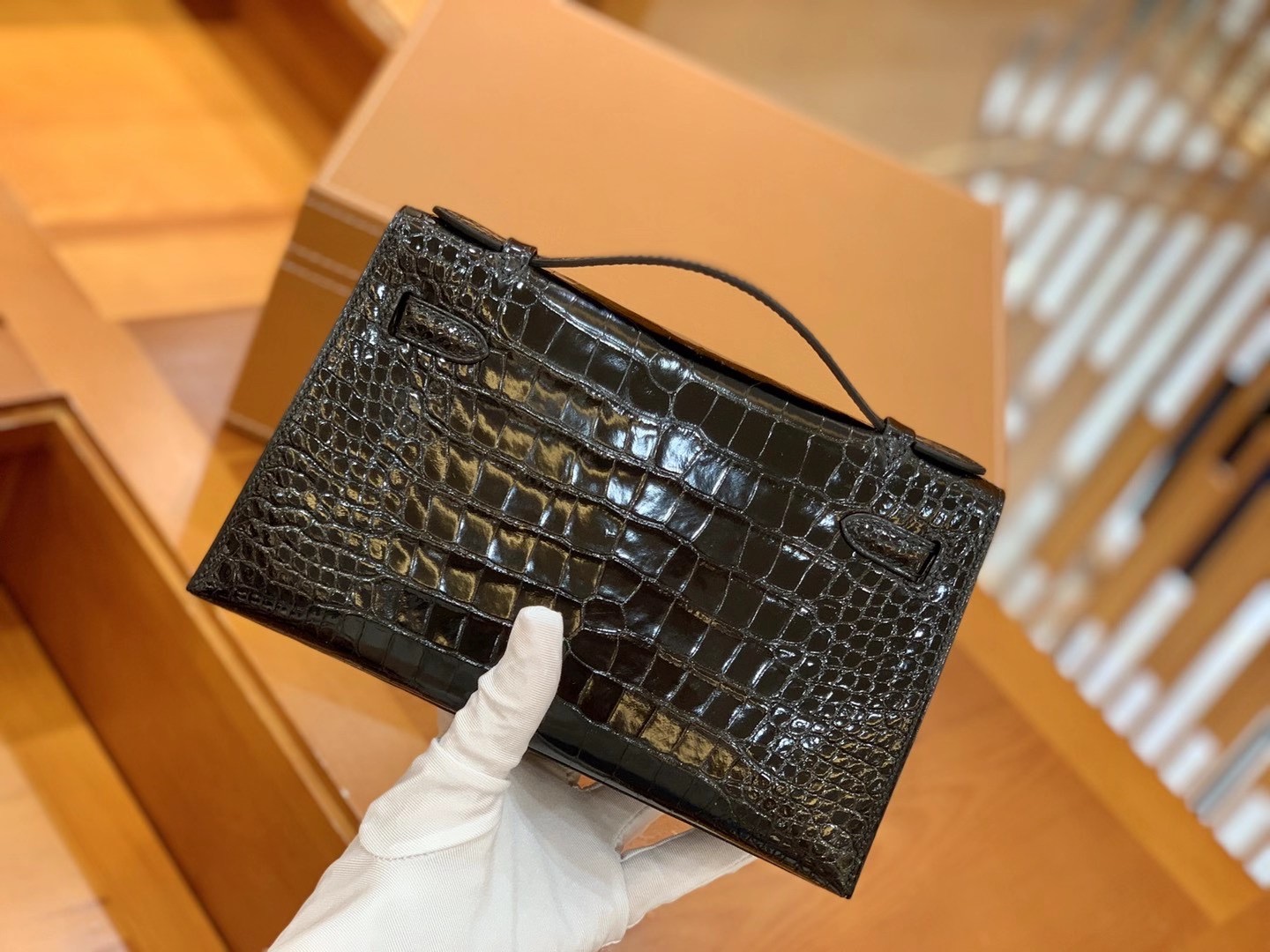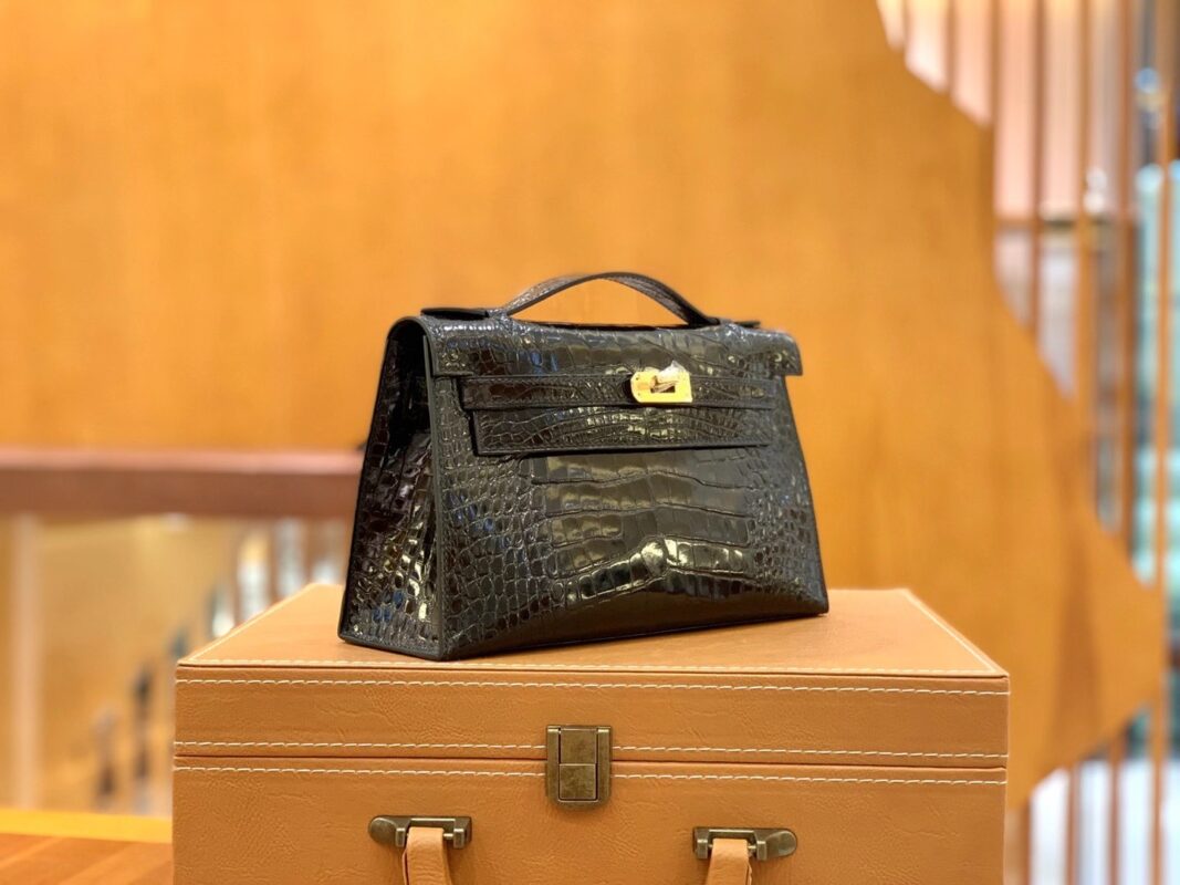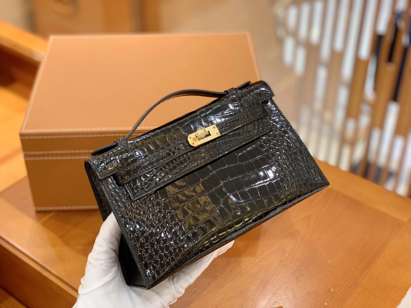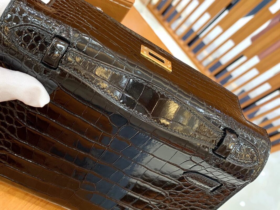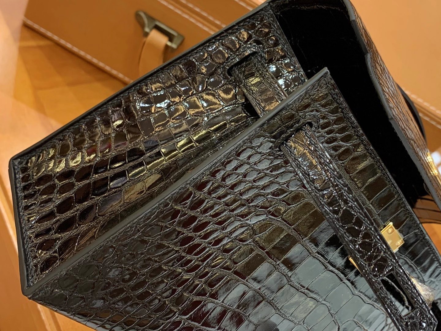Kelly Pochette Generation 22cm Black Gold Imported first-class American crocodile. Fully hand-sewn