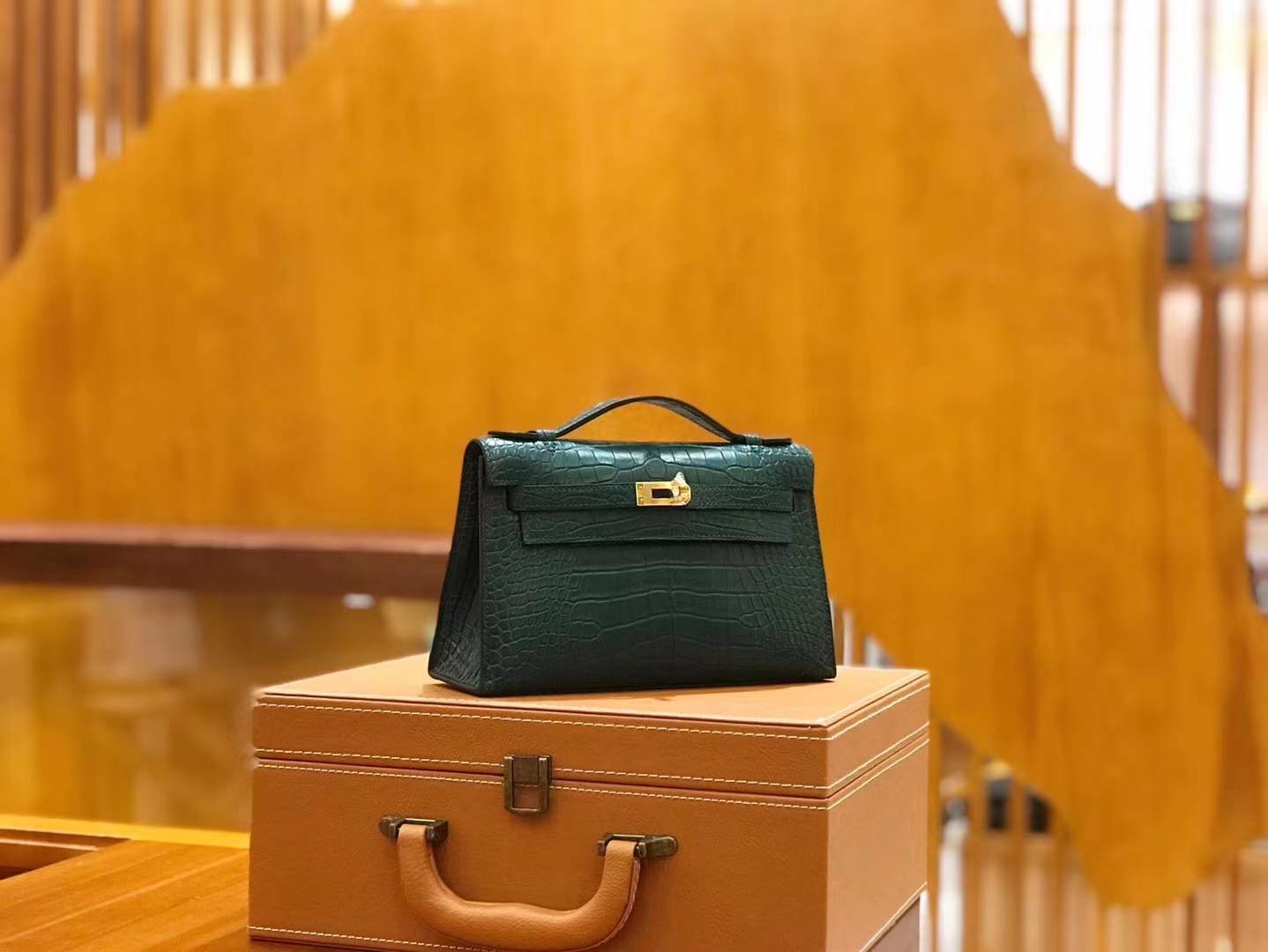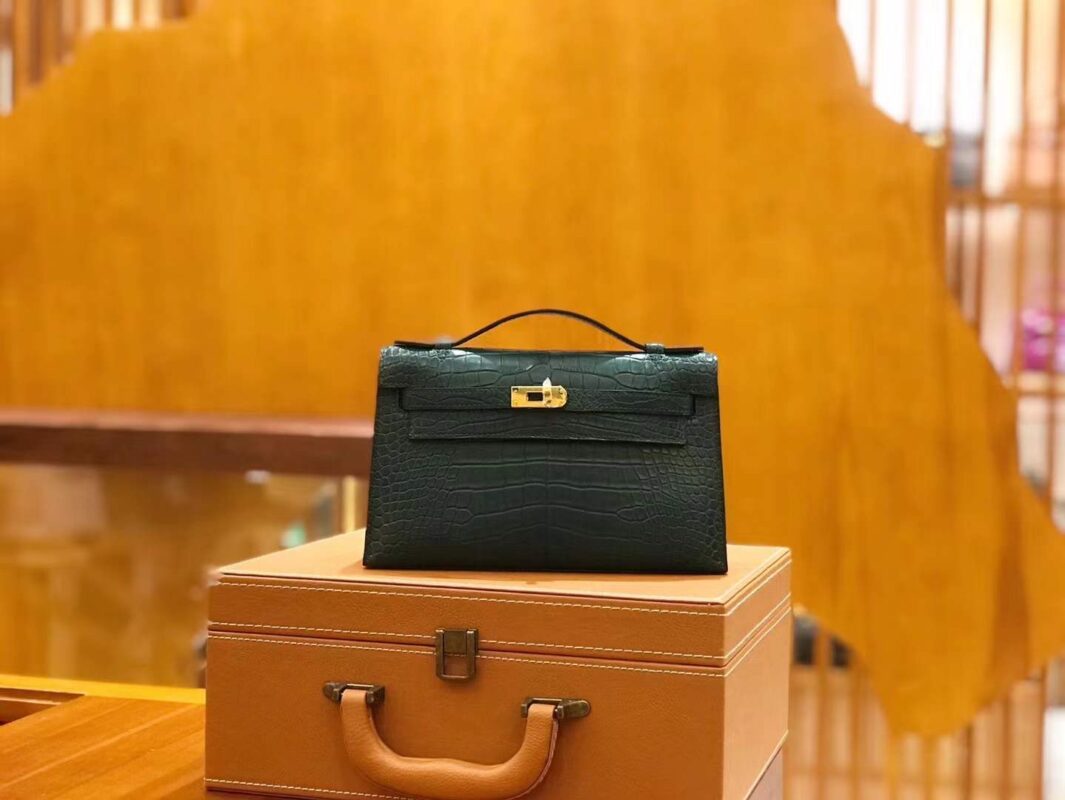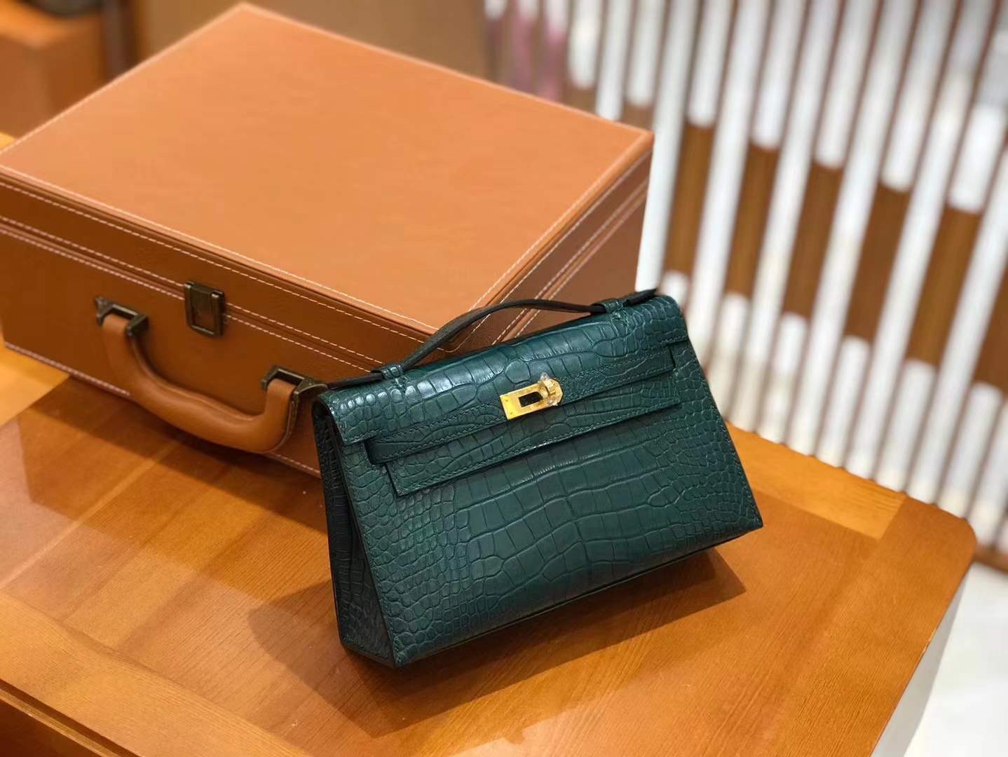 Kelly Pochette first generation 22cm Cypress Green Imported first-class American crocodile. Fully hand-sewn