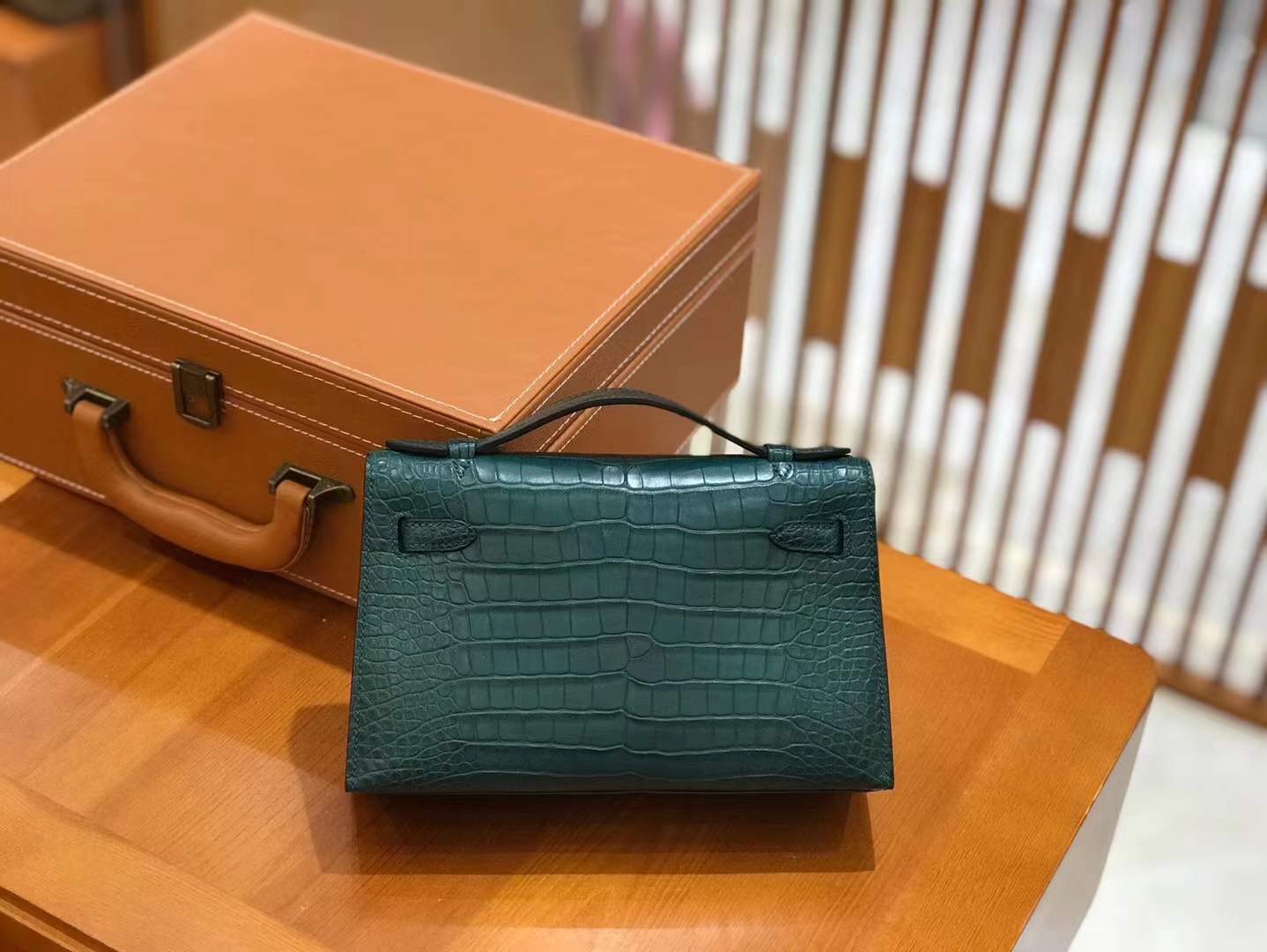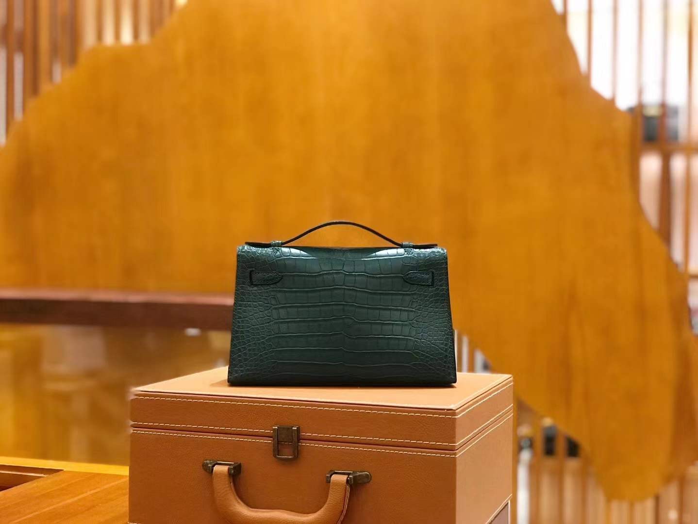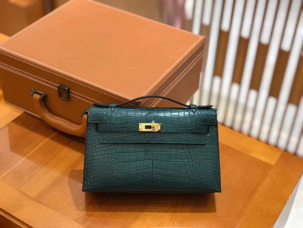 Kelly Pochette first generation 22cm Cypress Green Imported first-class American crocodile. Fully hand-sewn