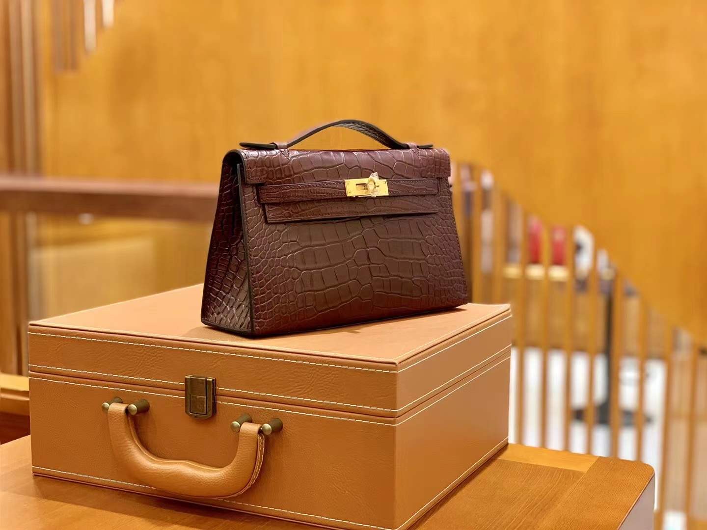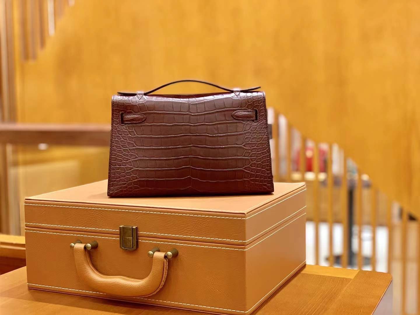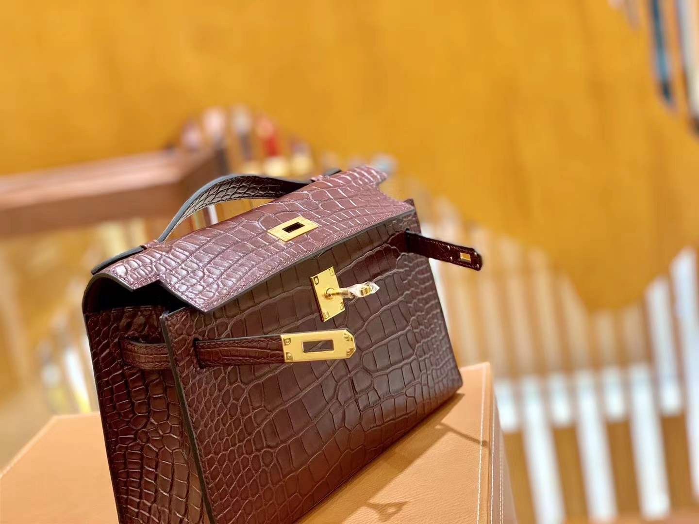 Kelly Pochette Generation 22cm Wine Red Imported first-class American crocodile. Fully hand-sewn