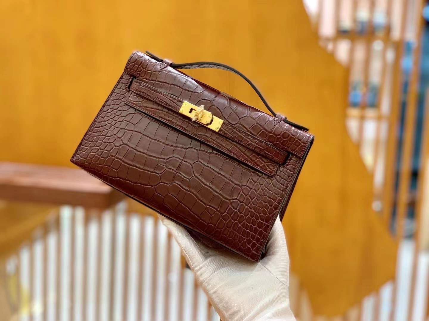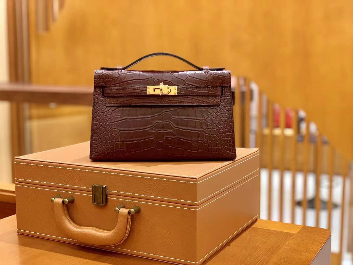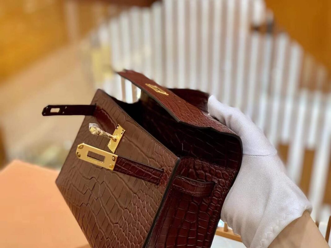 Kelly Pochette Generation 22cm Wine Red Imported first-class American crocodile. Fully hand-sewn