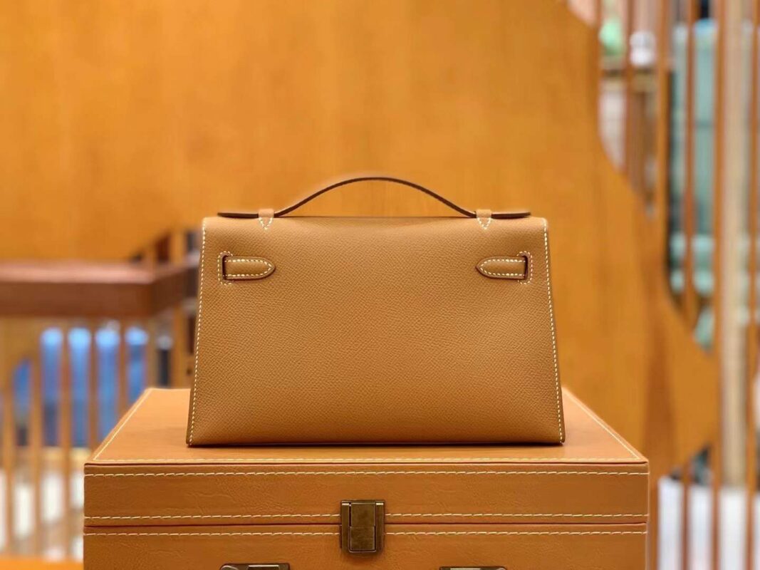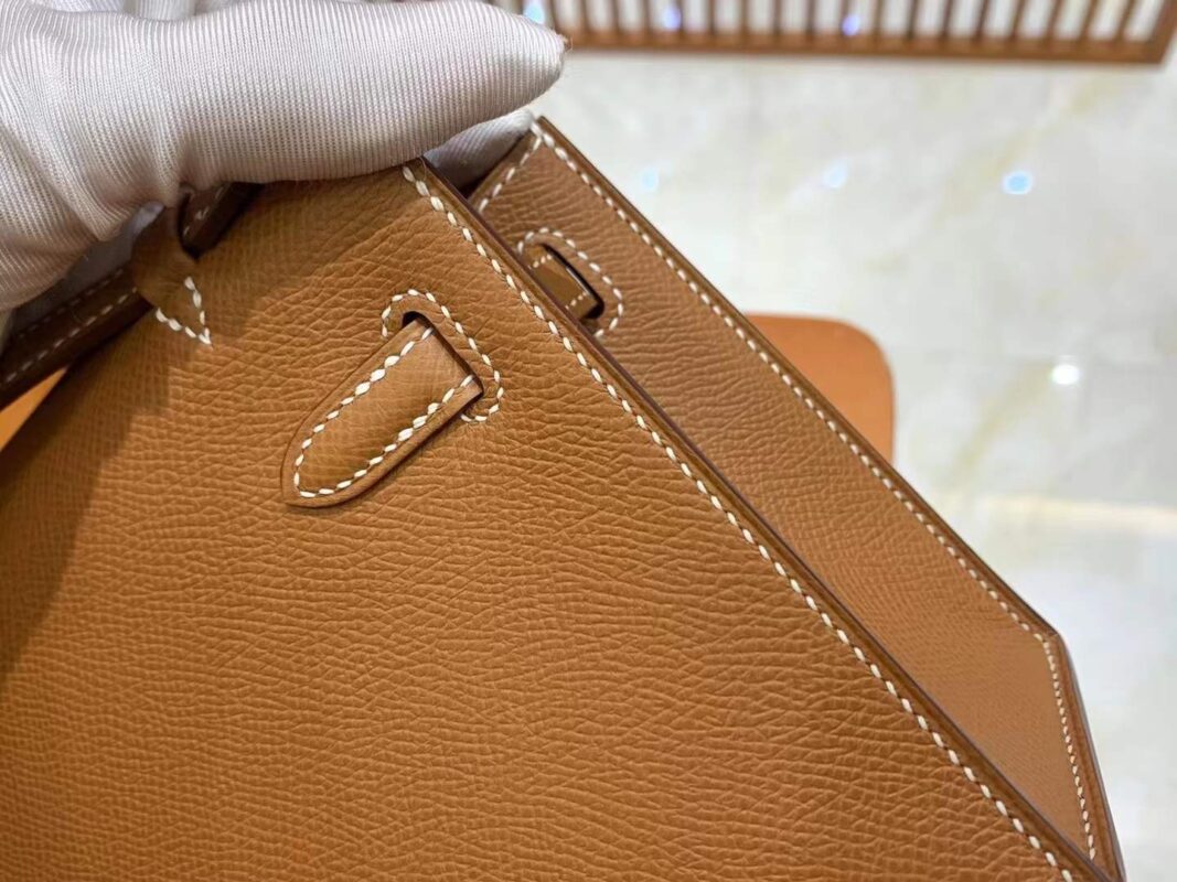 Mini Kelly Generation 22cm Golden Brown Imported Epsom cowhide French beeswax thread 100% hand-sewn