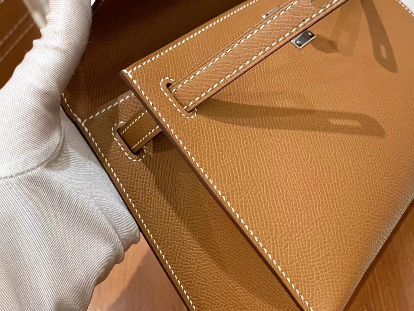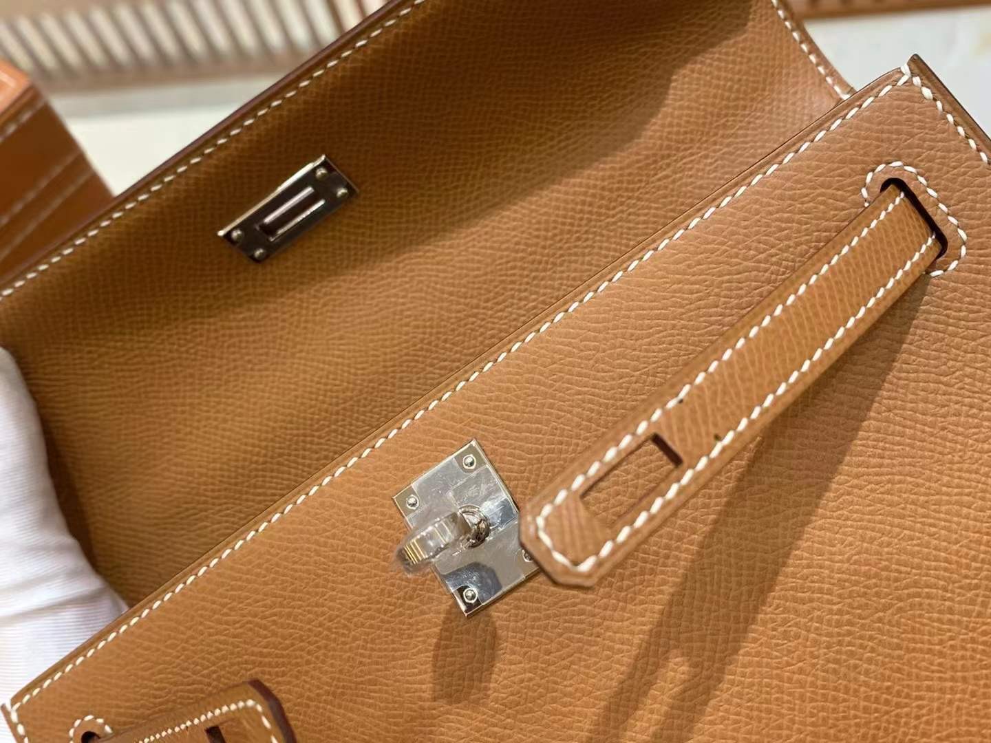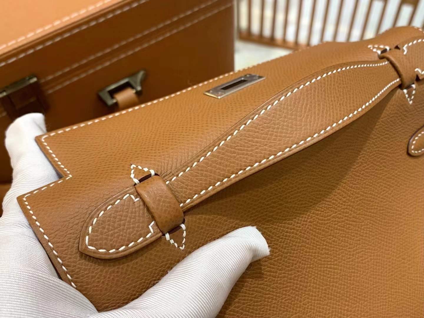 Mini Kelly Generation 22cm Golden Brown Imported Epsom cowhide French beeswax thread 100% hand-sewn