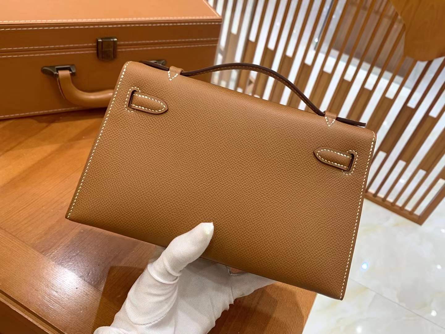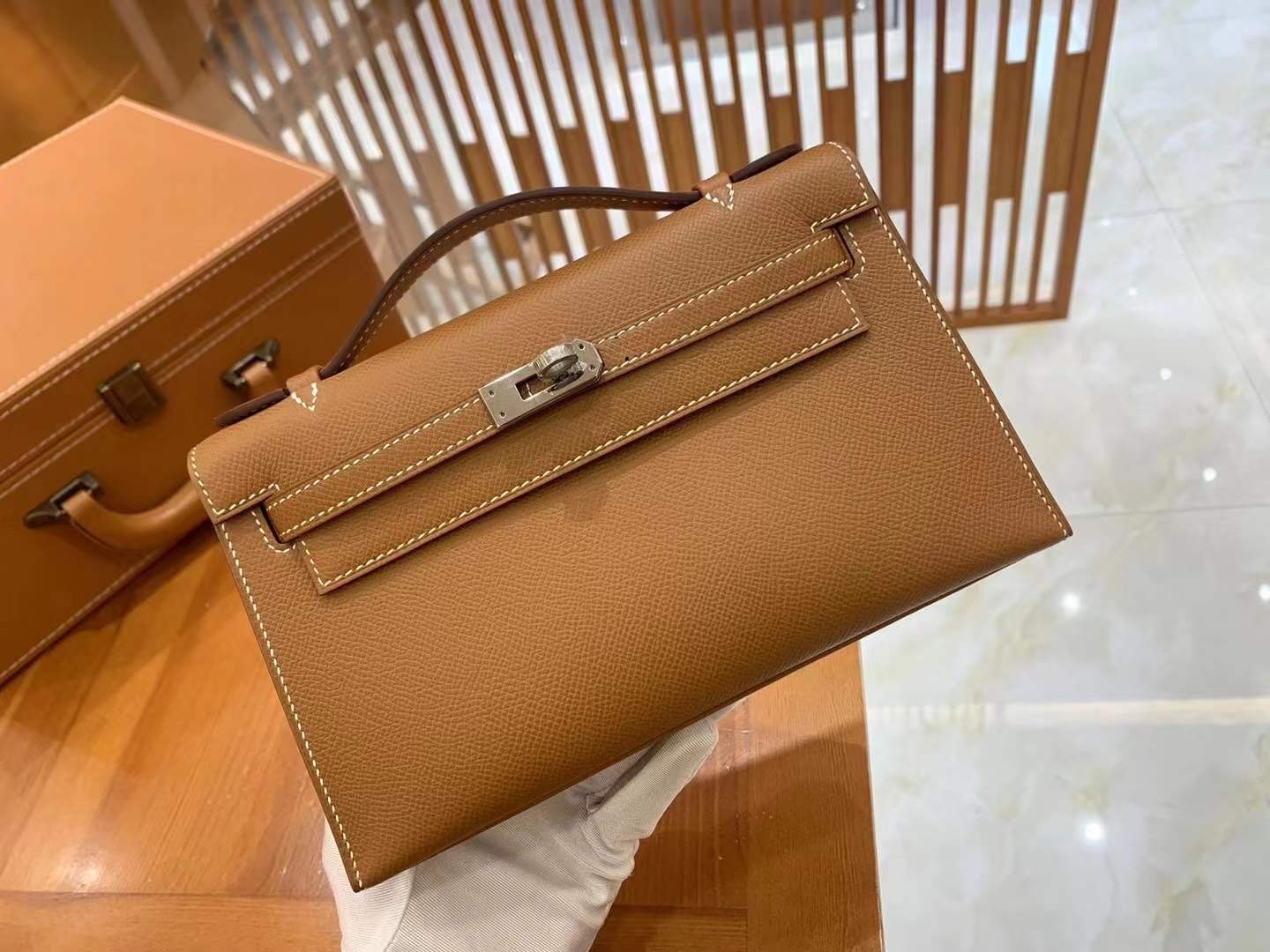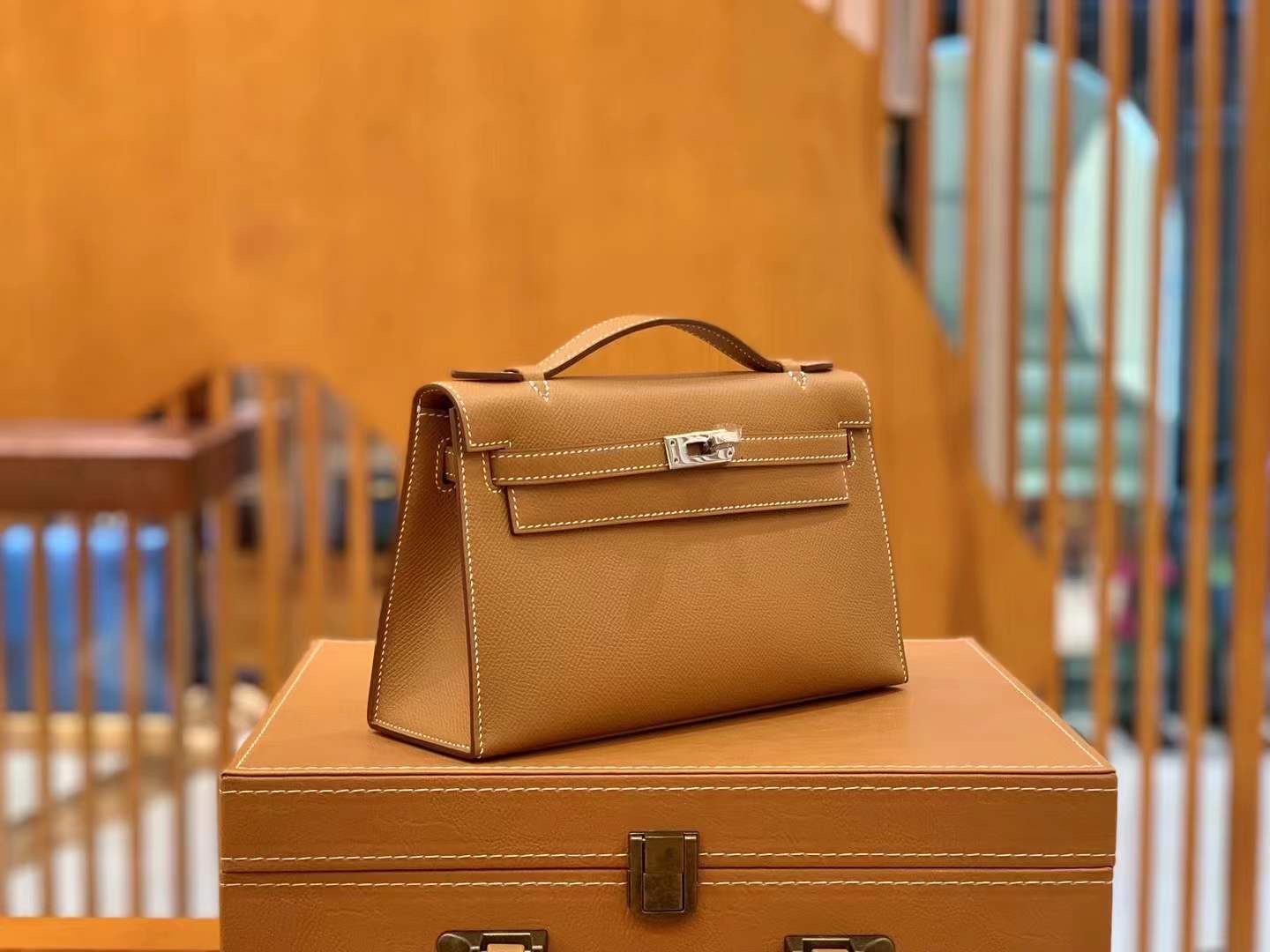 Mini Kelly Generation 22cm Golden Brown Imported Epsom cowhide French beeswax thread 100% hand-sewn