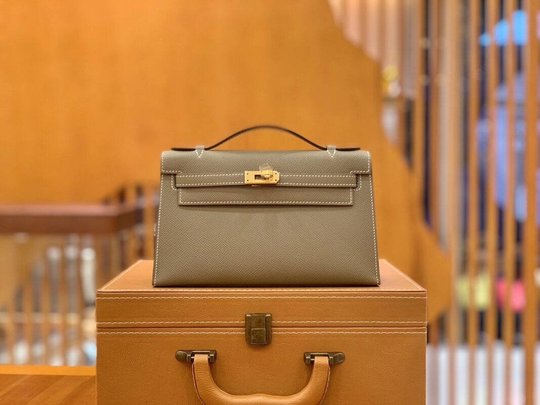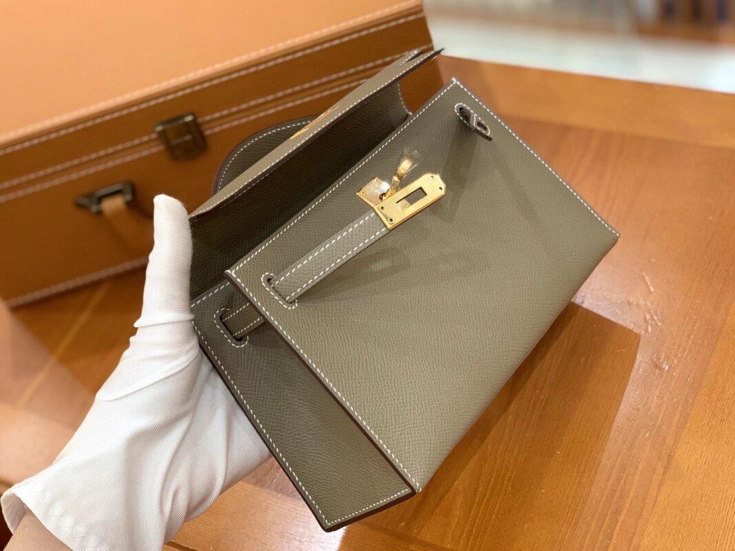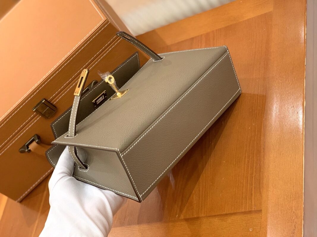 Mini Kelly Generation 22cm Elephant Grey Imported Epsom cowhide French beeswax thread 100% hand-sewn