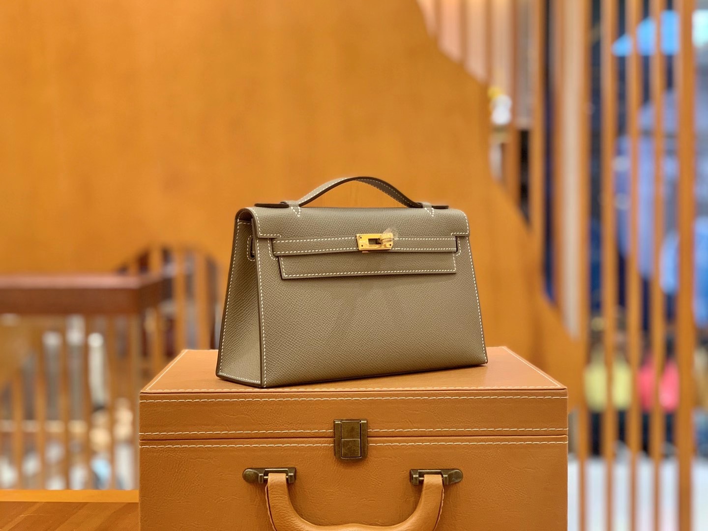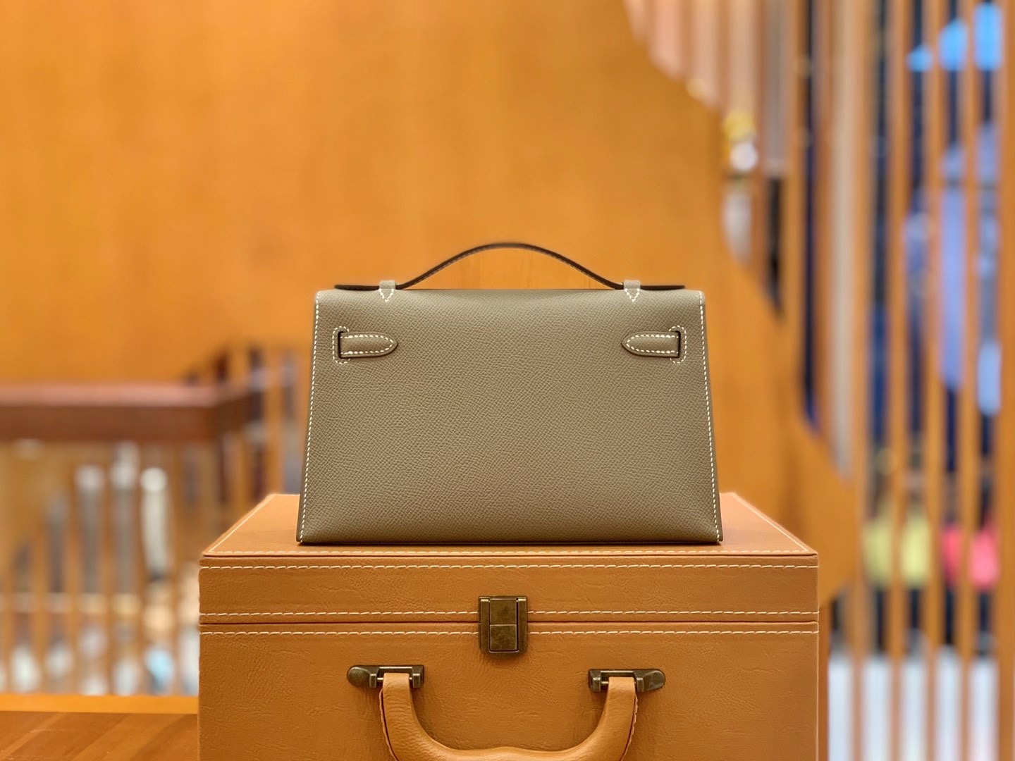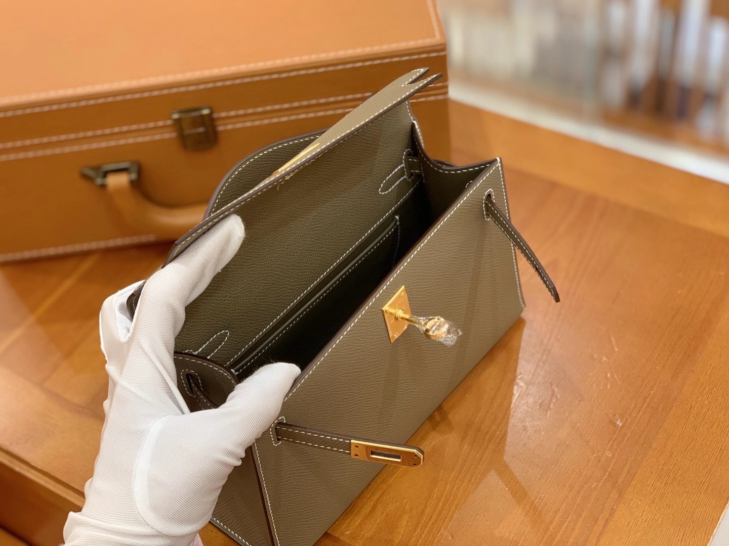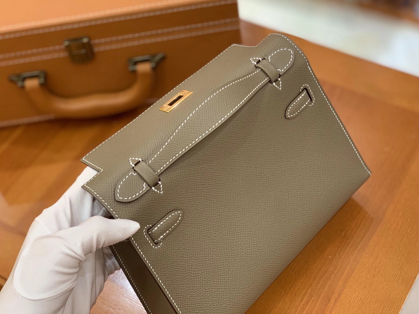 Mini Kelly Generation 22cm Elephant Grey Imported Epsom cowhide French beeswax thread 100% hand-sewn