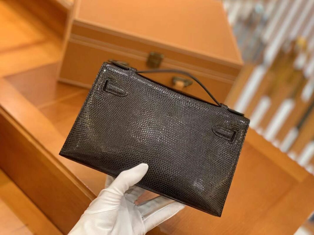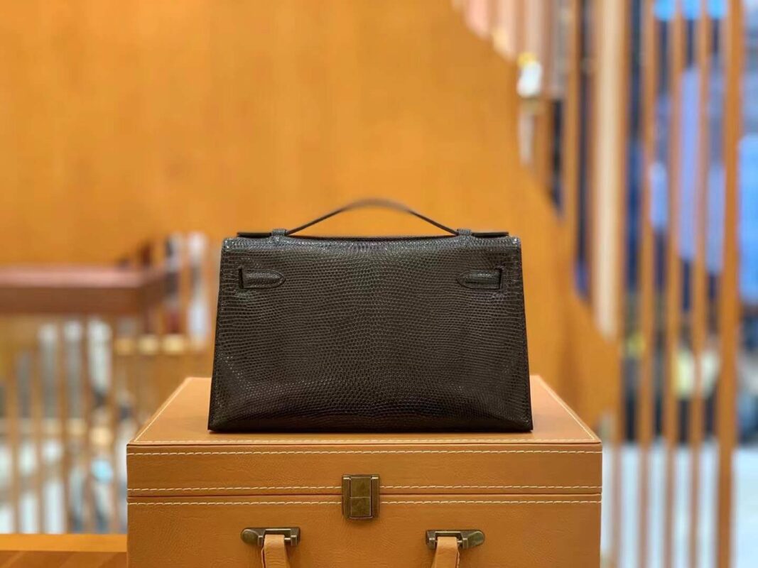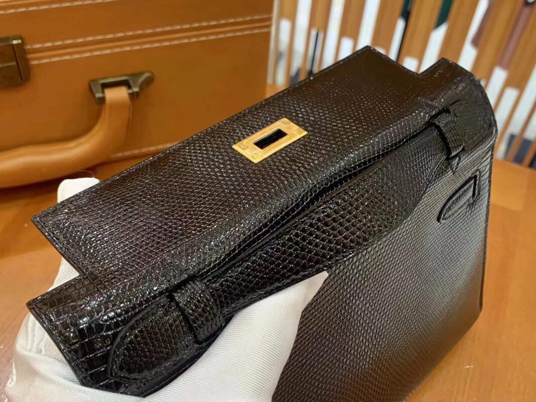 Mini Kelly Generation 22cm Black Gold Imported wild lizard skin. Hand-sewn