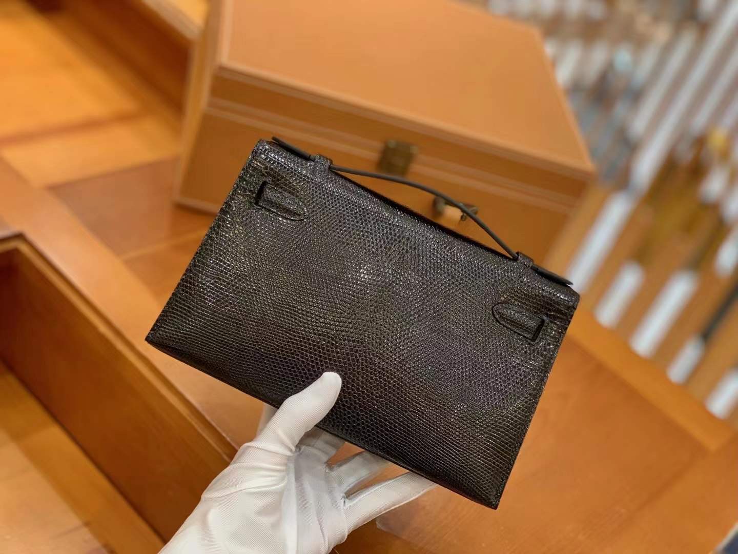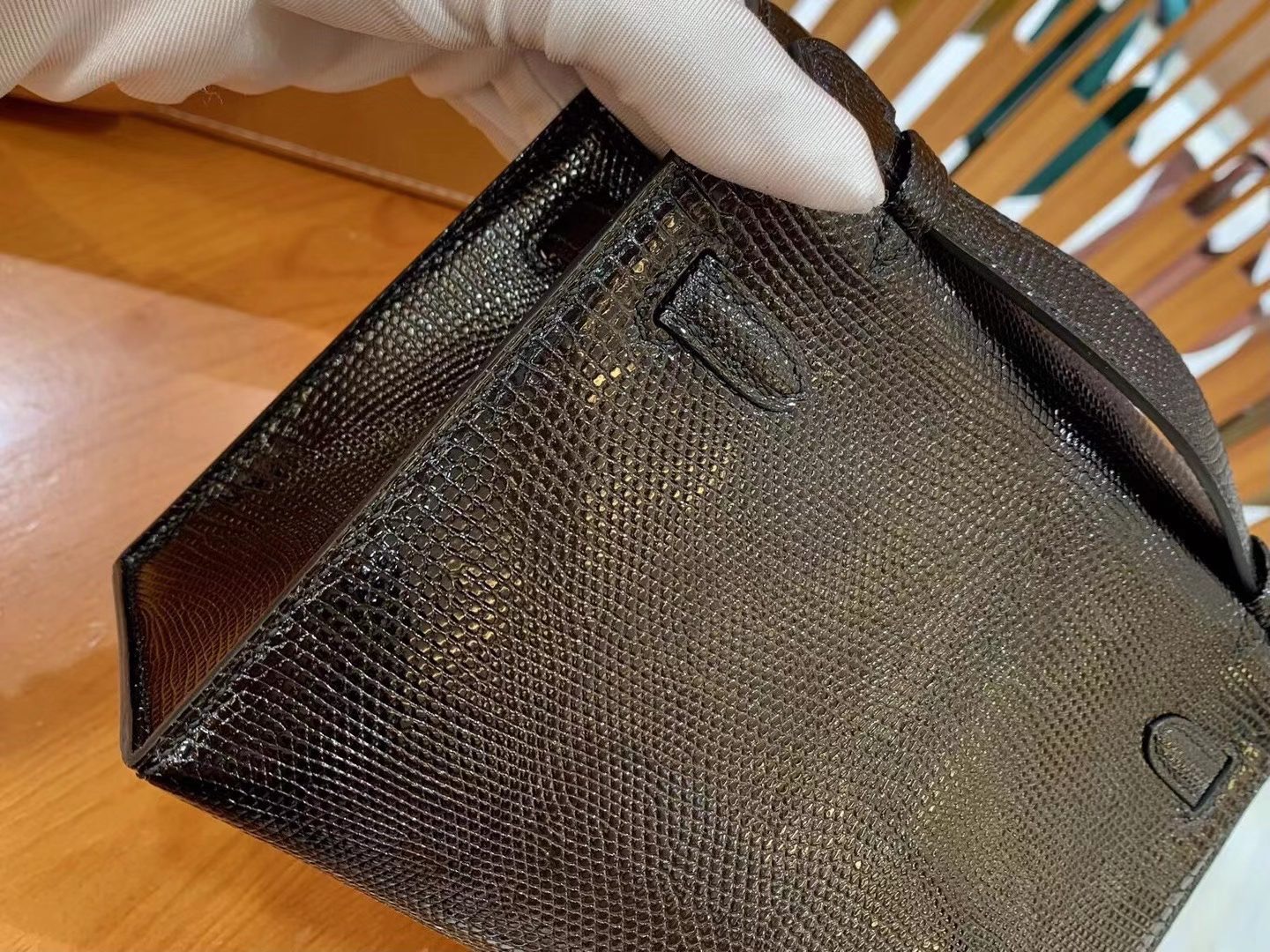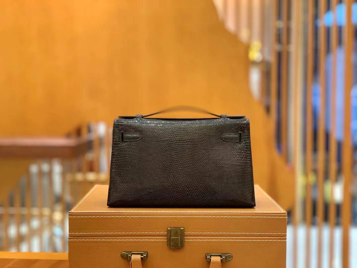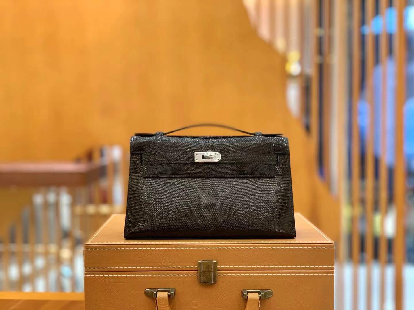 Mini Kelly Generation 22cm Black Silver Imported wild lizard skin. Hand-sewn