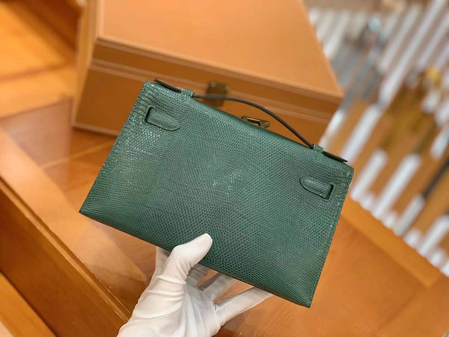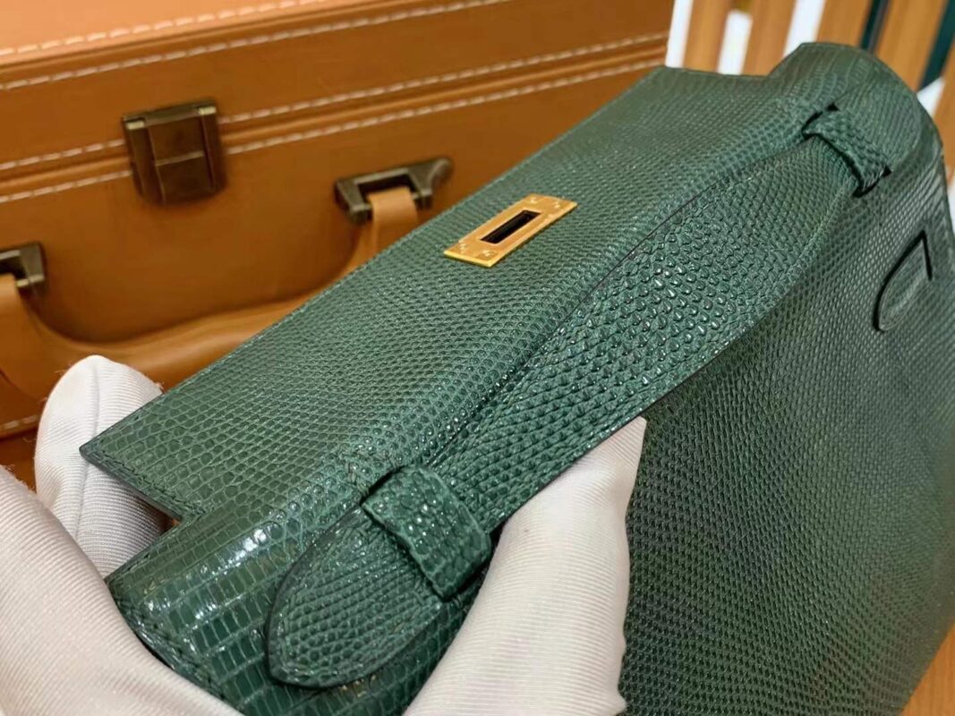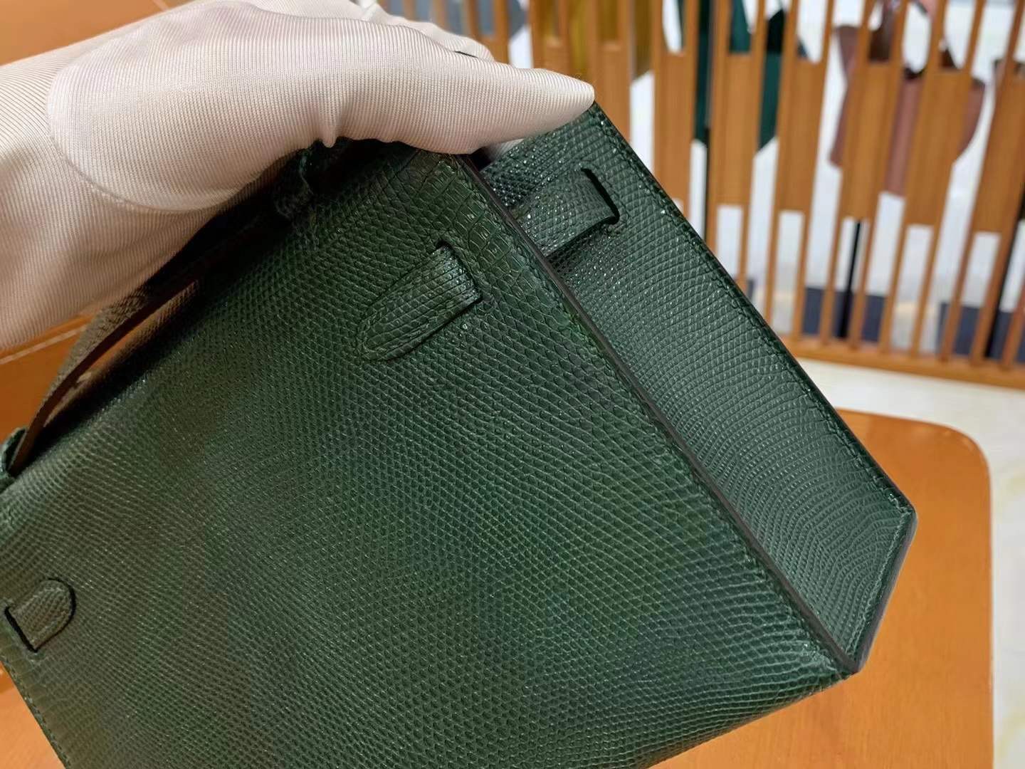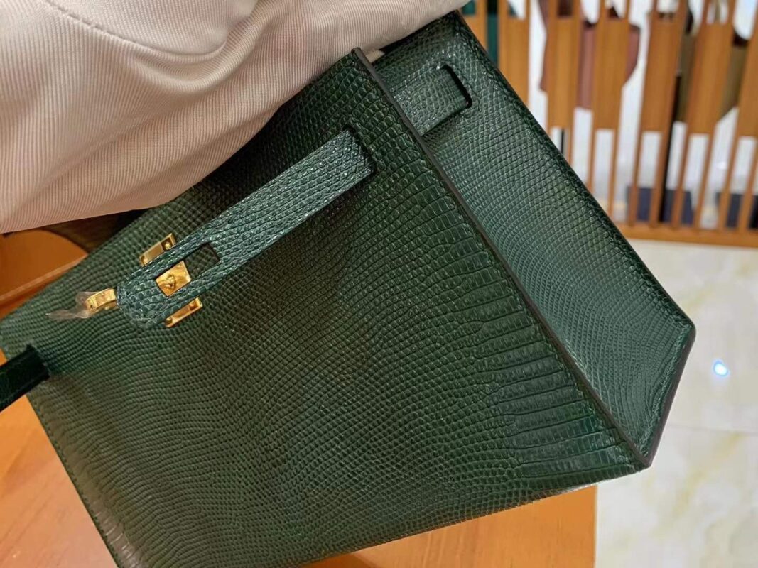 Mini Kelly Generation 22cm Malachite Green Imported wild lizard skin. Hand-sewn