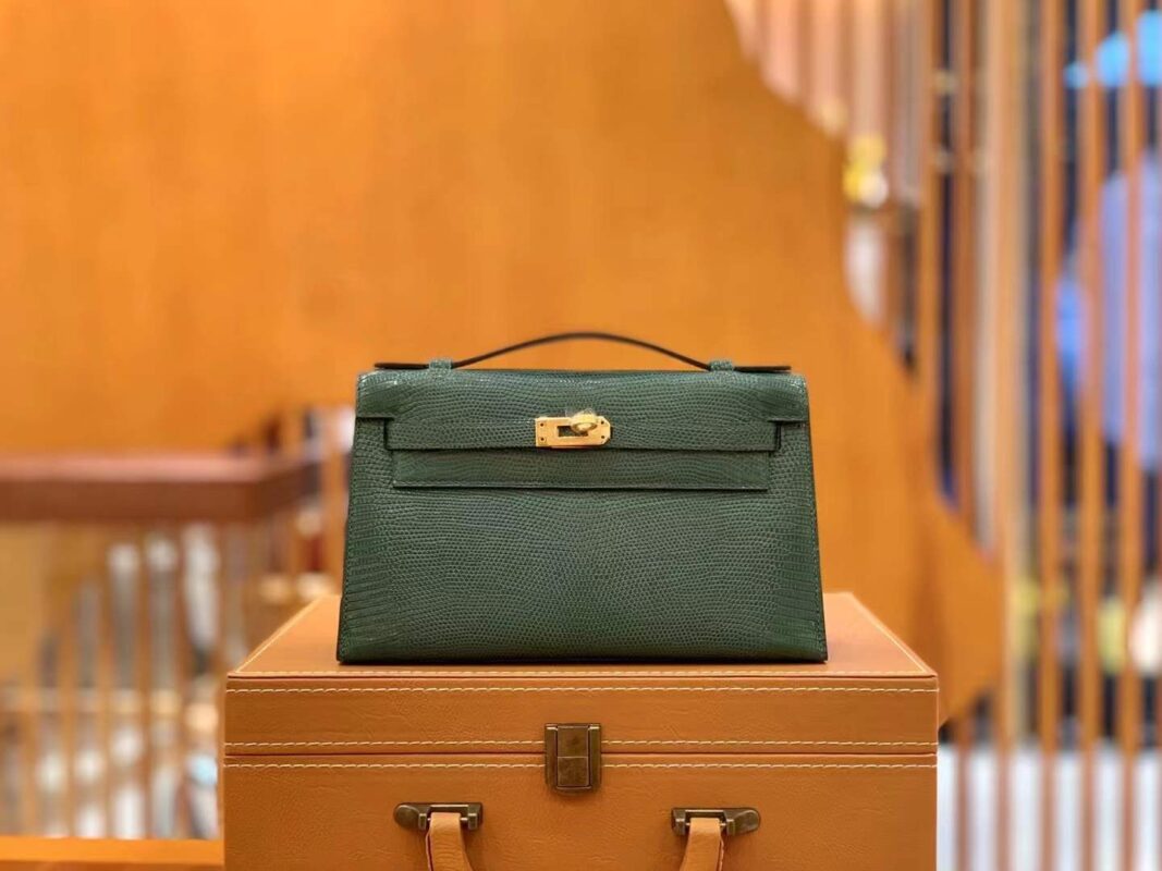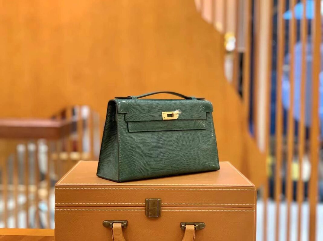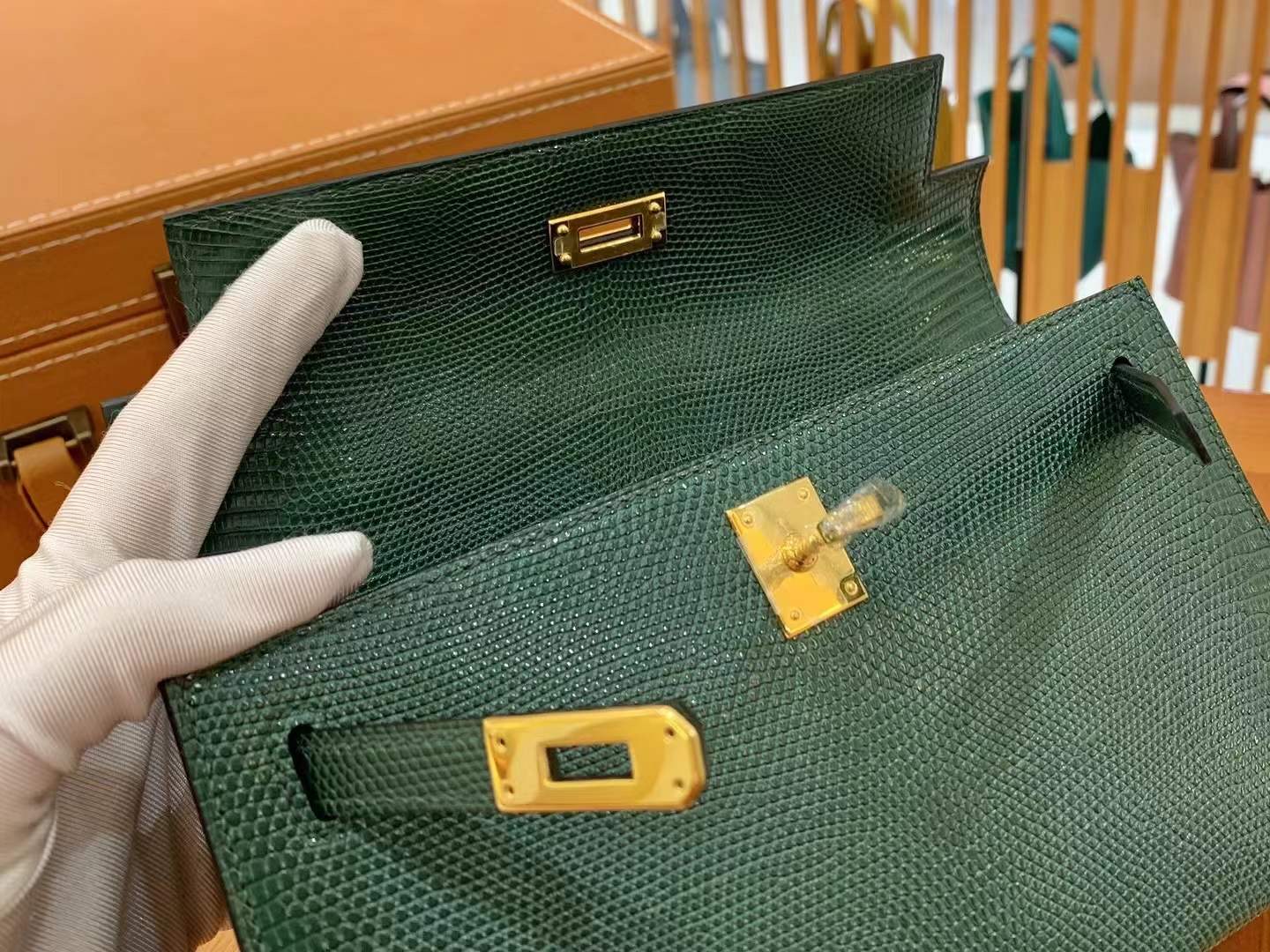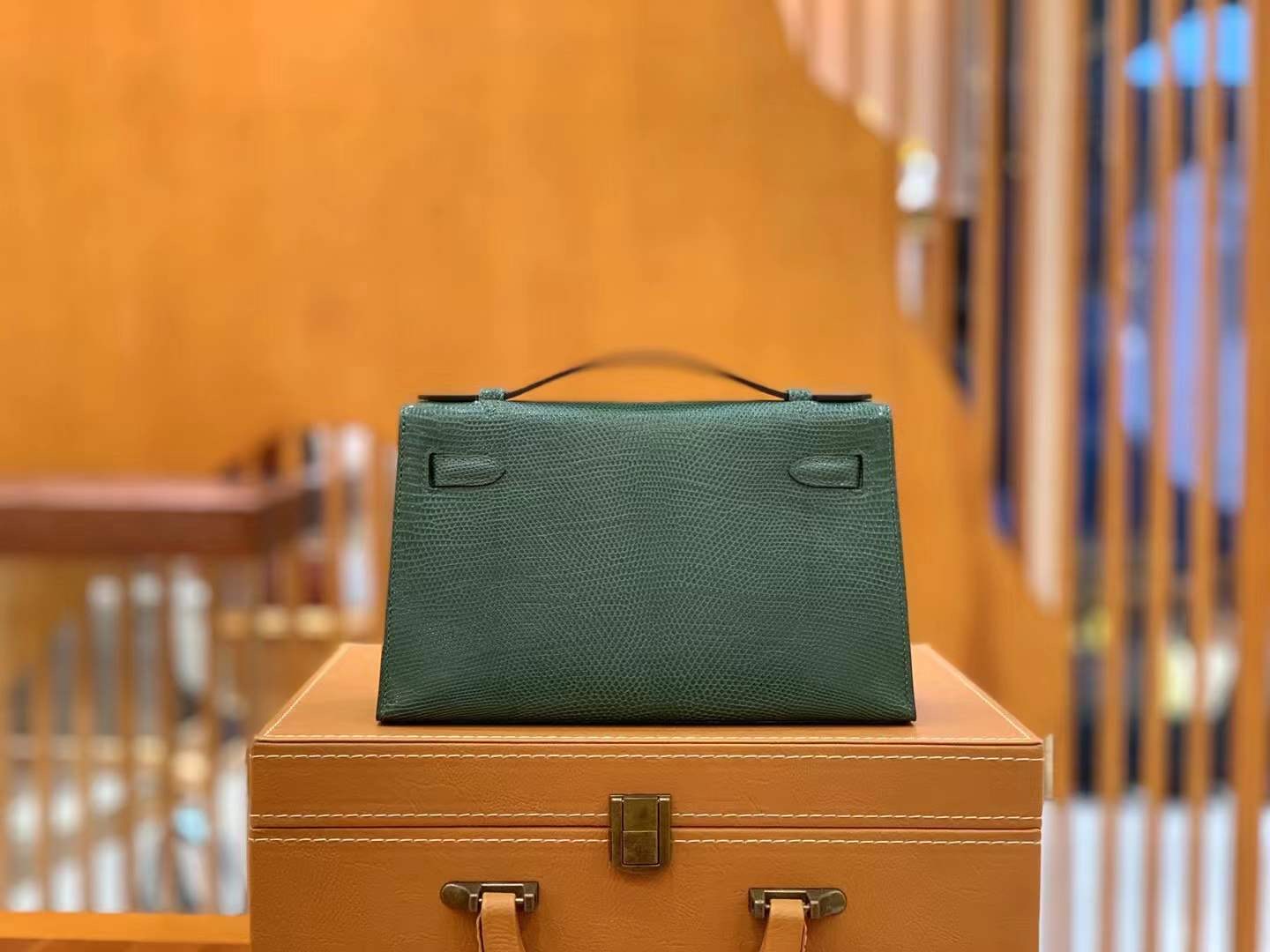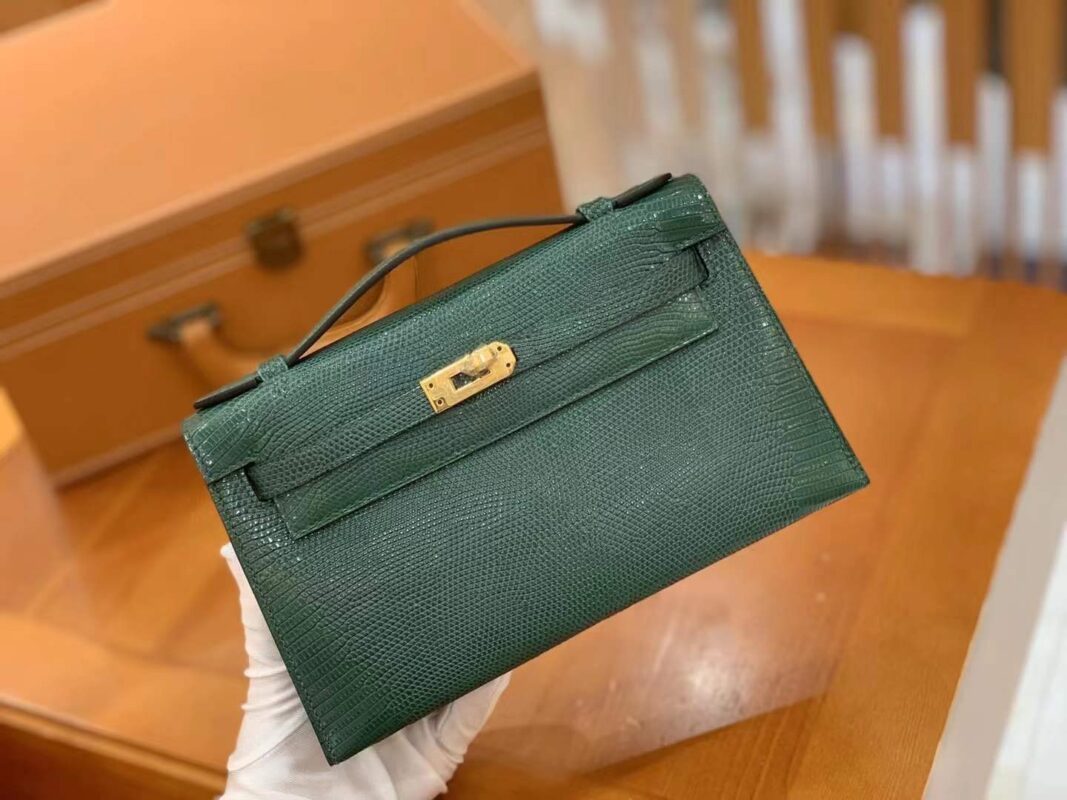 Mini Kelly Generation 22cm Malachite Green Imported wild lizard skin. Hand-sewn