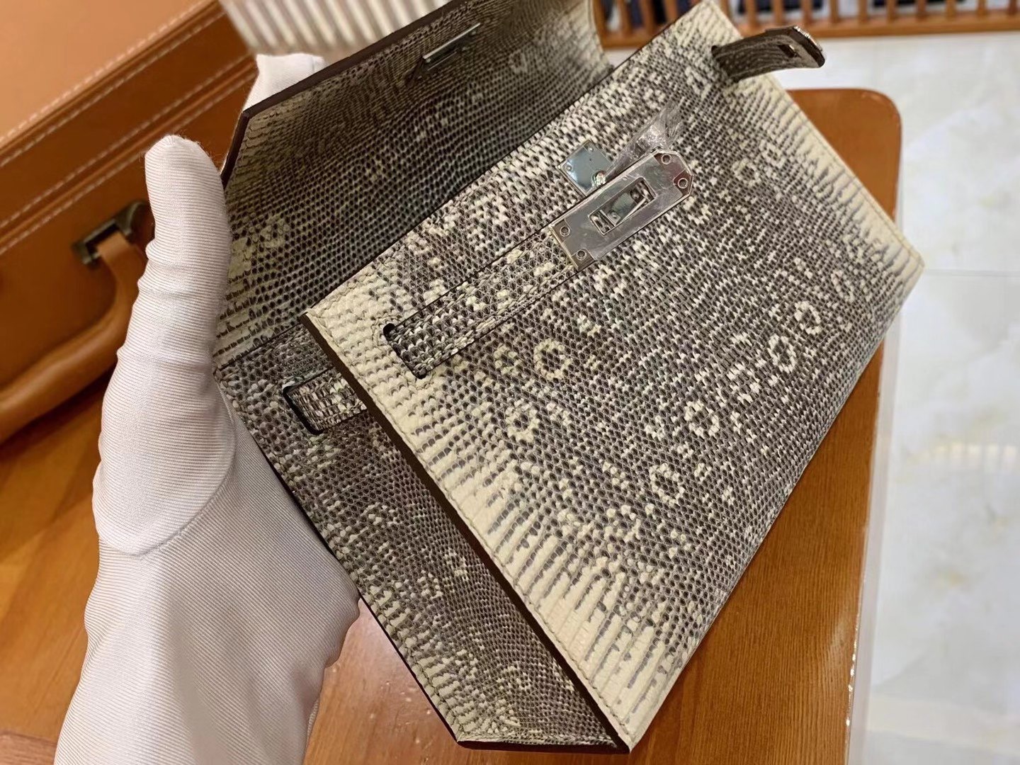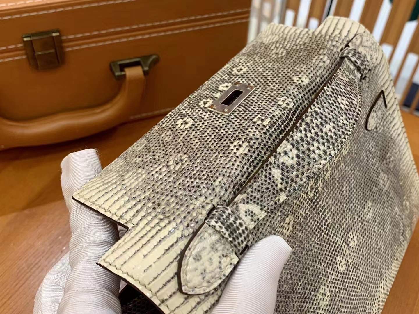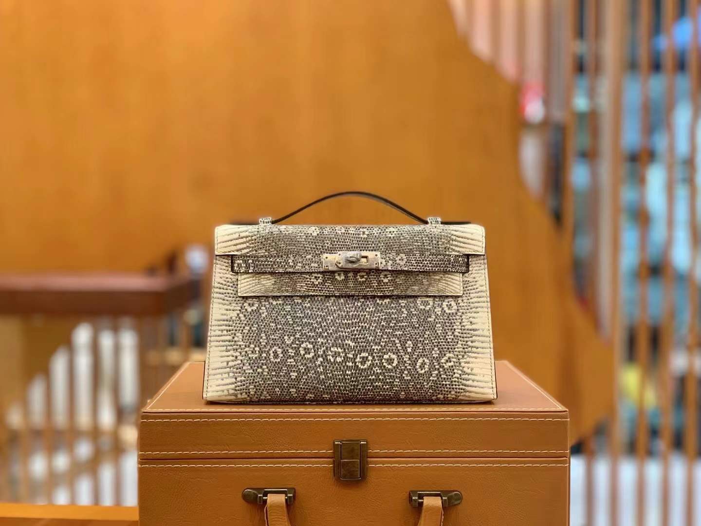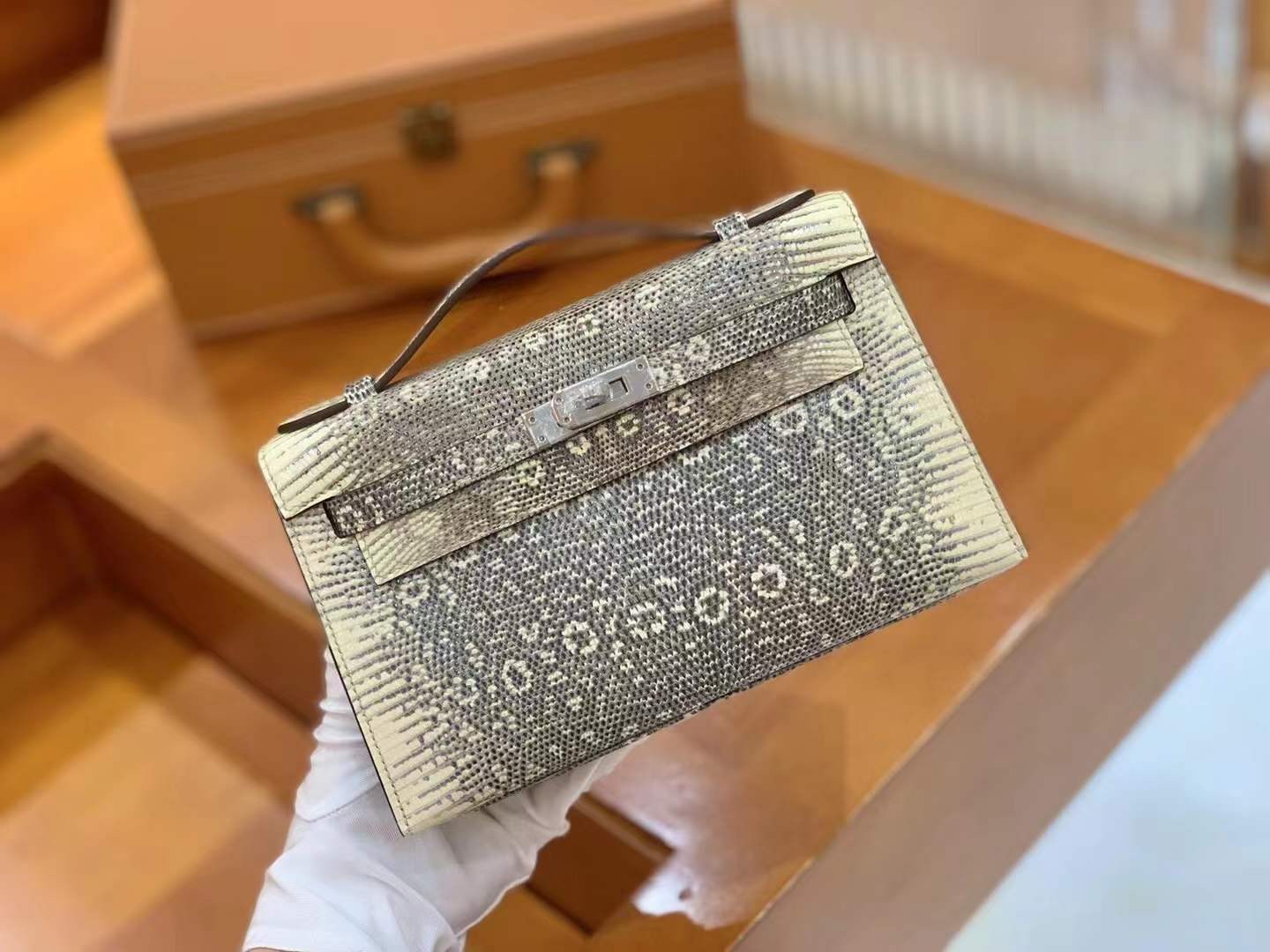Mini Kelly Generation 22cm Primary Color Silver Buckle Imported wild lizard skin. Hand-sewn