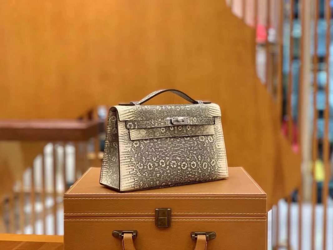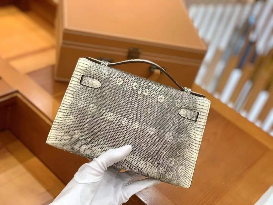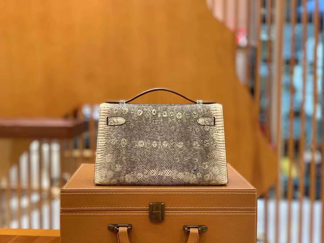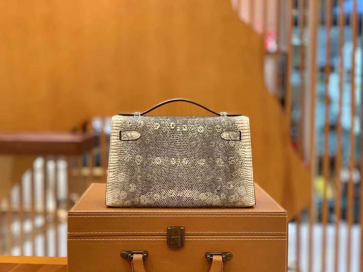 Mini Kelly Generation 22cm Primary Color Silver Buckle Imported wild lizard skin. Hand-sewn