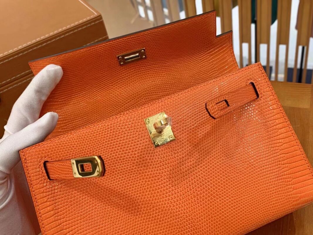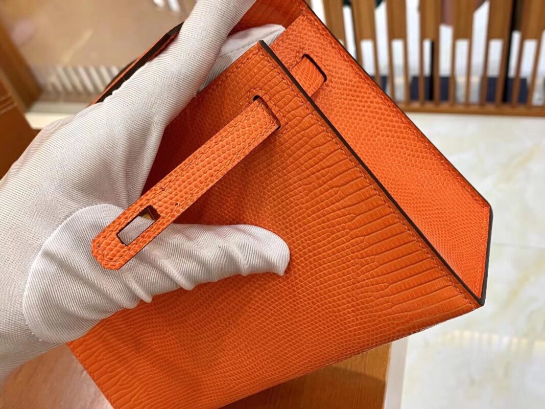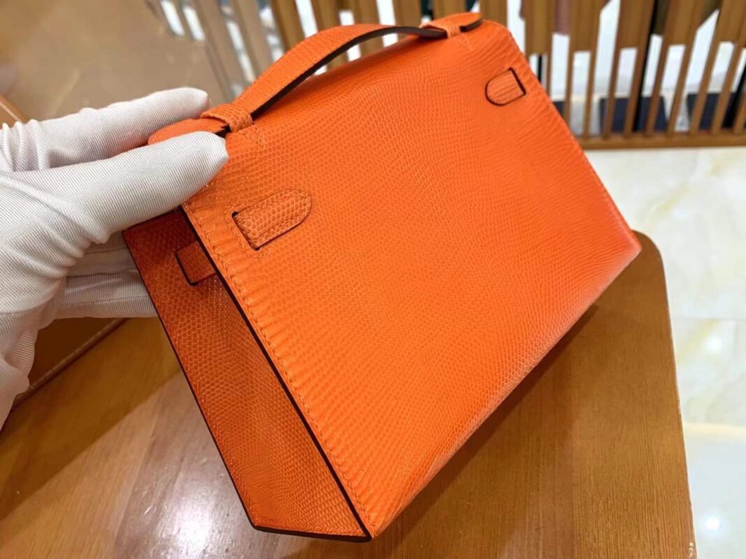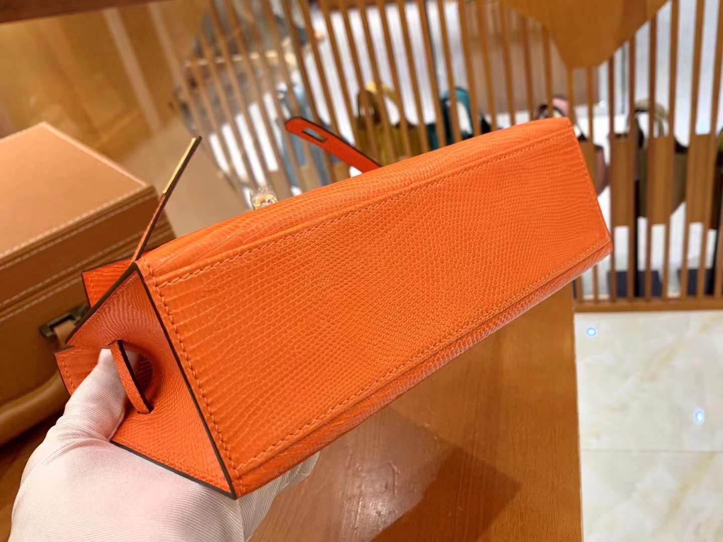 Mini Kelly Generation 22cm Orange Red Imported wild lizard skin. Hand-sewn
