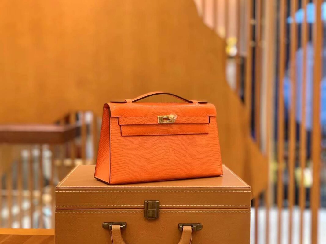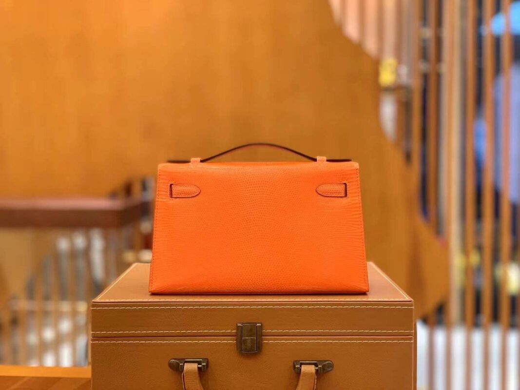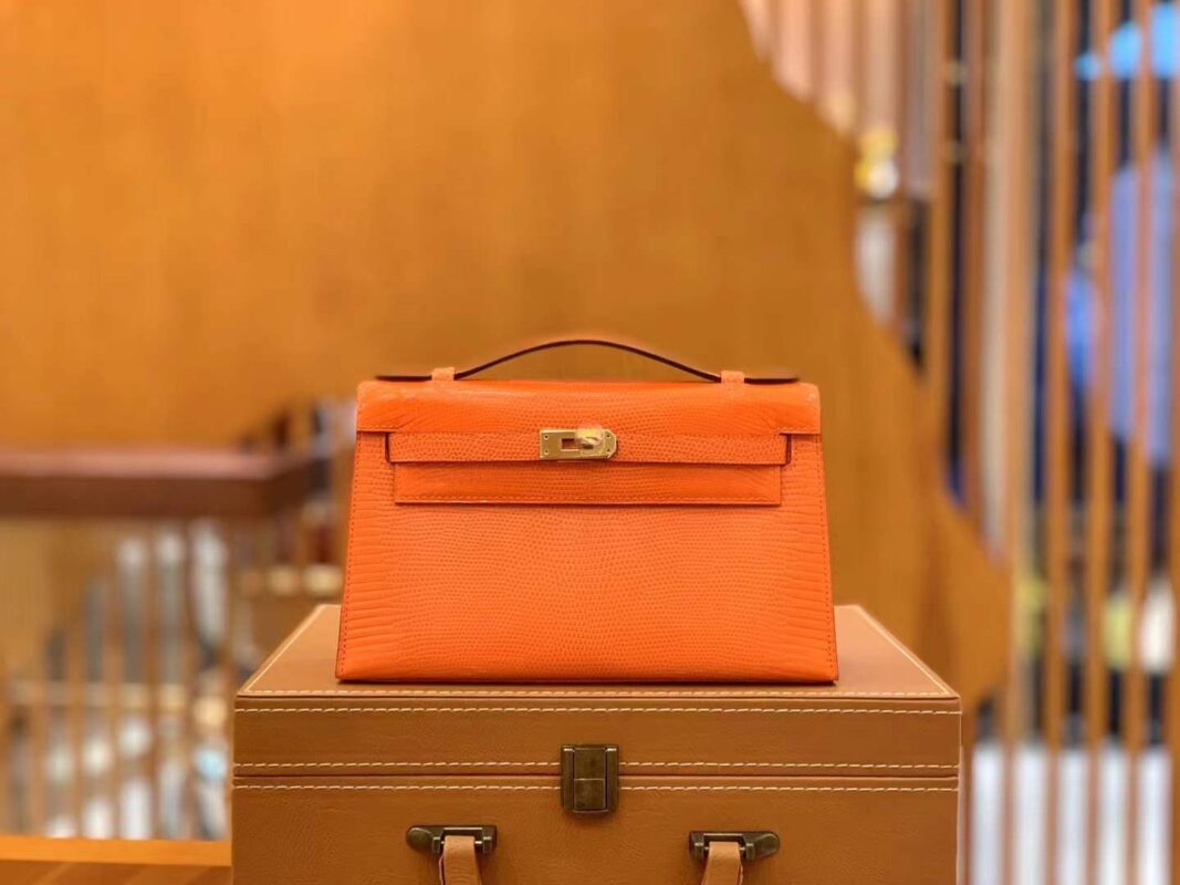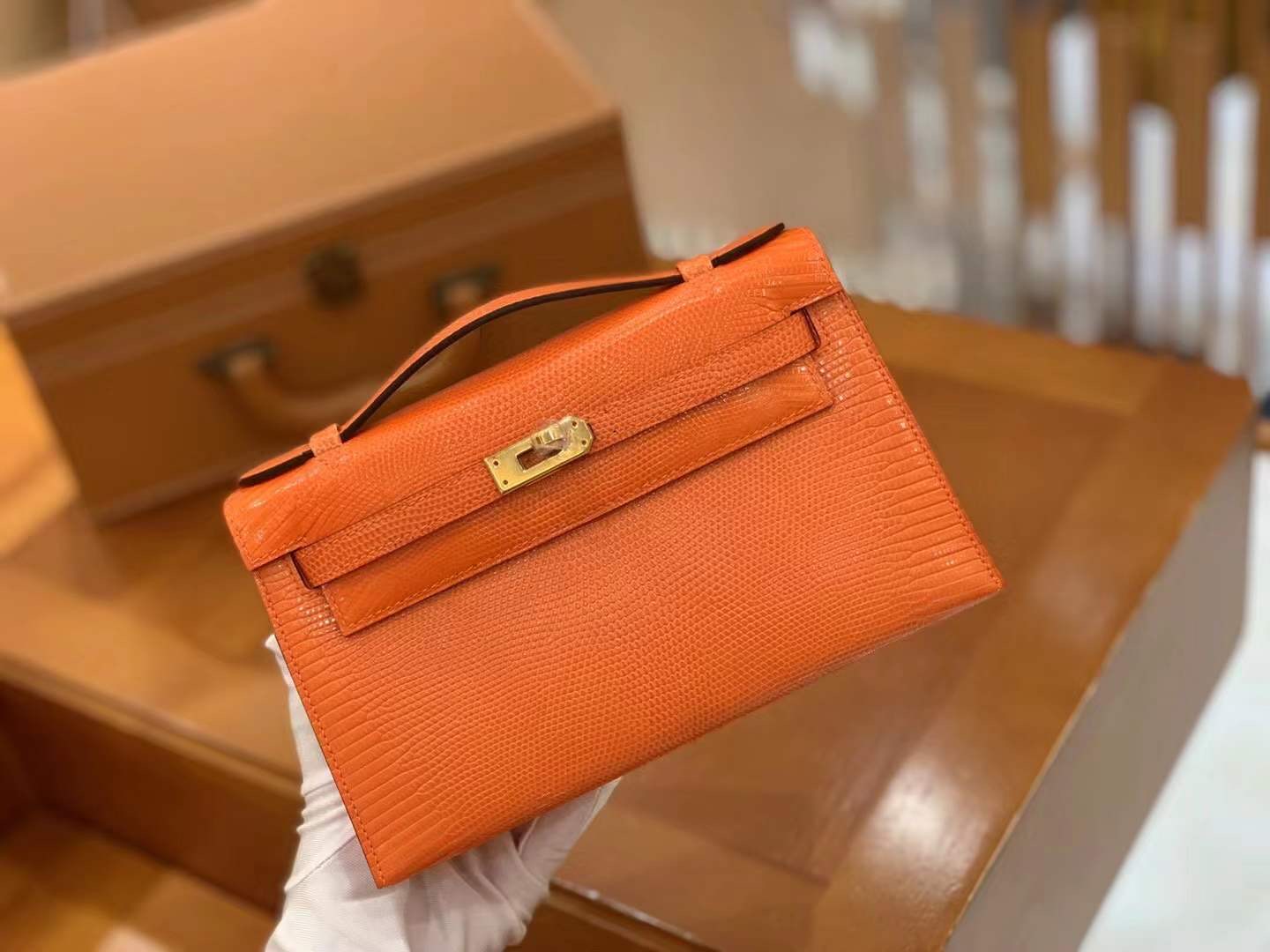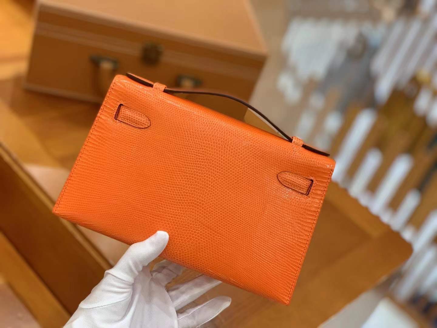 Mini Kelly Generation 22cm Orange Red Imported wild lizard skin. Hand-sewn
