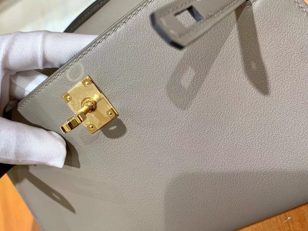 Mini Kelly Generation 22cm Asphalt Grey Imported swift cowhide French beeswax thread 100% hand-sewn