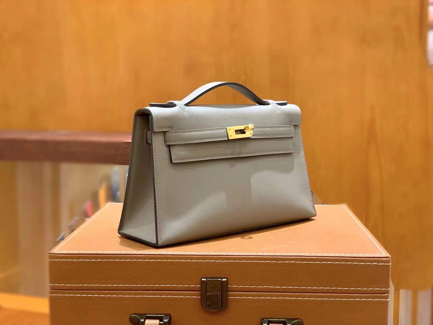 Mini Kelly Generation 22cm Asphalt Grey Imported swift cowhide French beeswax thread 100% hand-sewn