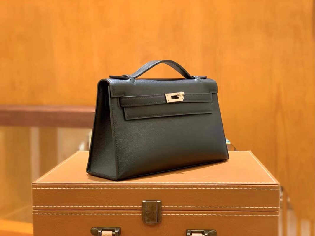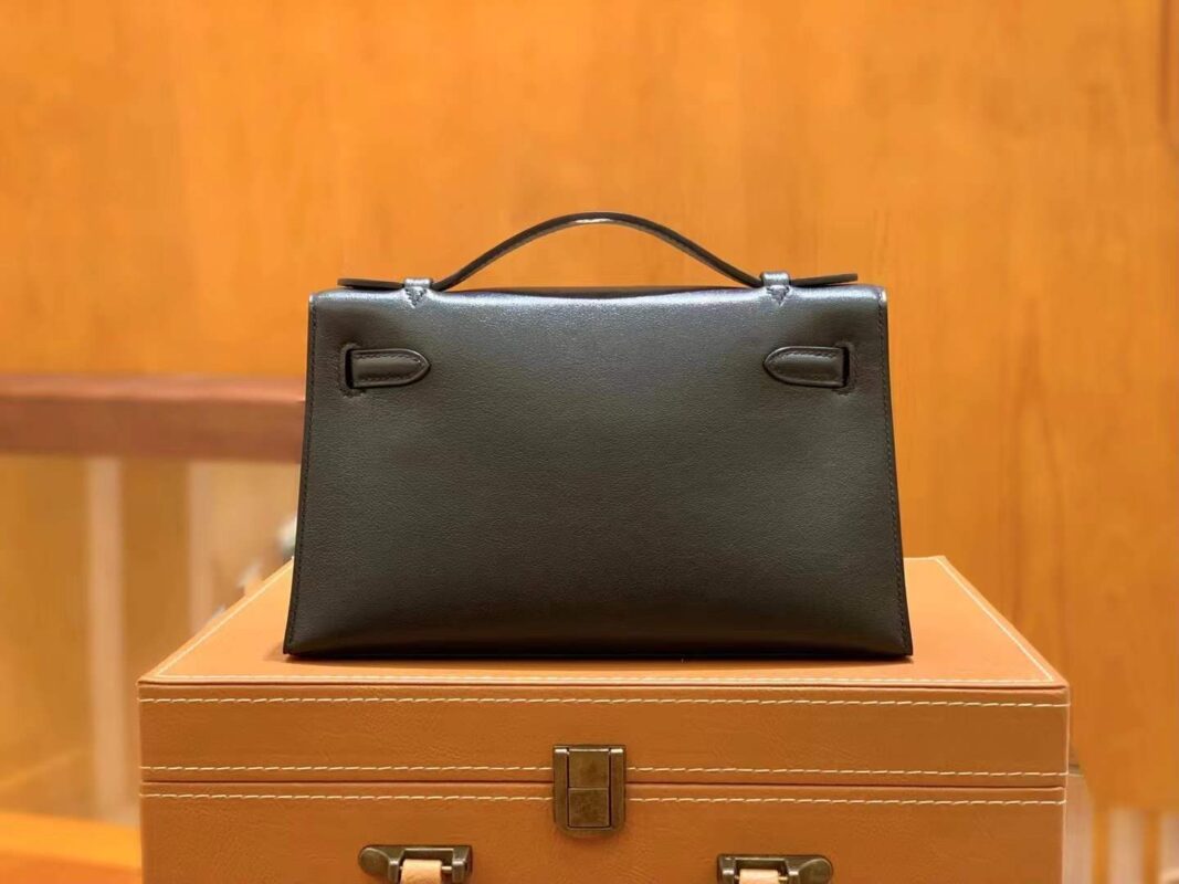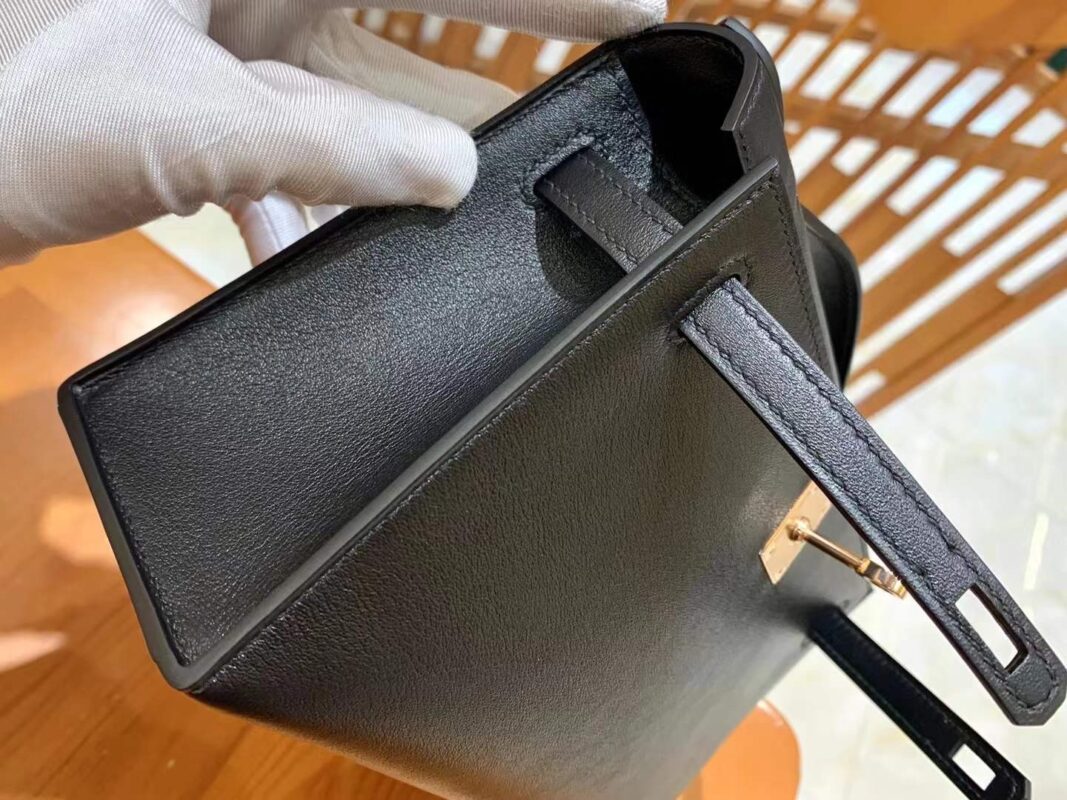 Mini Kelly 1st 22cm Black Imported swift cowhide French beeswax thread 100% hand-sewn