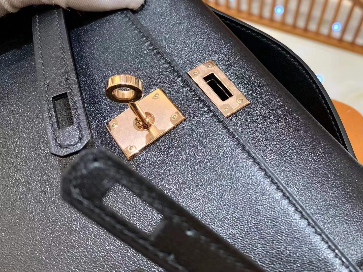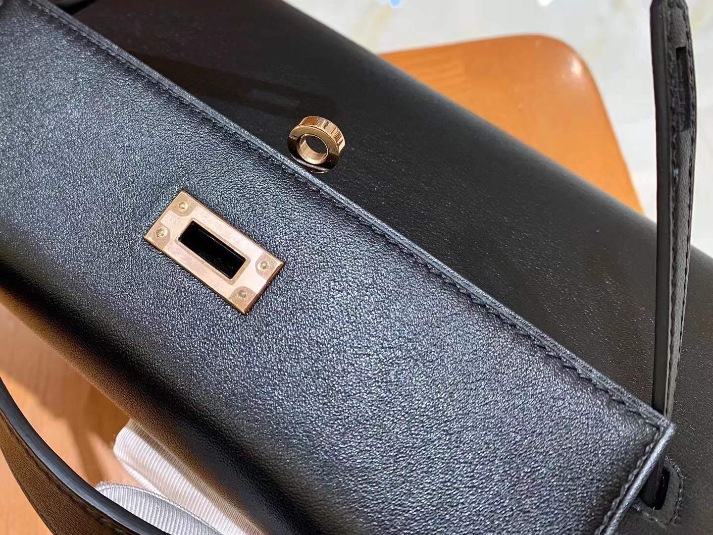 Mini Kelly 1st 22cm Black Imported swift cowhide French beeswax thread 100% hand-sewn