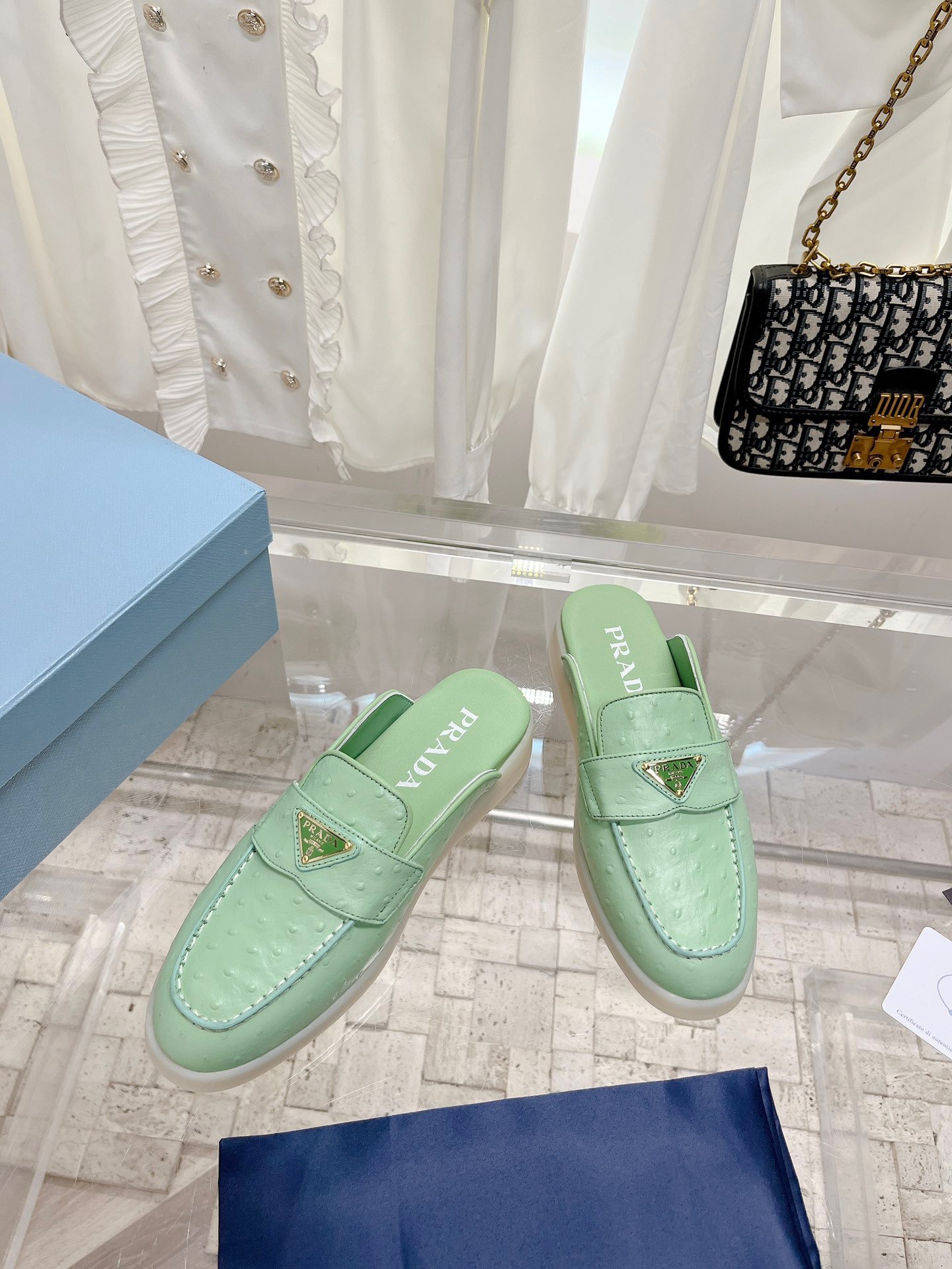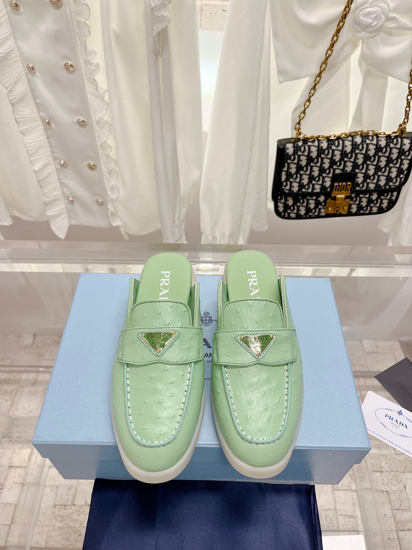 Prada 2023 New Unisex Mules in Ostrich