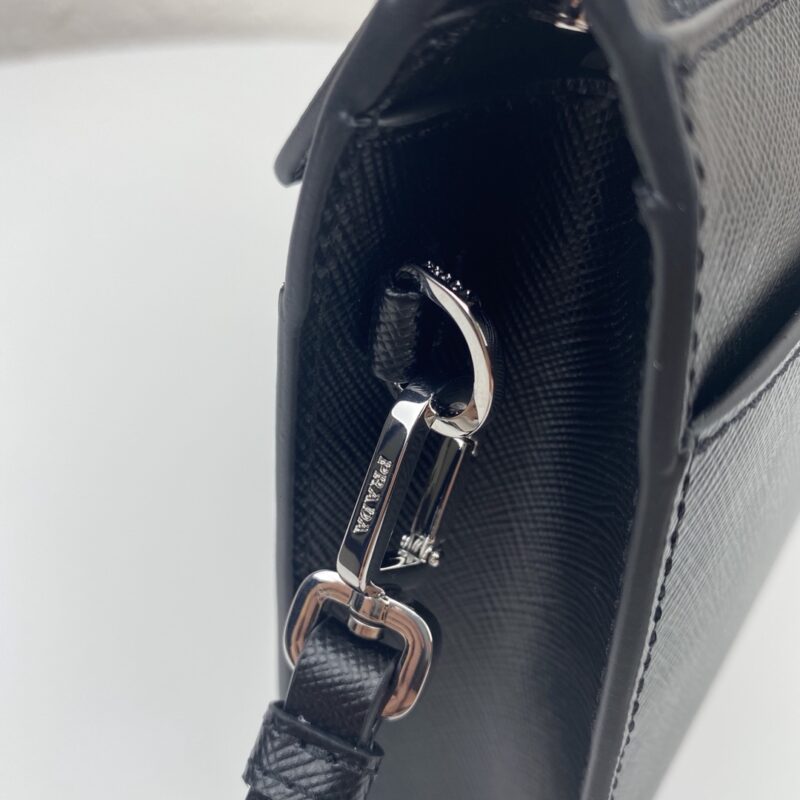 🎉The latest men’s handbag🎉Imported Saffiano cross-grain cowhide, metal hardware, a zipper compartment, an internal pocket and six card slots, two magnetic button external pockets, leather trim fabric lining, detachable leather wrist strap, Logo plate at interior, triangular enamel logo at front, and this stylish men’s bag with a detachable leather wrist strap. The triangular metal logo is embellished on it, releasing a unique brand atmosphere. 👍👍Men, hurry up and get started💪💪 Size: length 25cm height 17cm width 4cm