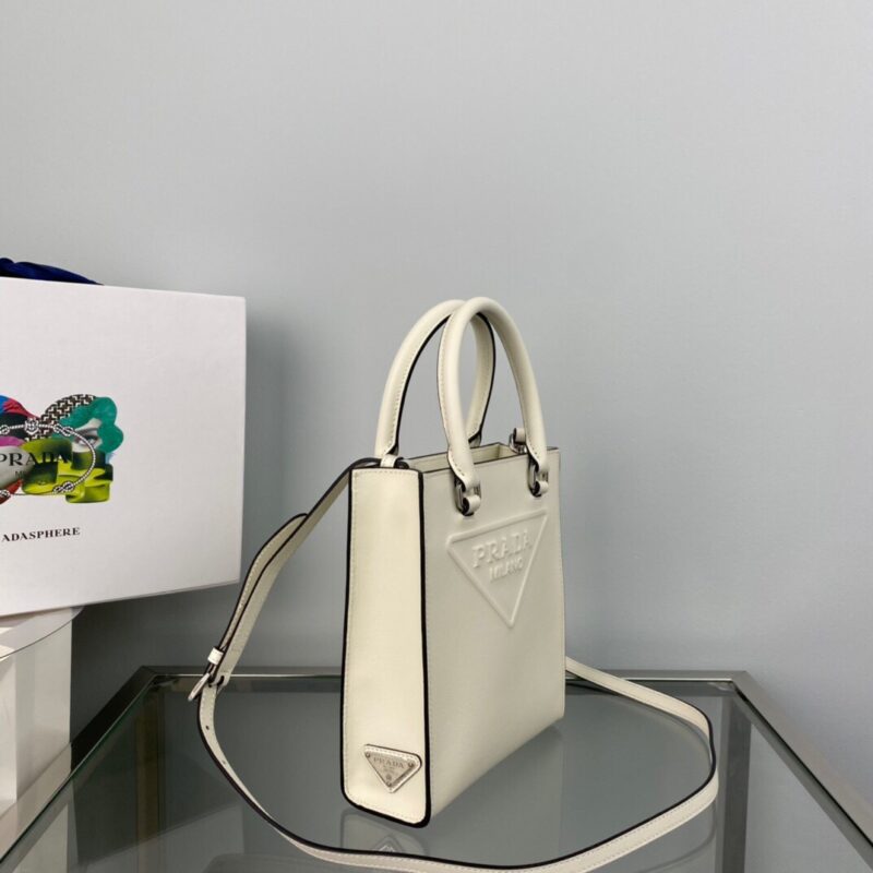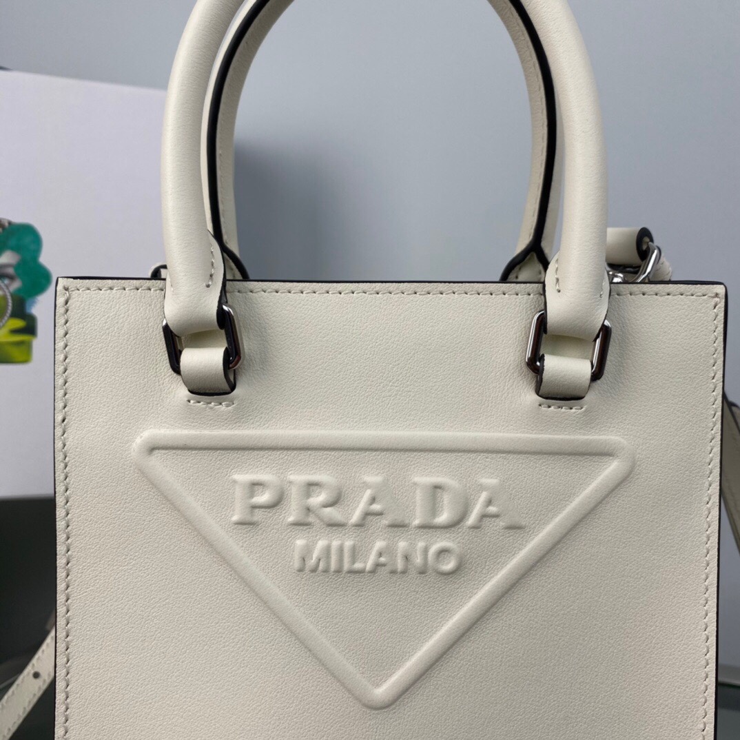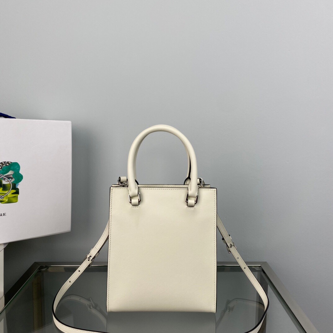 NEW πSmall Tote π/Plain Calfskin ππThis leather handbag features double handles and a detachable shoulder strap, allowing it to be carried in many different ways. The design of the bag is simple and elegant, combined with modern charm. The signature enameled triangle of the embossed lettering logo adds style to the house. Simple, atmospheric and stylish, it is worth having, hurry up to get it ππ Size: Length 17x Height 19x Bottom 6cm